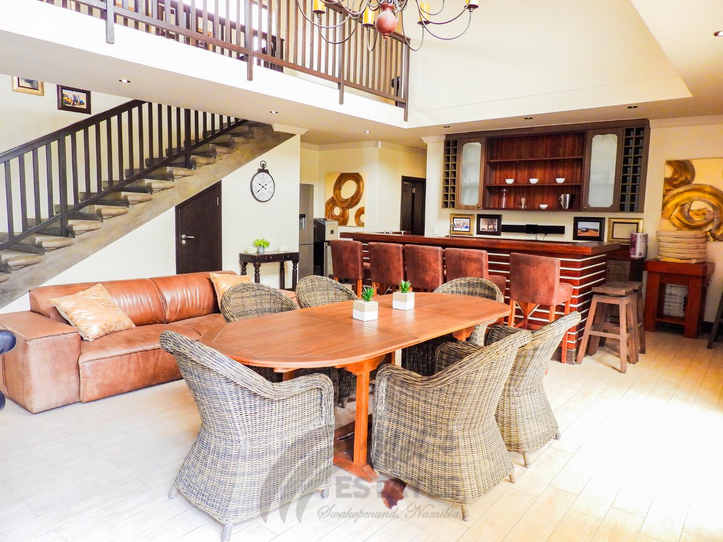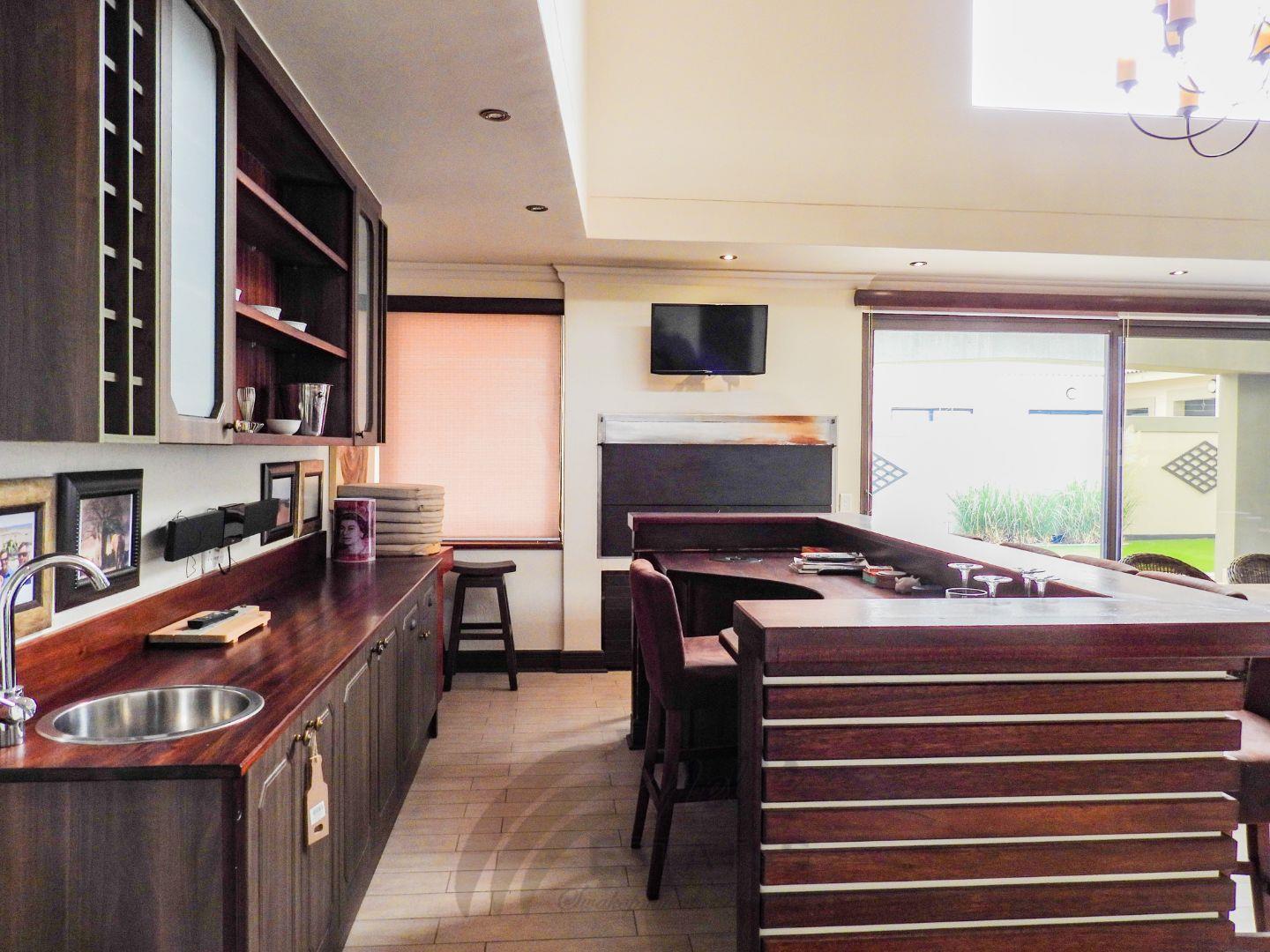 For those who love to entertain, the open plan entertainment area boasts a built-in bar, seating counter, and BBQ area. A guest WC ensures convenience for both residents and visitors.