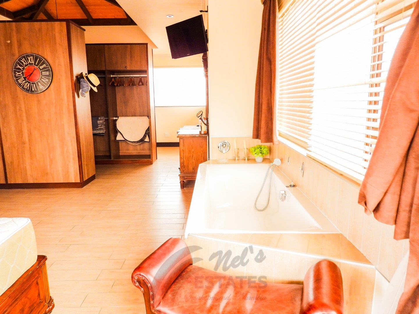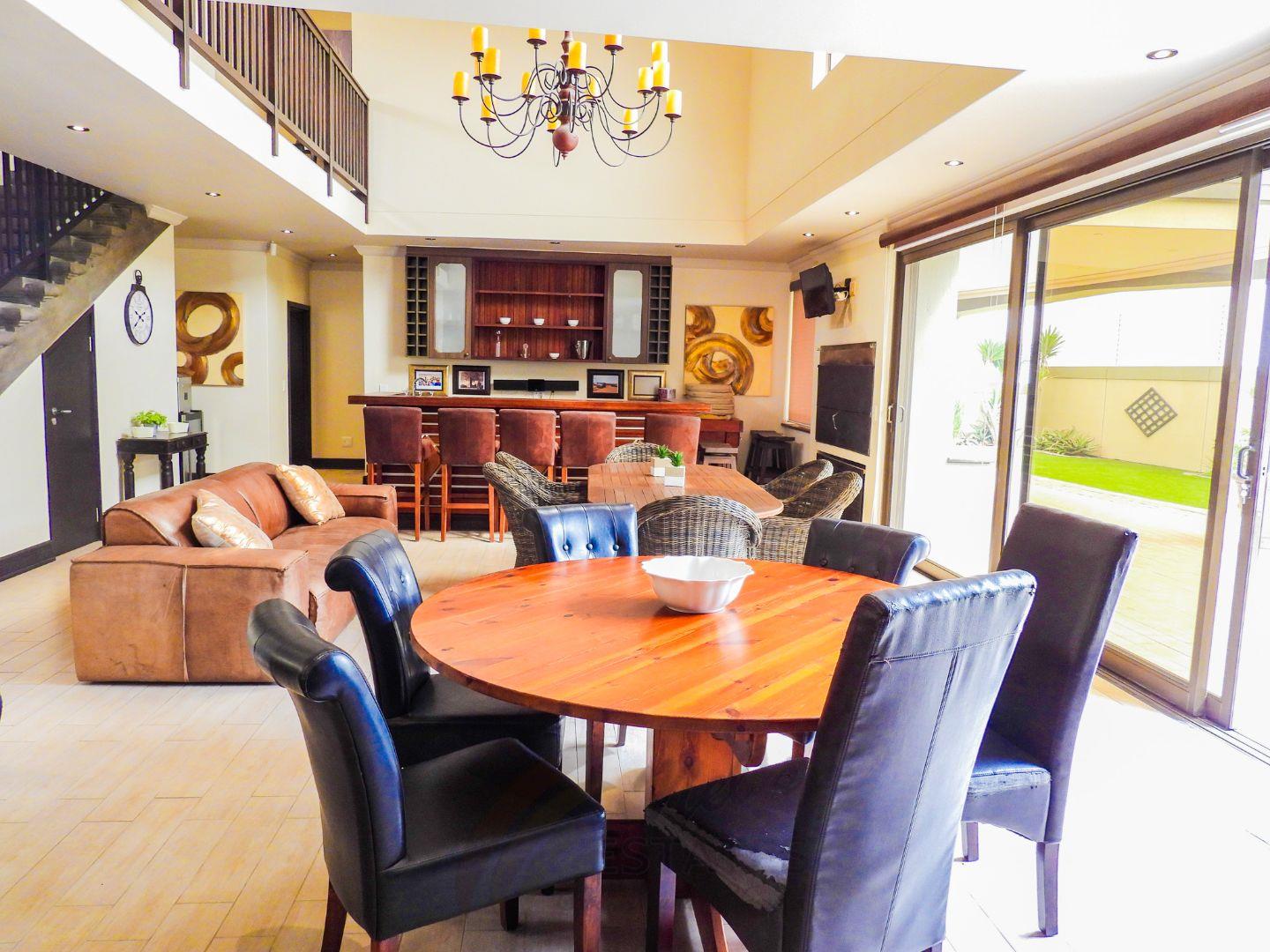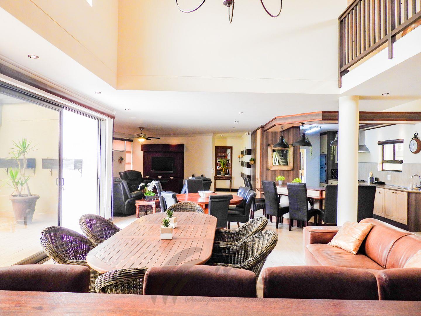 The heart of the home lies in the beautiful fitted kitchen, complete with a breakfast counter, gas hob, pantry, and separate scullery. Adjacent to the kitchen is the dining area, perfect for family meals and gatherings.