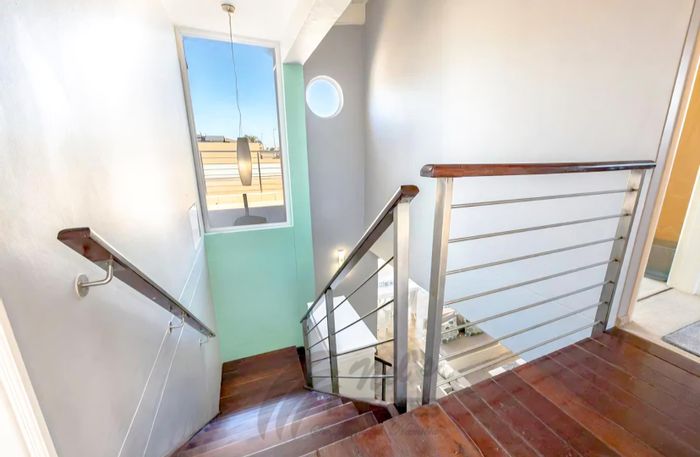 Coastal city living steps from Swakopmund’s shops and restaurants, offering flexible sunlit layout and a wrap-around balcony — Airbnb-approved, four bedrooms, two bathrooms, tandem garage.