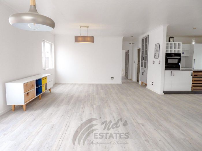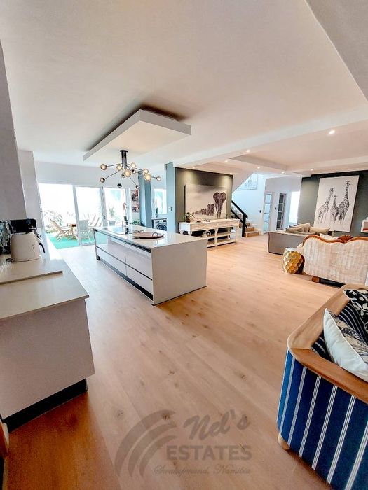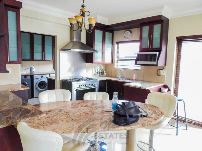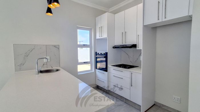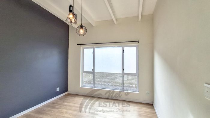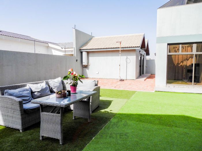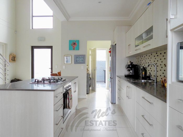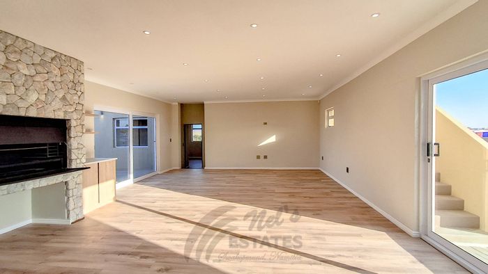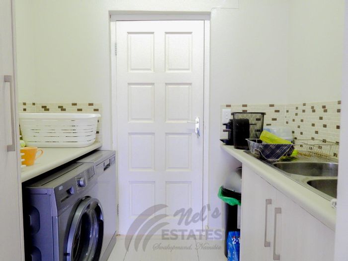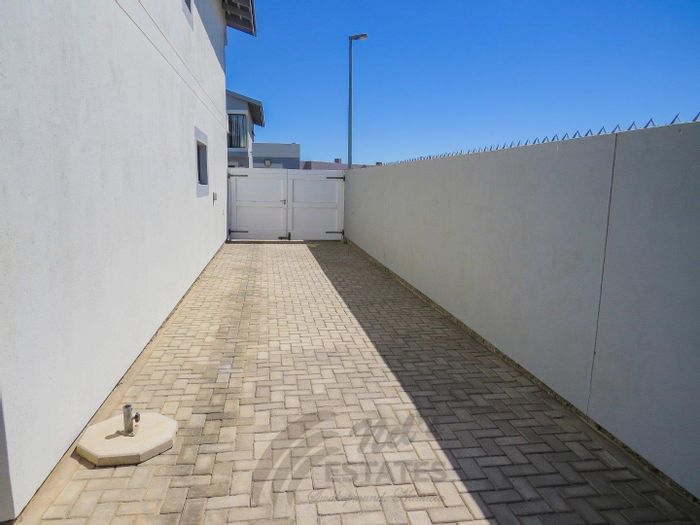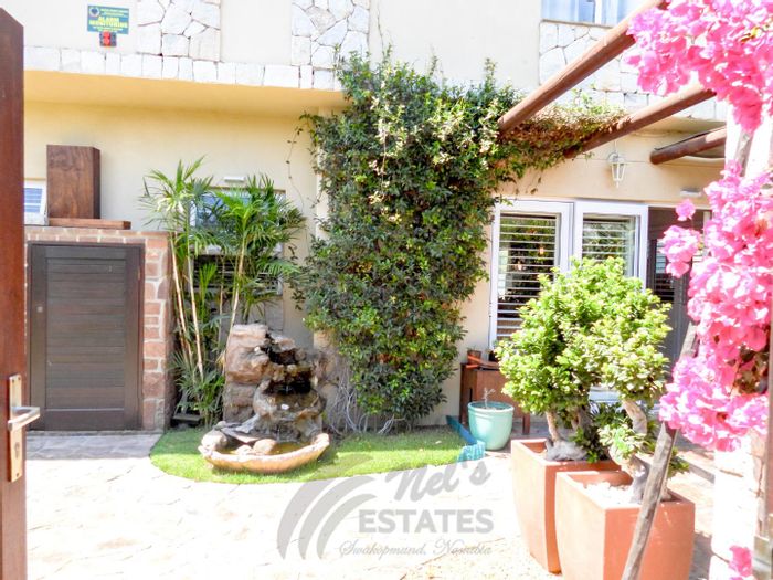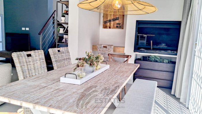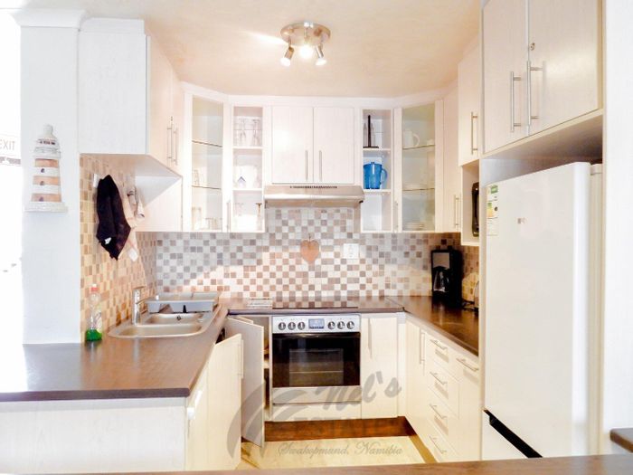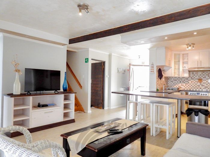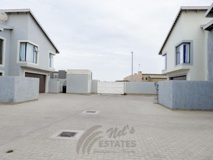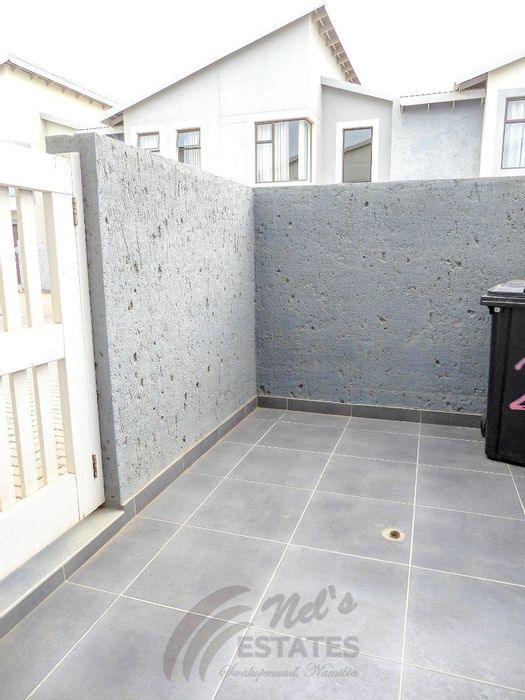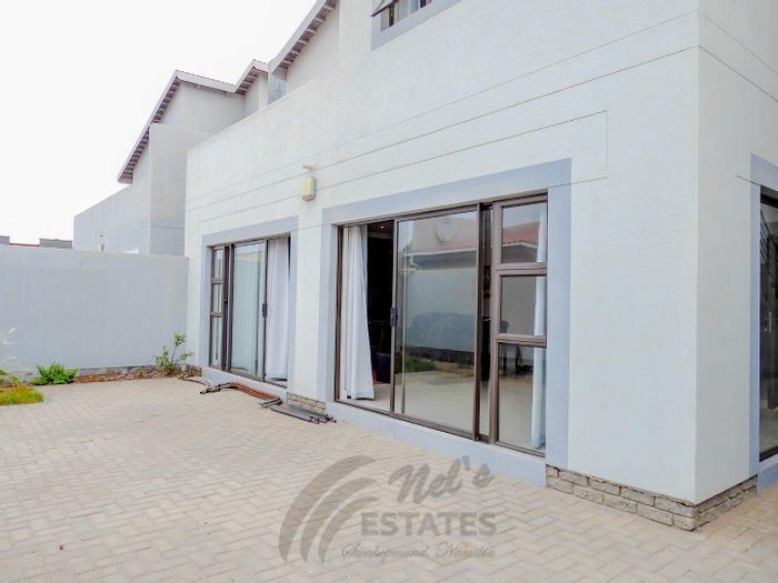 Contemporary townhouse living in Tamariskia, Swakopmund — secure, family-friendly complex with enclosed courtyard for entertaining, modern kitchen with breakfast counter, three bedrooms, two baths and single garage.