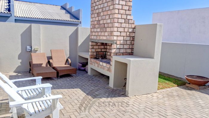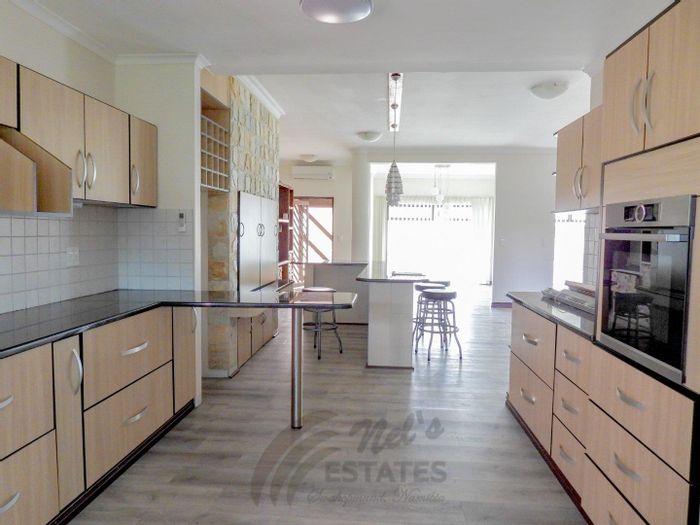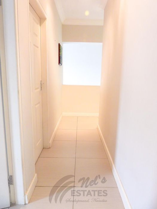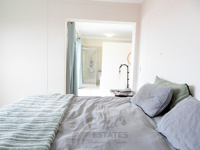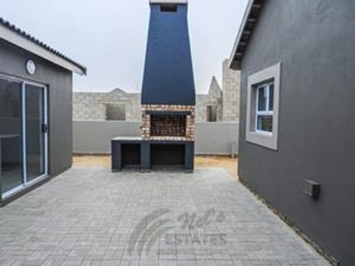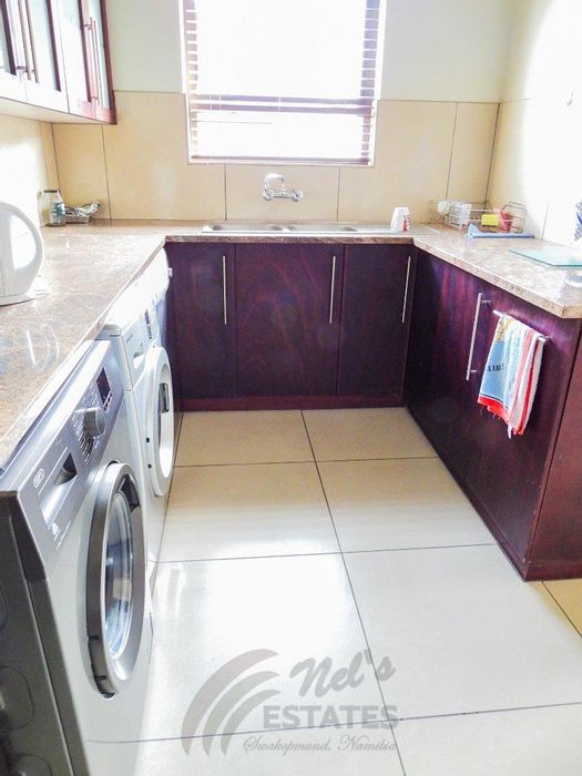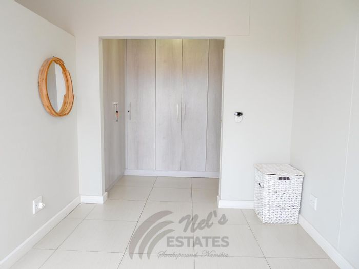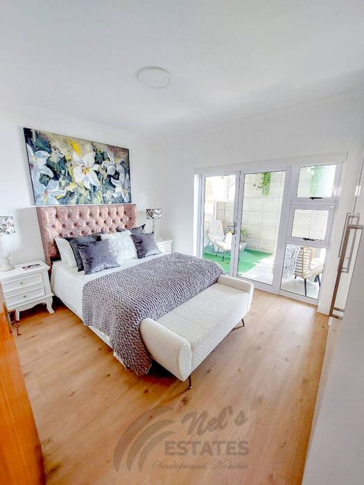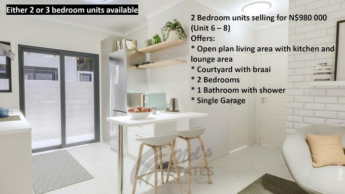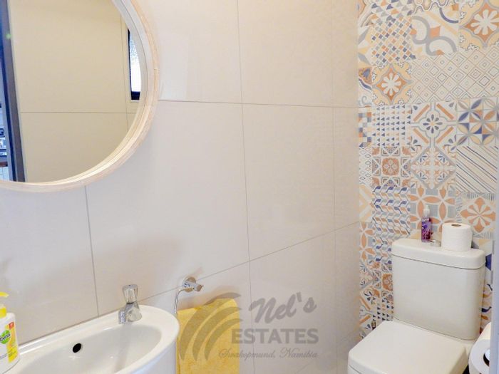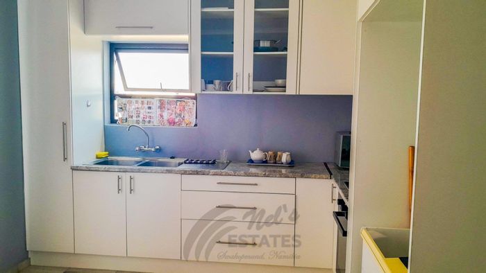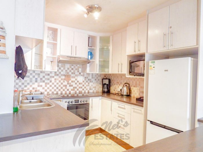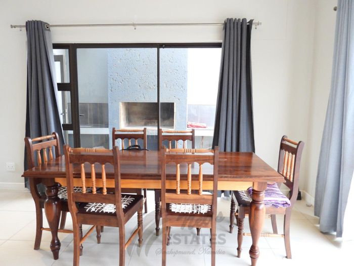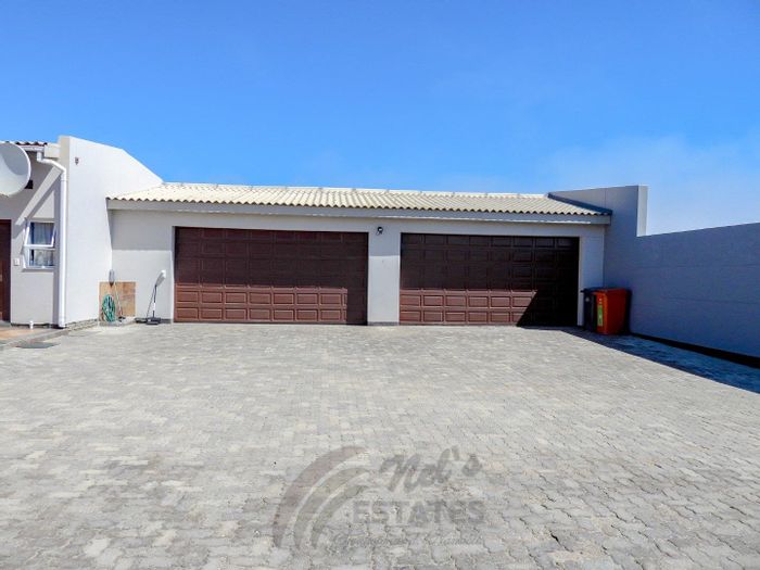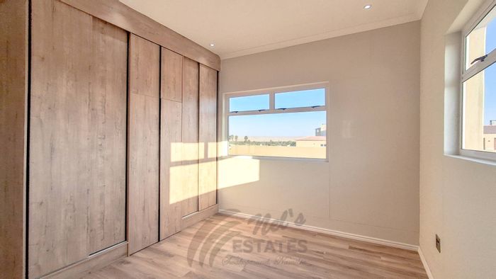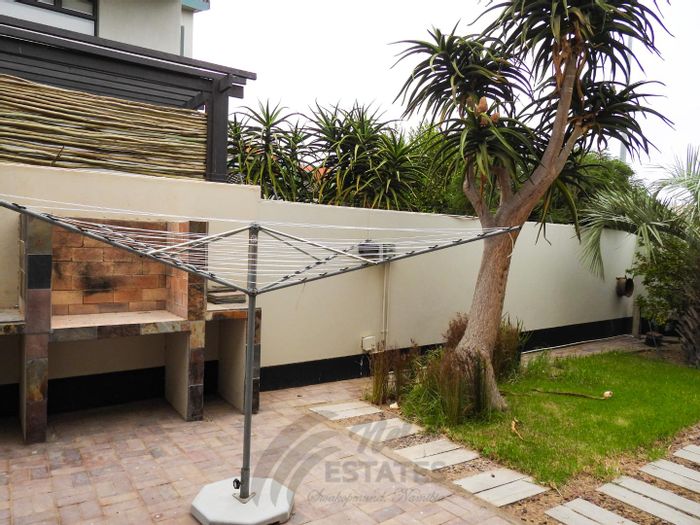 Contemporary townhouse living in Tamariskia, Swakopmund — secure, family-friendly complex with enclosed courtyard for entertaining, modern kitchen with breakfast counter, three bedrooms, two baths and single garage.