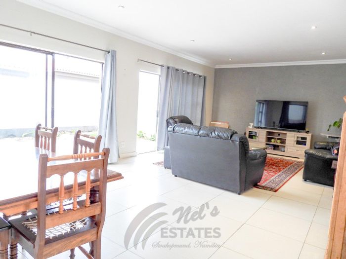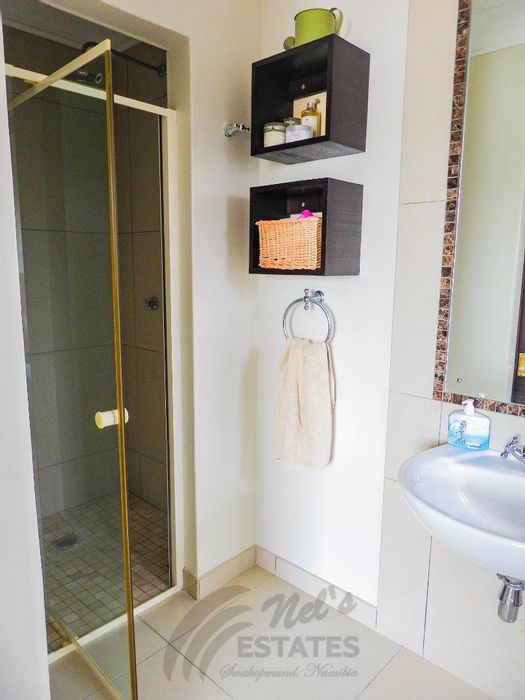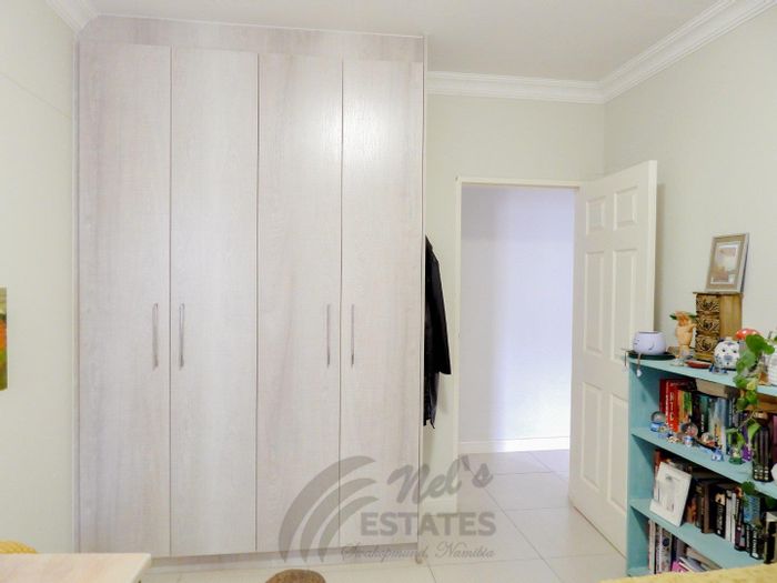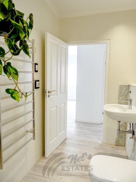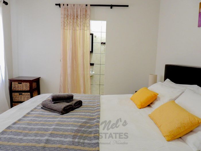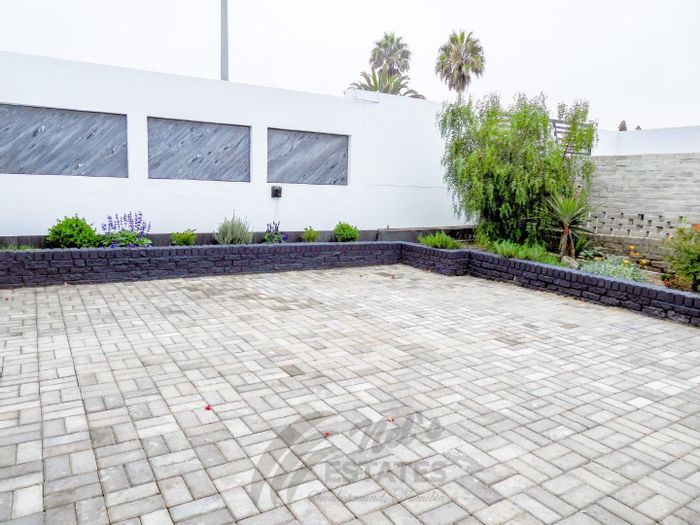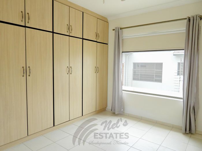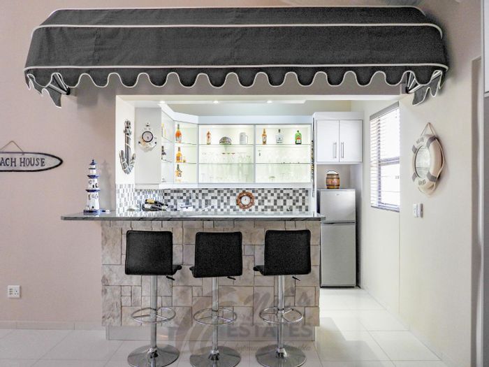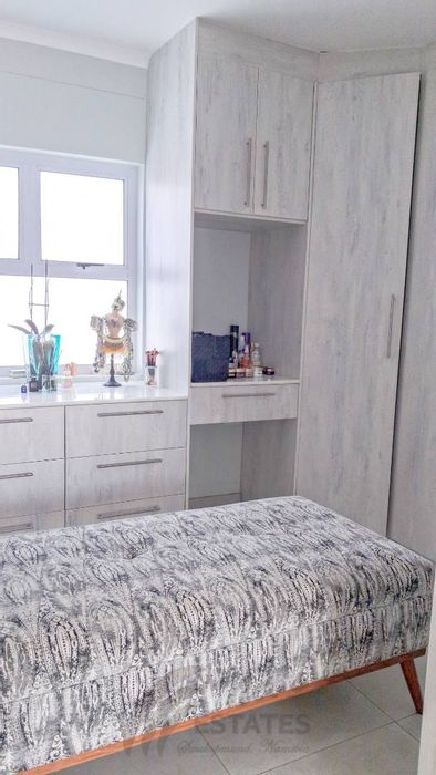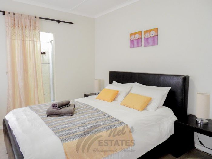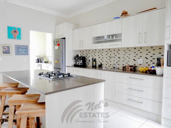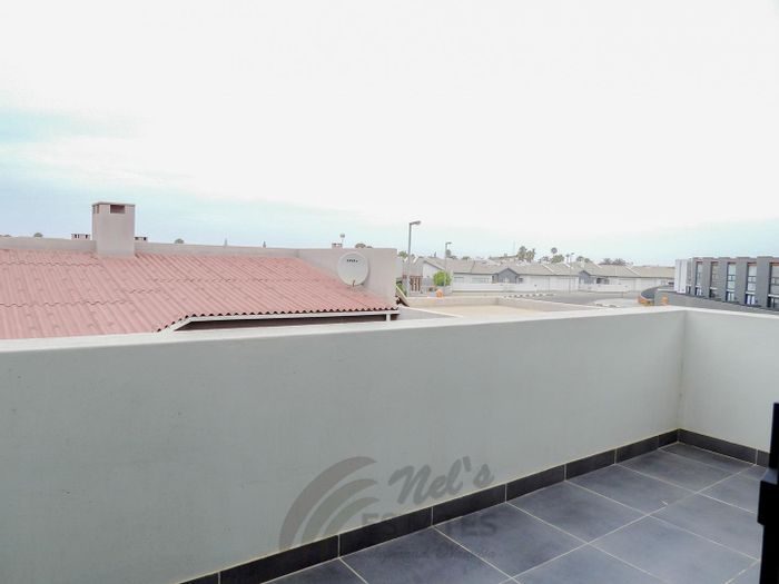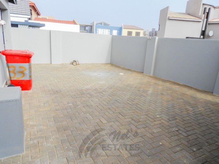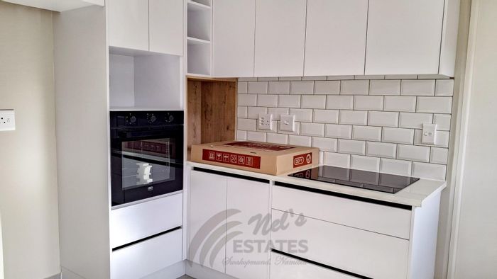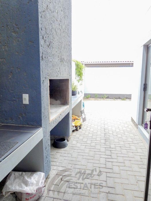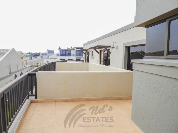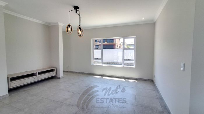 Contemporary townhouse living in Tamariskia, Swakopmund — secure, family-friendly complex with enclosed courtyard for entertaining, modern kitchen with breakfast counter, three bedrooms, two baths and single garage.