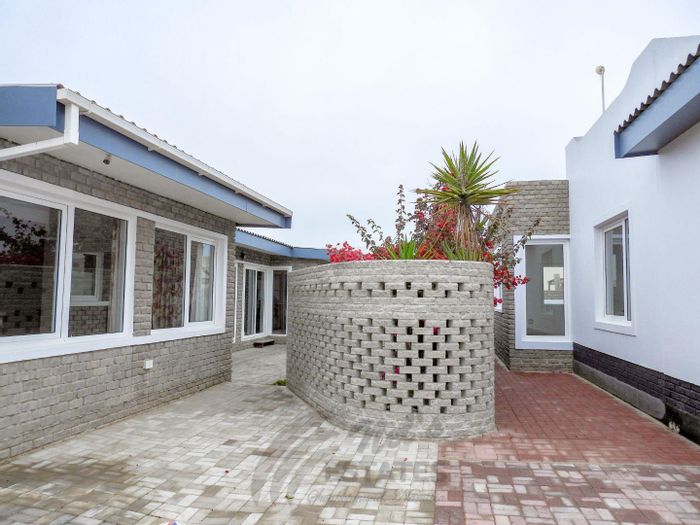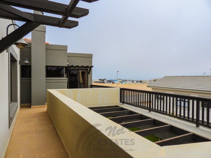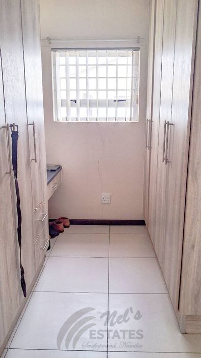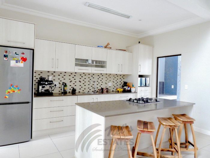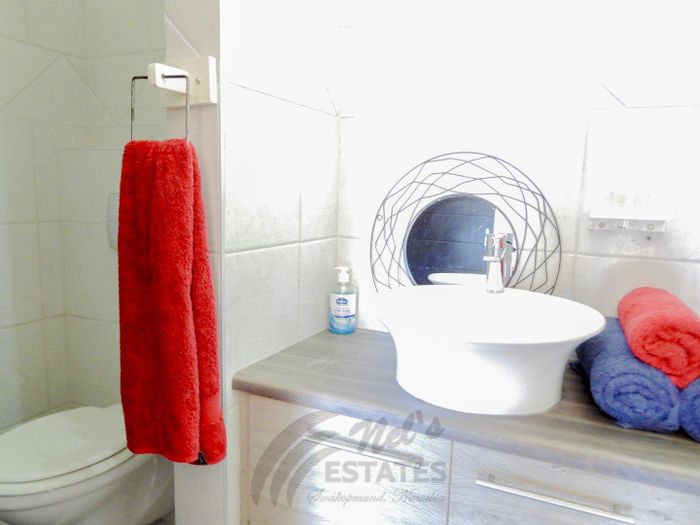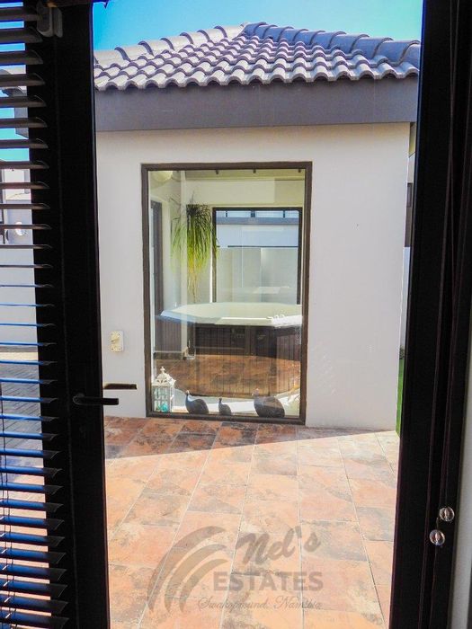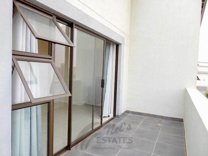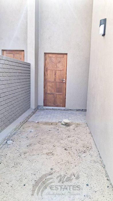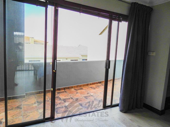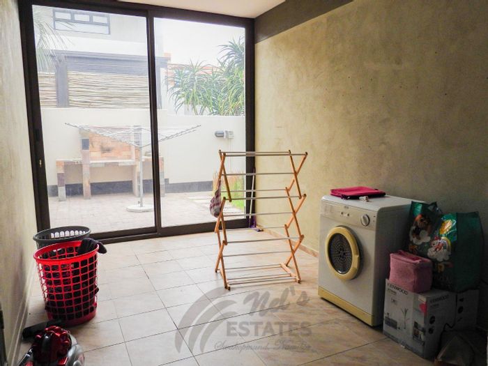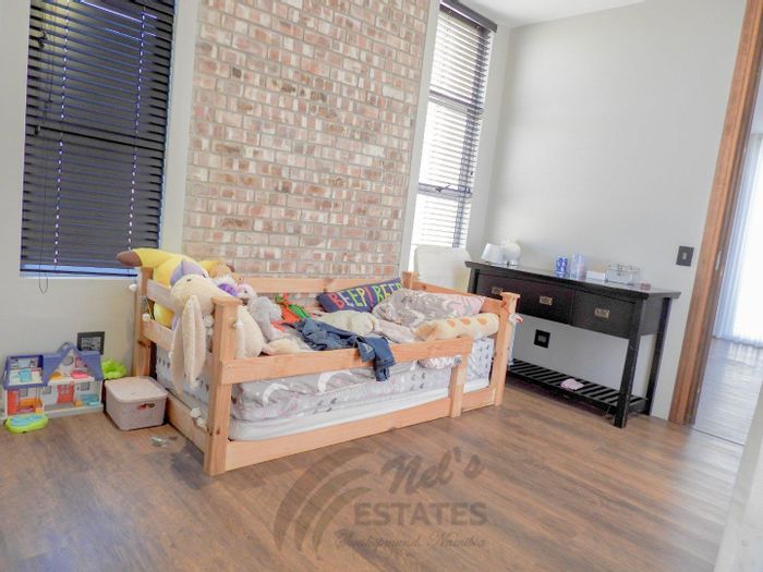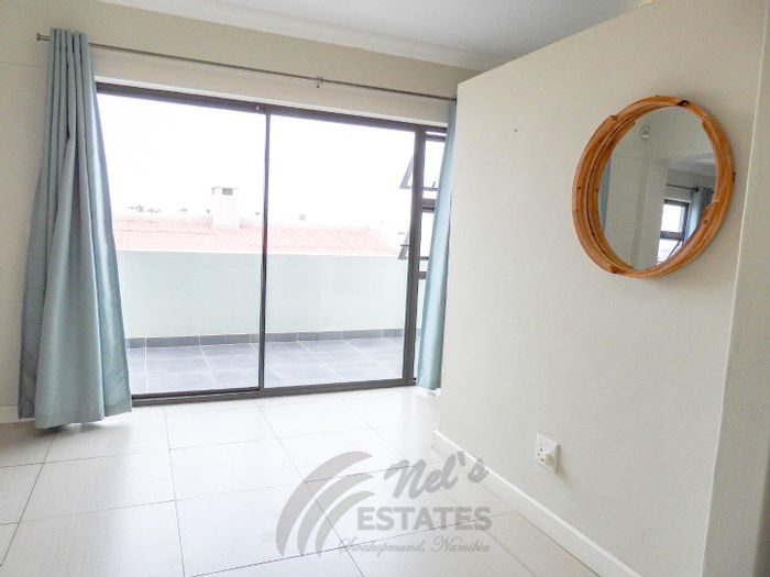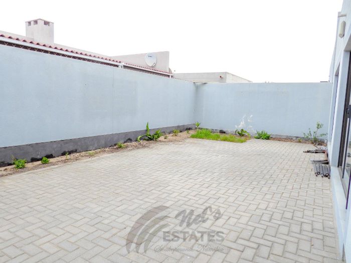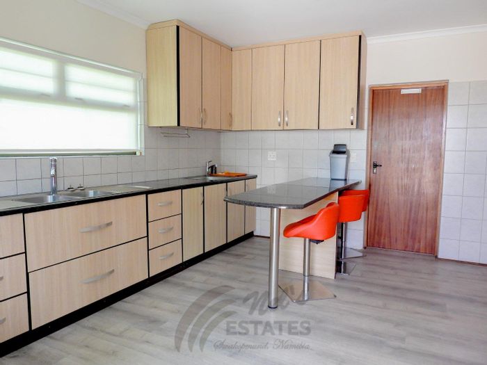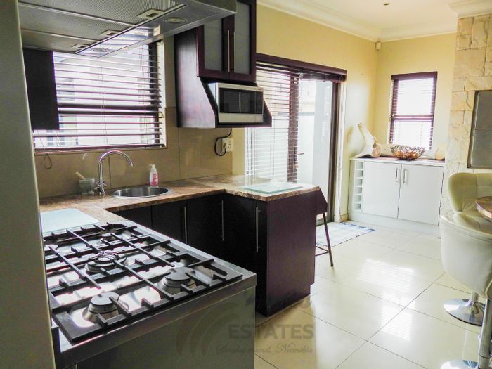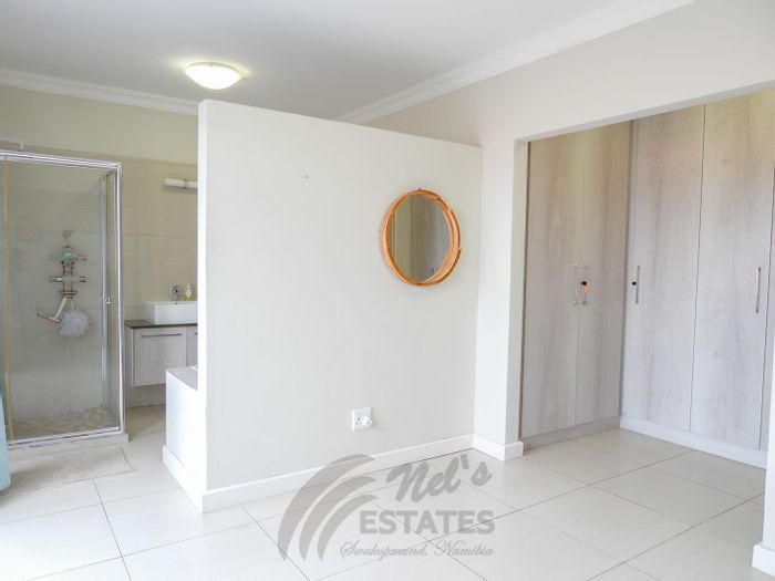 Contemporary townhouse living in Tamariskia, Swakopmund — secure, family-friendly complex with enclosed courtyard for entertaining, modern kitchen with breakfast counter, three bedrooms, two baths and single garage.