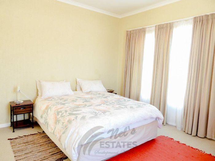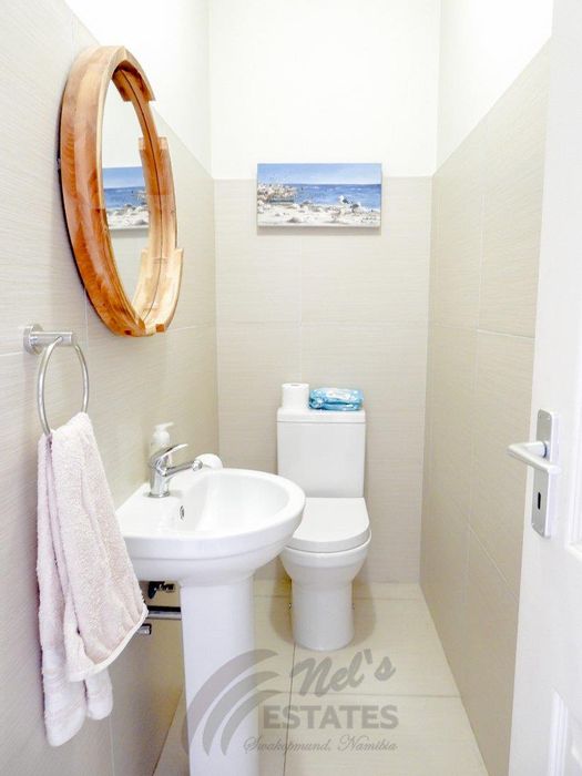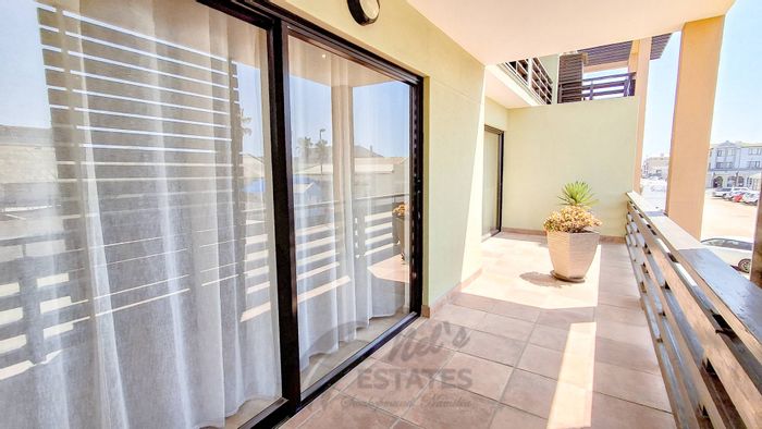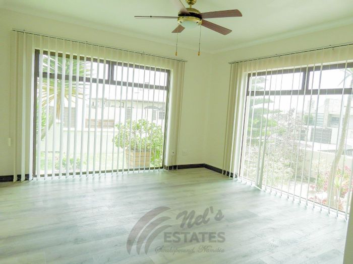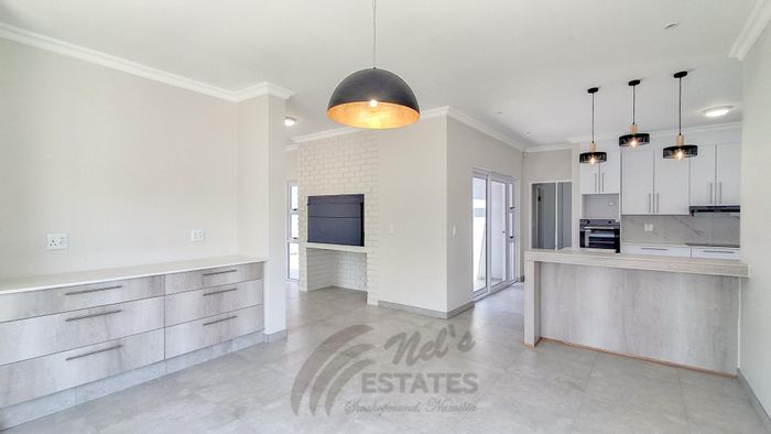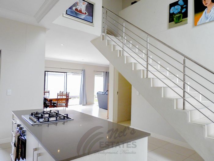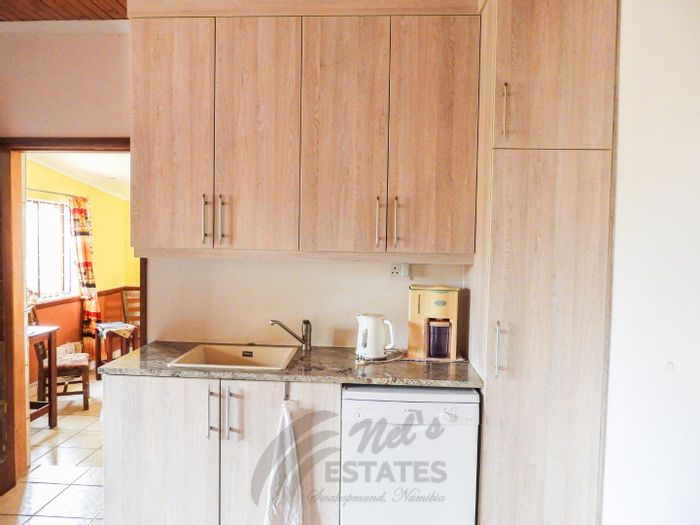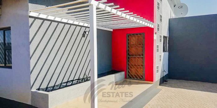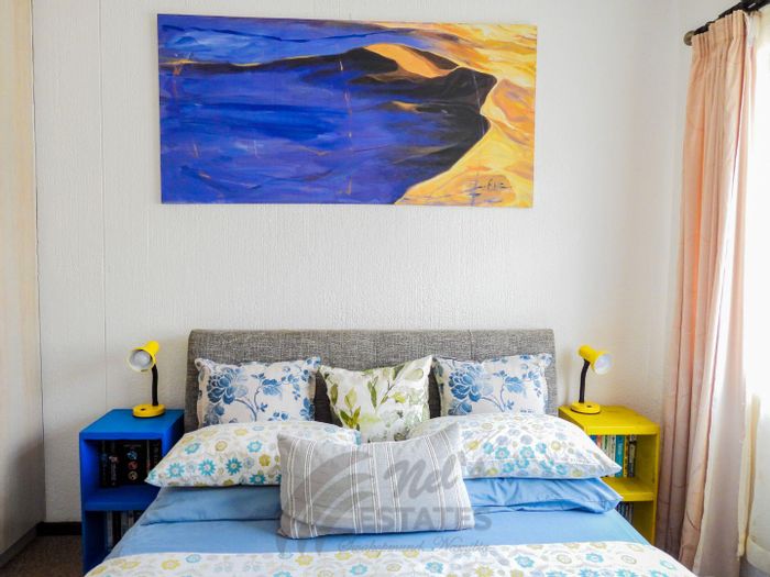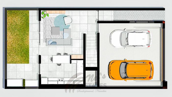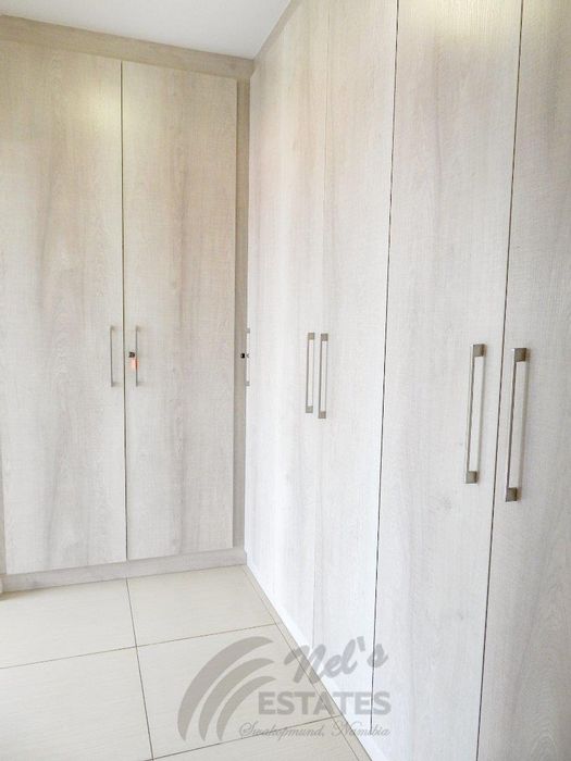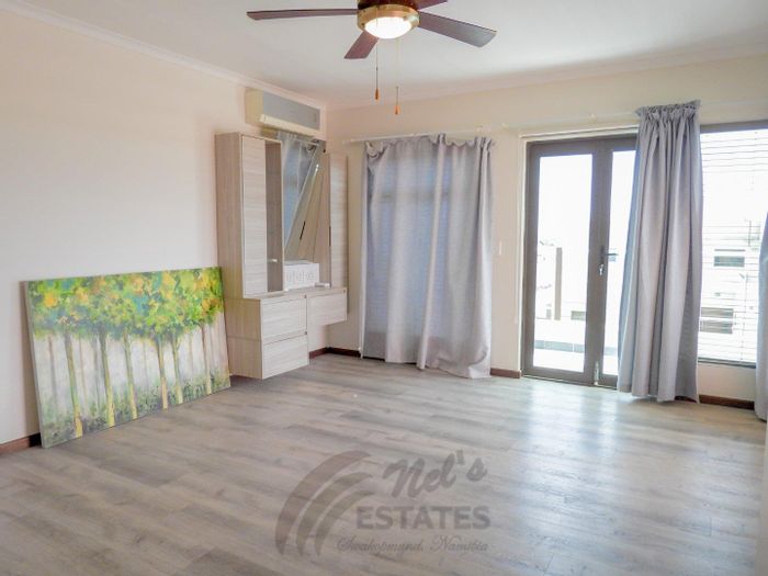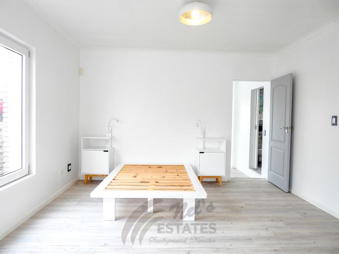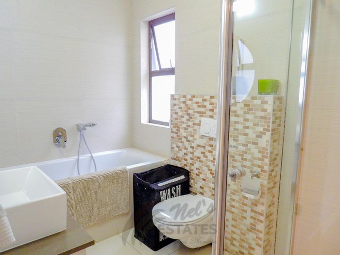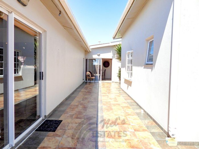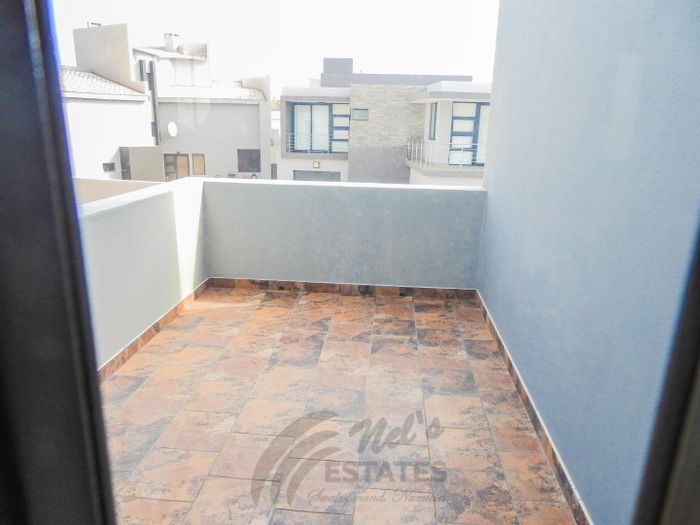 Contemporary townhouse living in Tamariskia, Swakopmund — secure, family-friendly complex with enclosed courtyard for entertaining, modern kitchen with breakfast counter, three bedrooms, two baths and single garage.