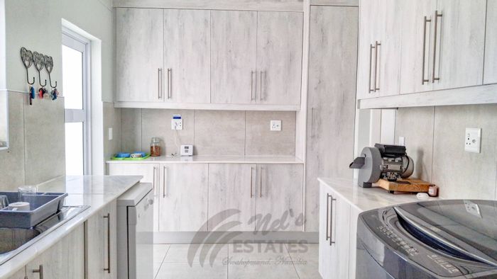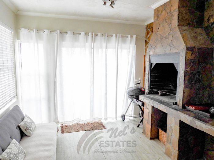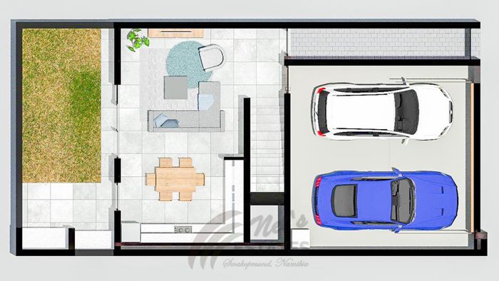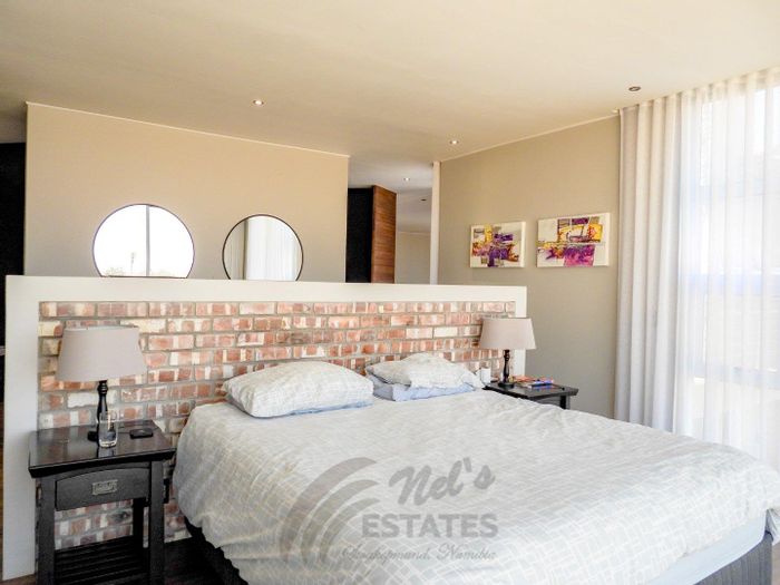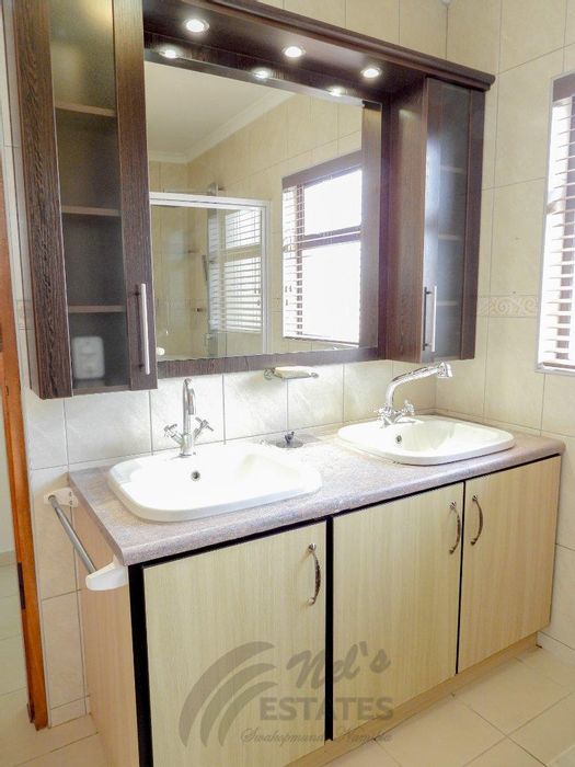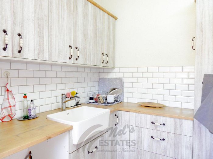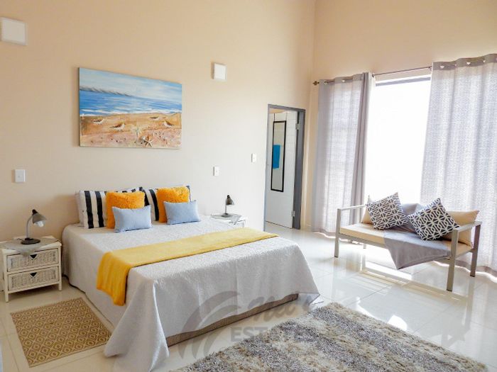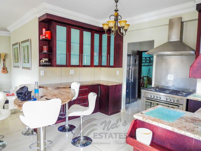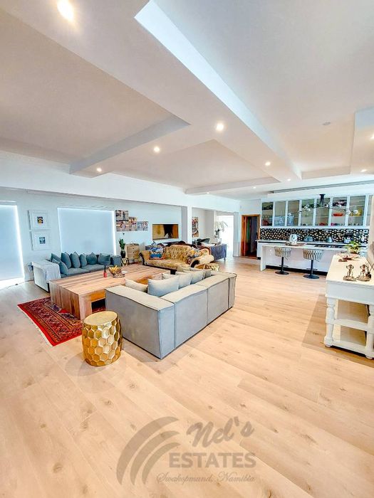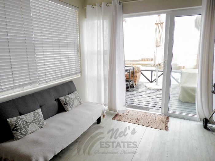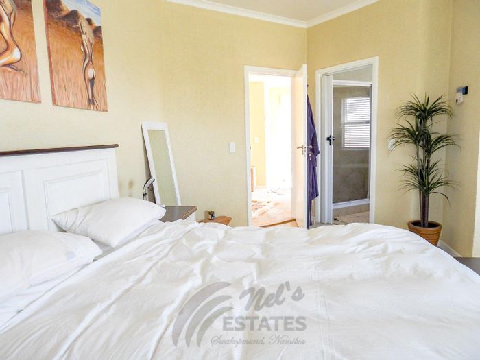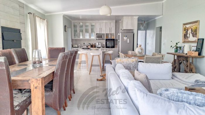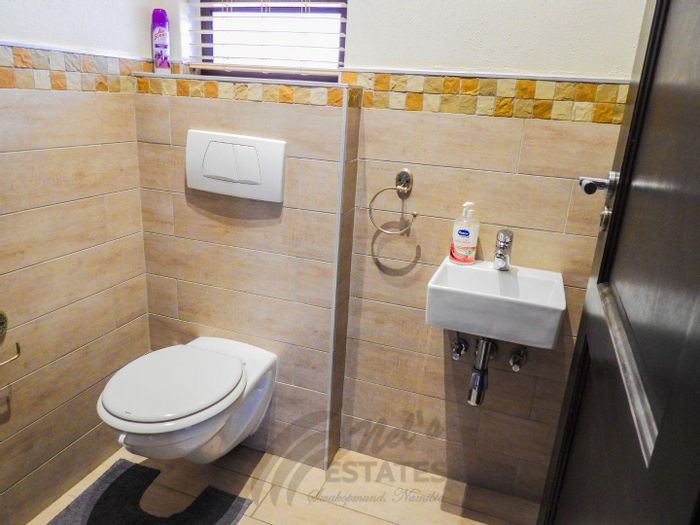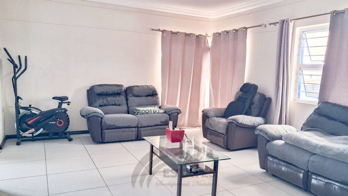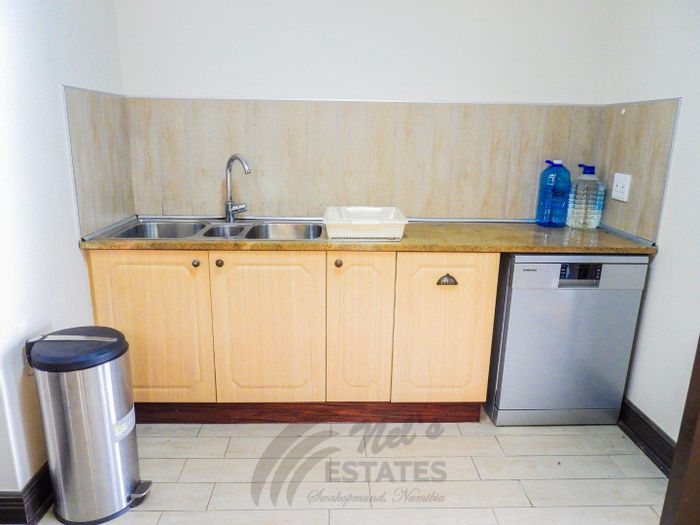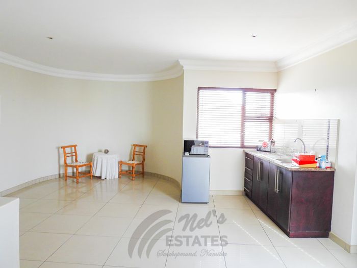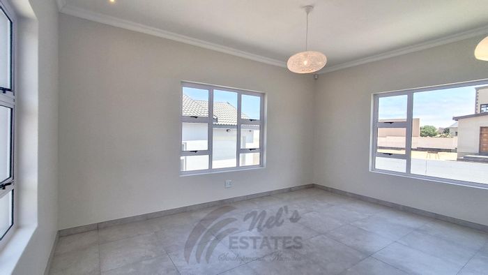 Contemporary townhouse living in Tamariskia, Swakopmund — secure, family-friendly complex with enclosed courtyard for entertaining, modern kitchen with breakfast counter, three bedrooms, two baths and single garage.