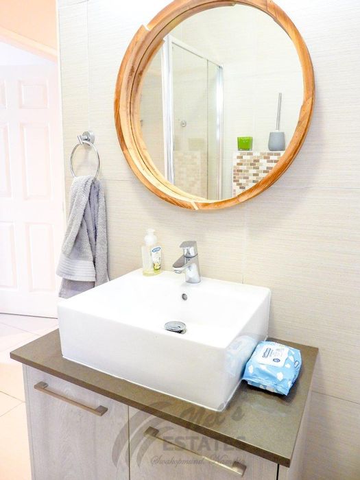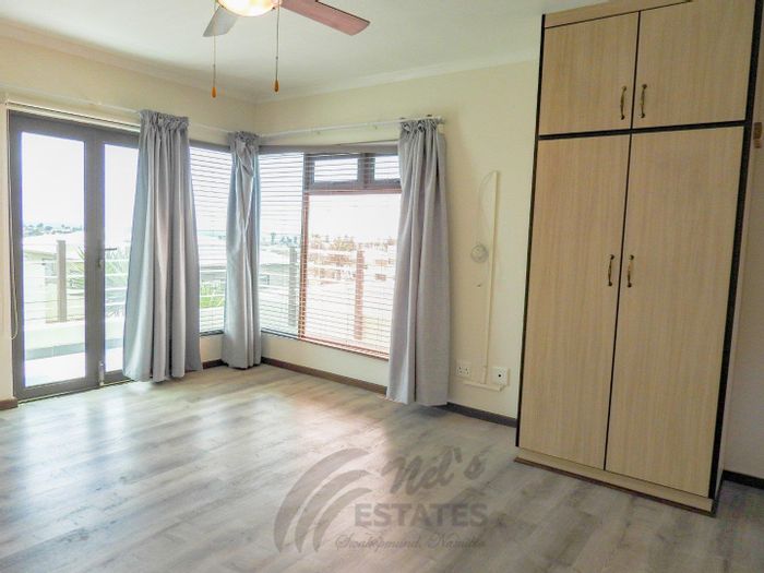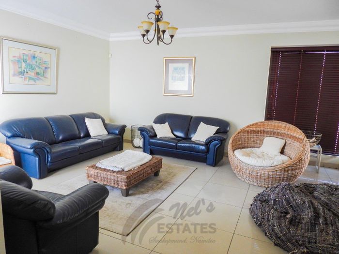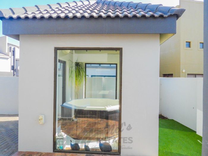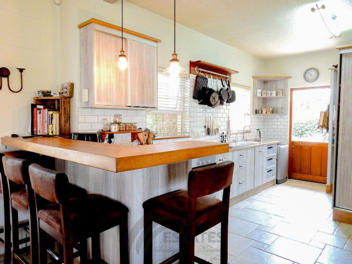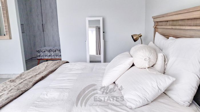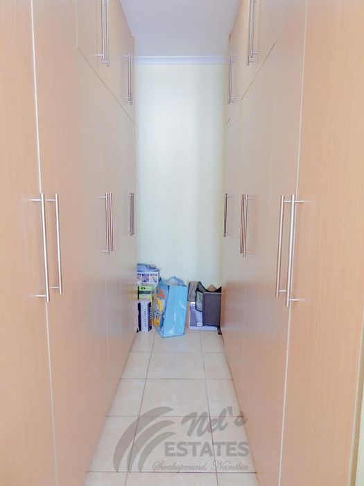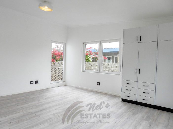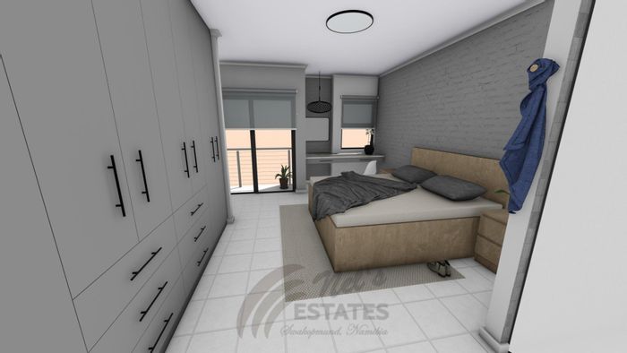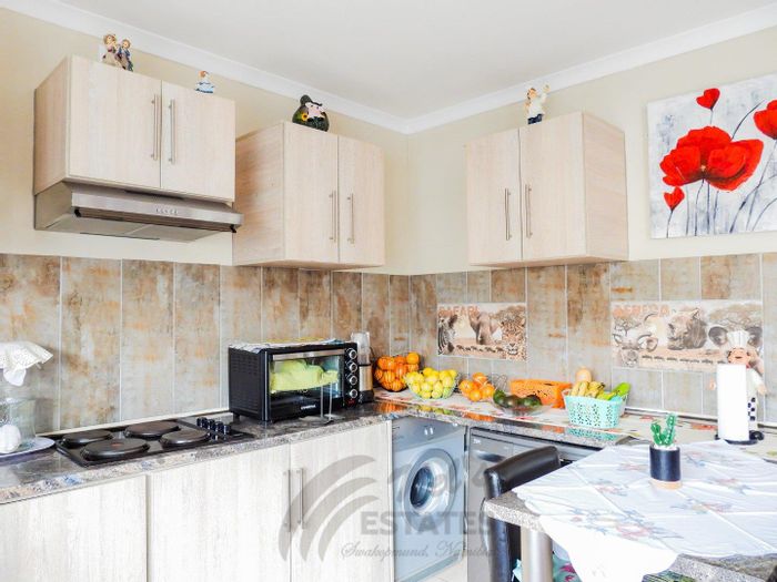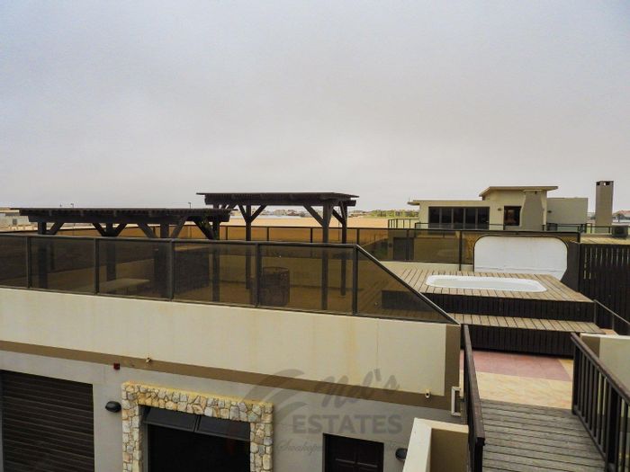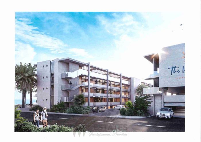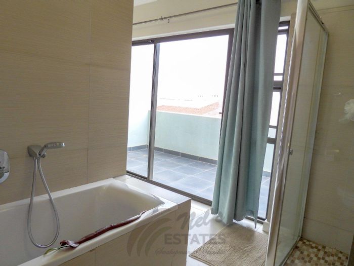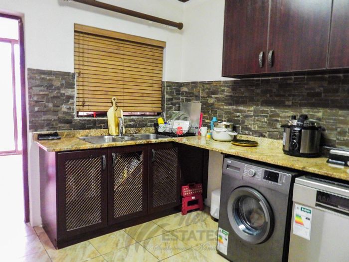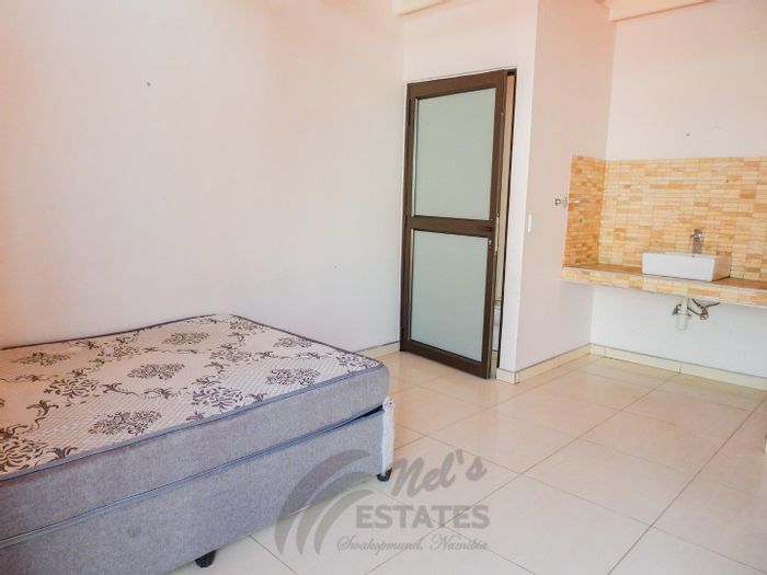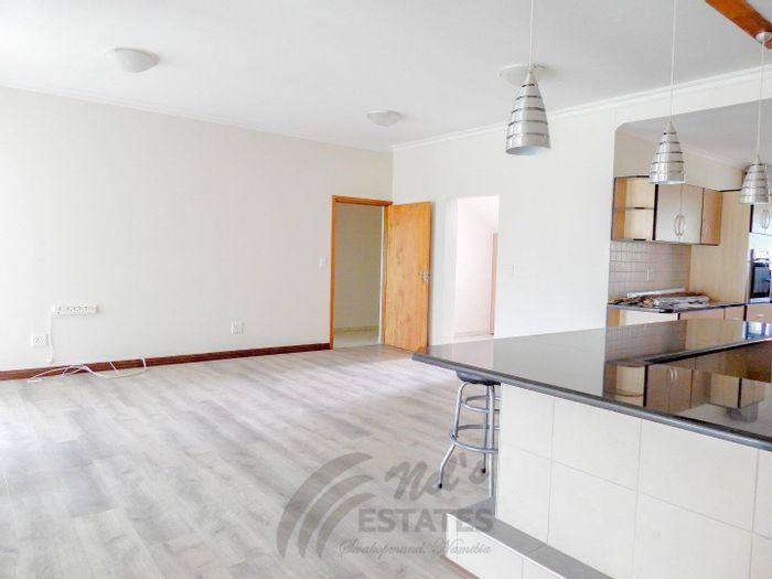 Contemporary townhouse living in Tamariskia, Swakopmund — secure, family-friendly complex with enclosed courtyard for entertaining, modern kitchen with breakfast counter, three bedrooms, two baths and single garage.
