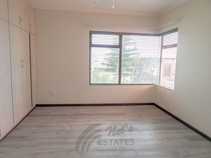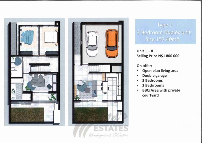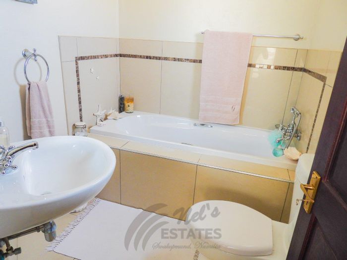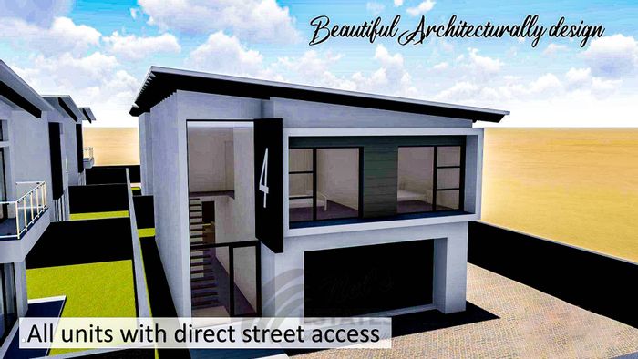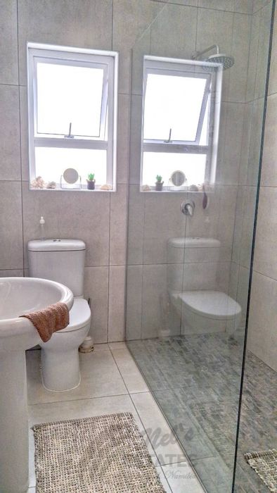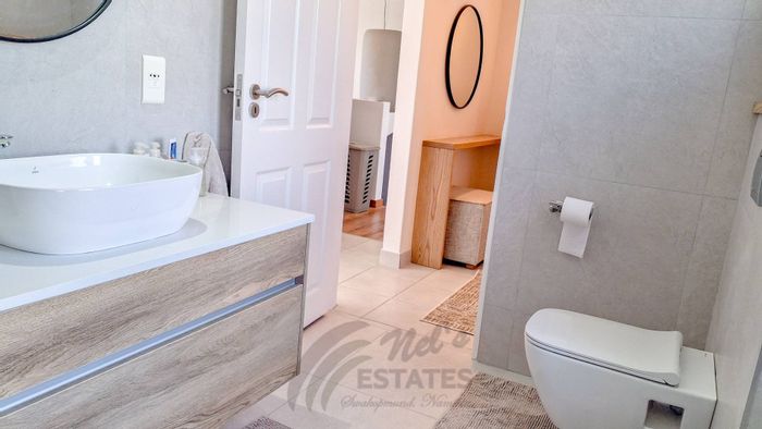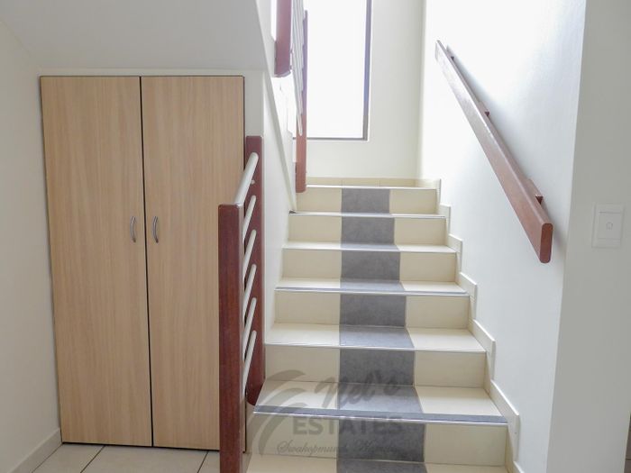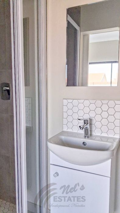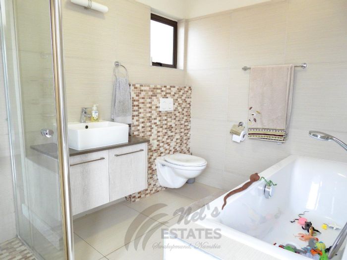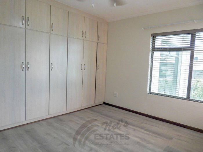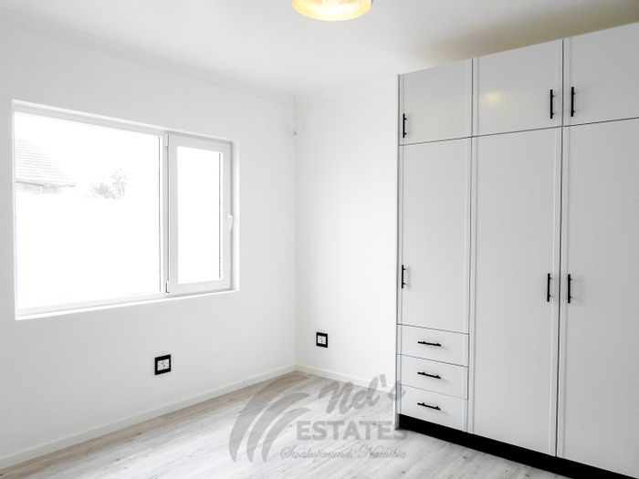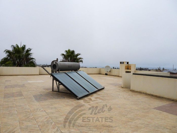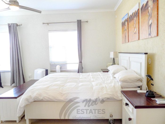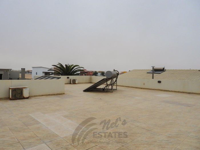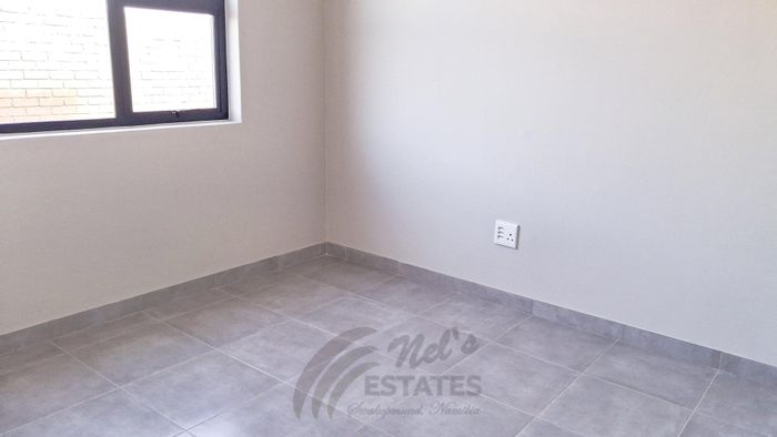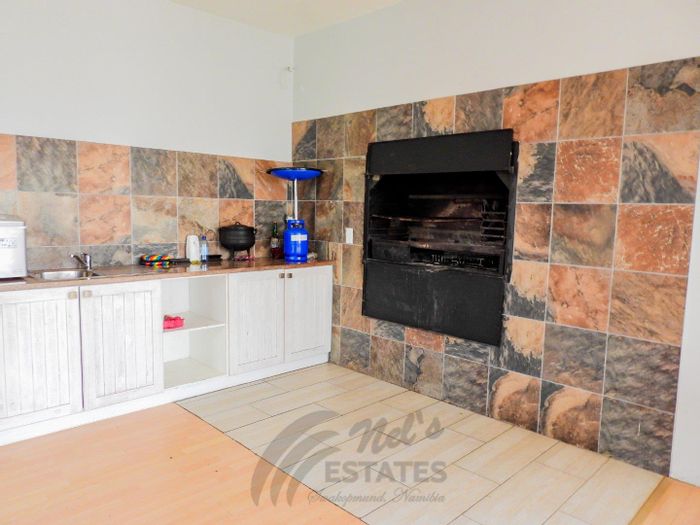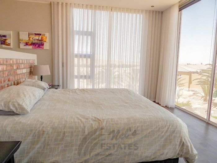 Contemporary townhouse living in Tamariskia, Swakopmund — secure, family-friendly complex with enclosed courtyard for entertaining, modern kitchen with breakfast counter, three bedrooms, two baths and single garage.