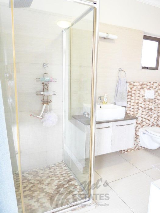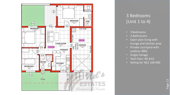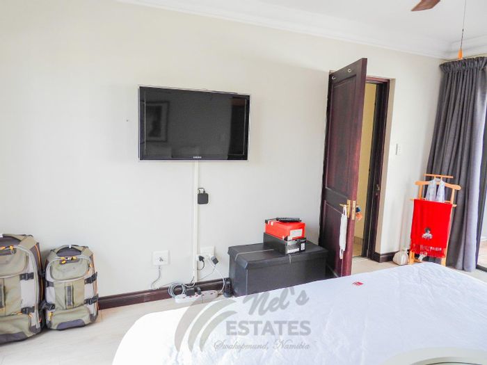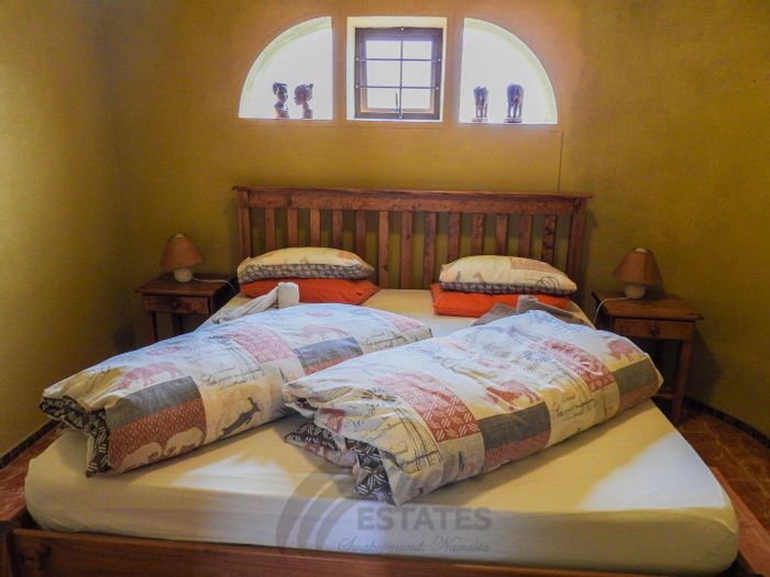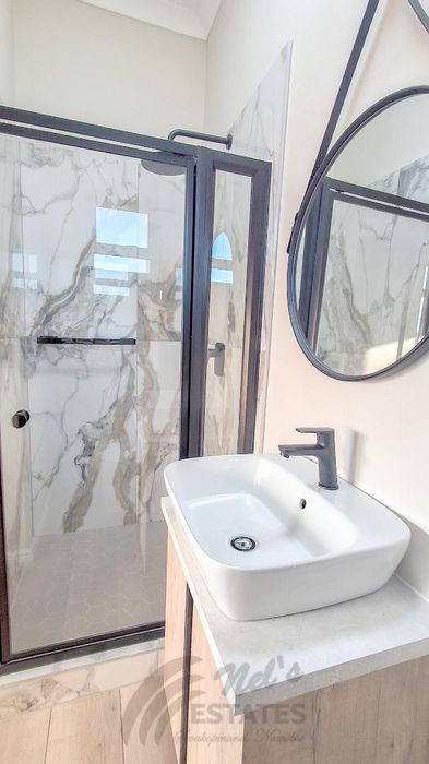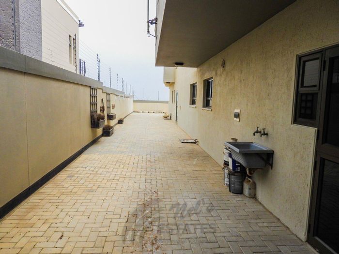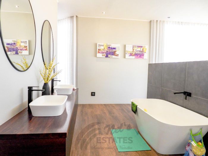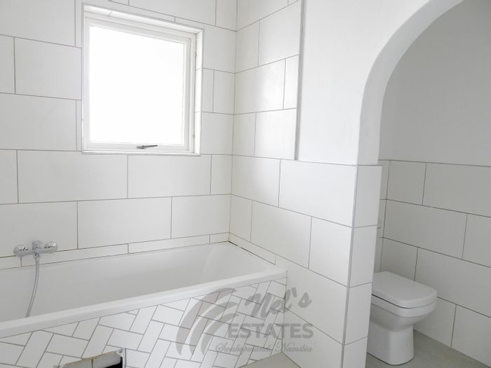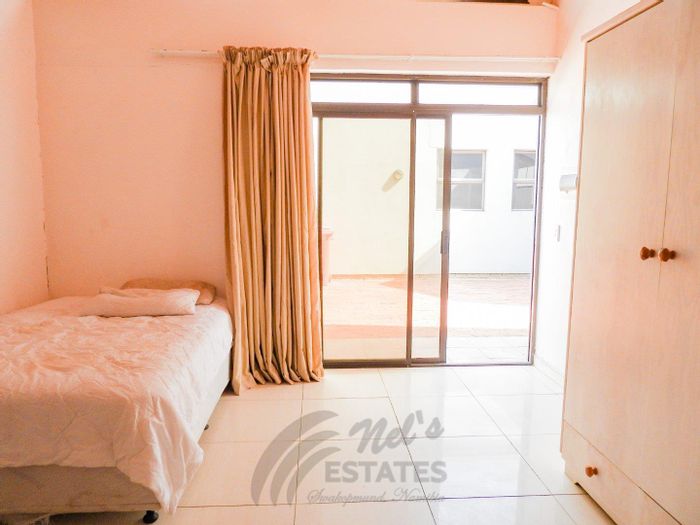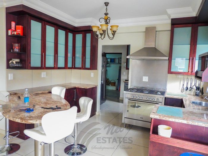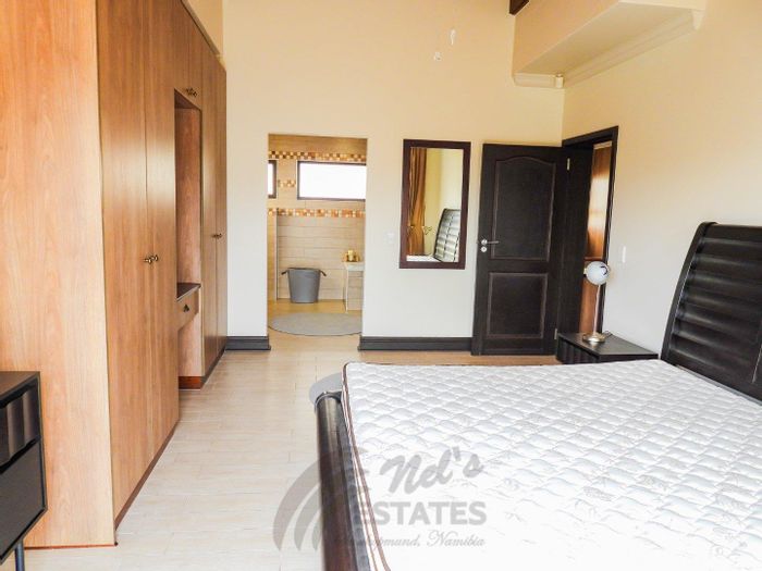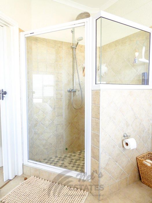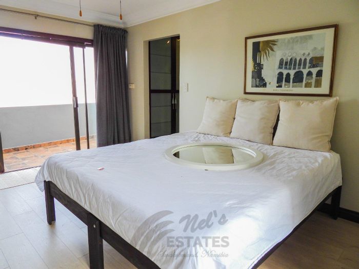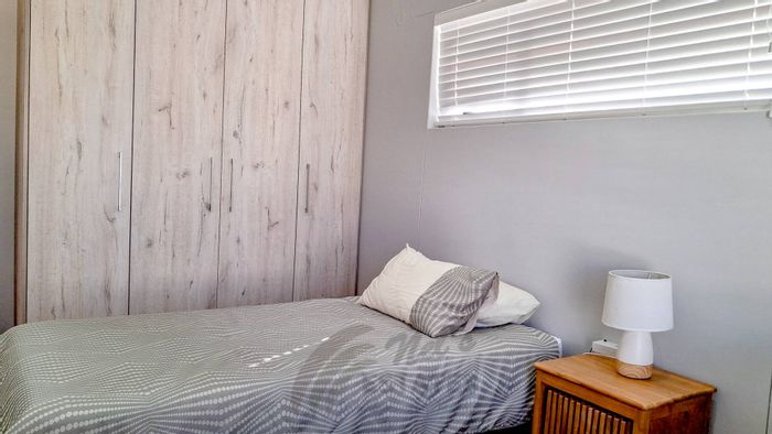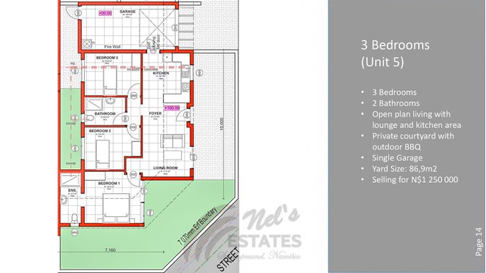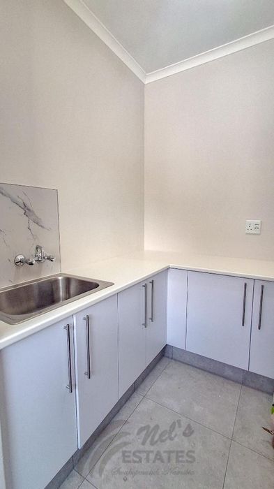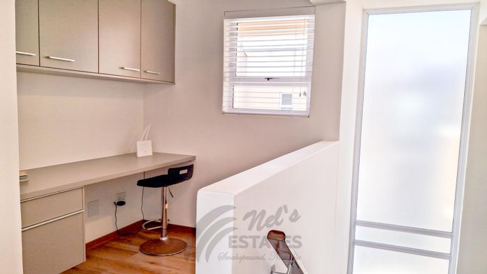 Contemporary townhouse living in Tamariskia, Swakopmund — secure, family-friendly complex with enclosed courtyard for entertaining, modern kitchen with breakfast counter, three bedrooms, two baths and single garage.