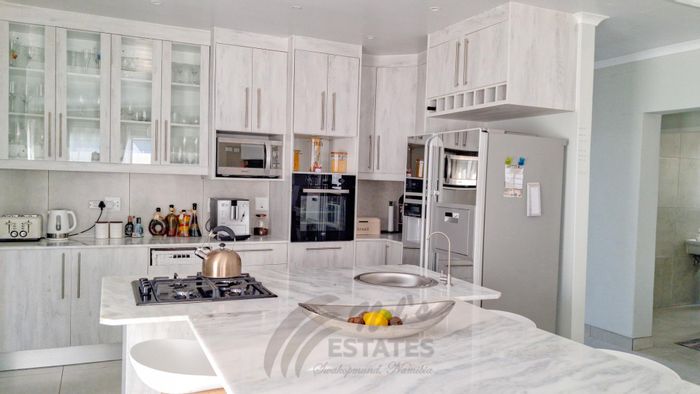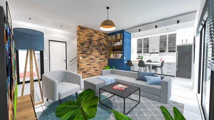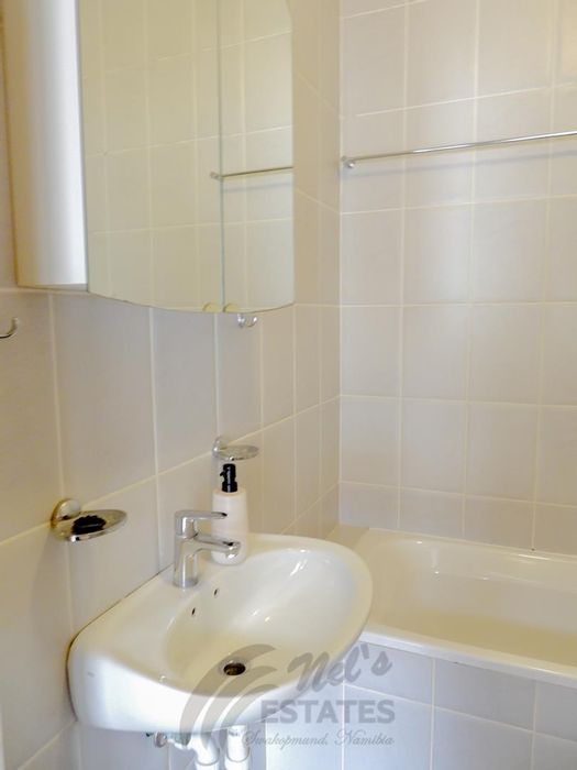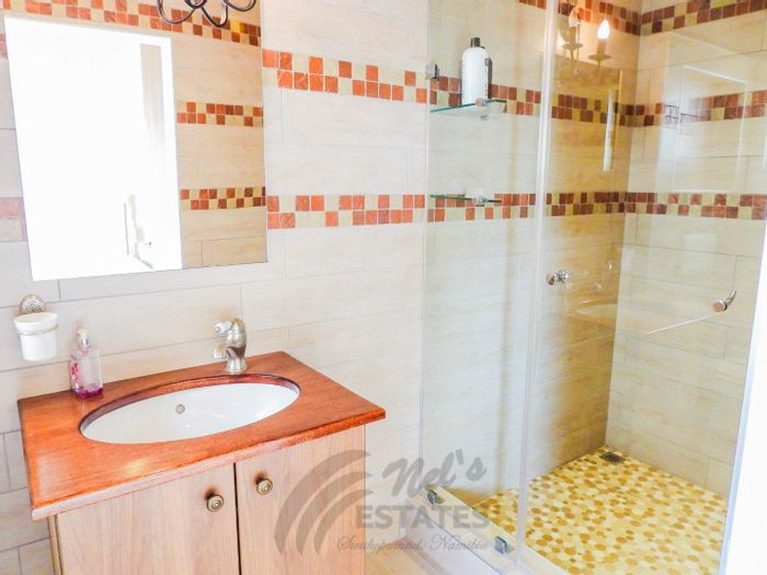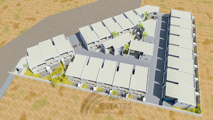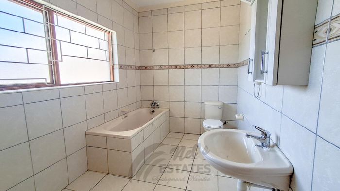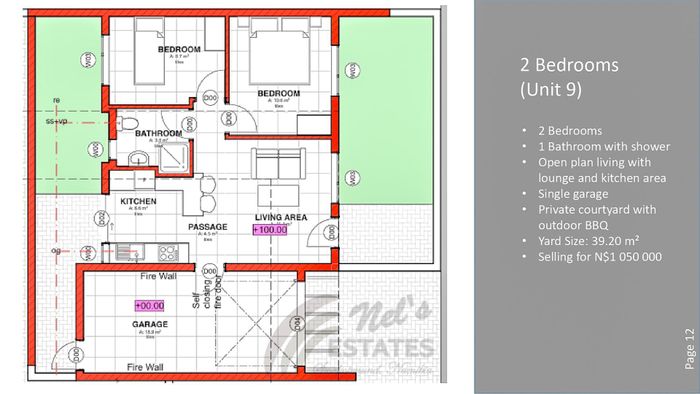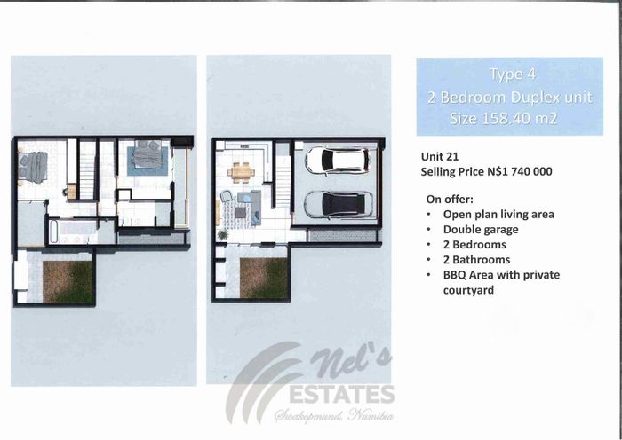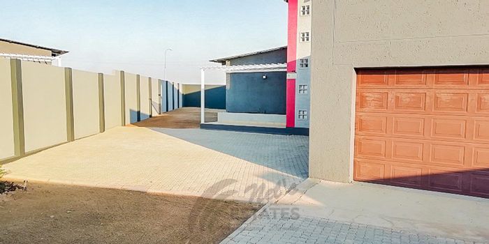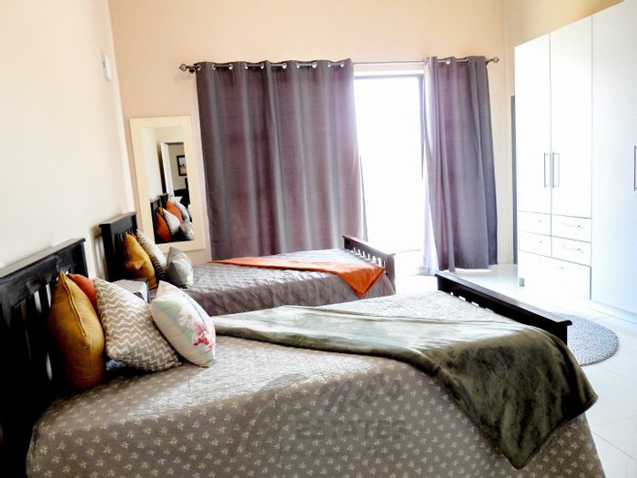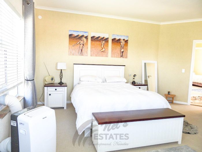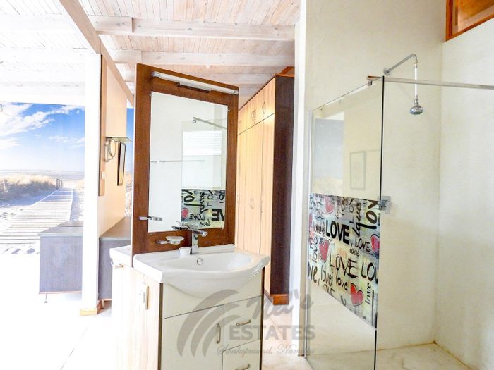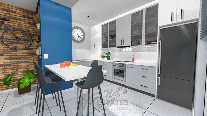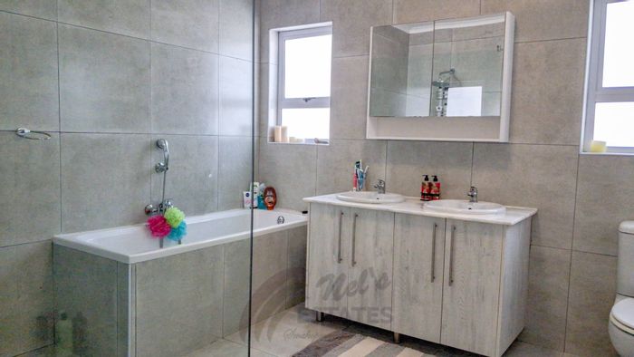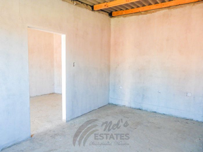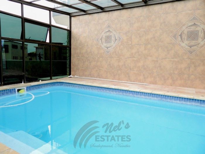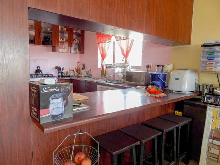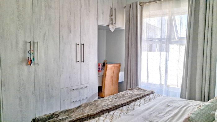 Contemporary townhouse living in Tamariskia, Swakopmund — secure, family-friendly complex with enclosed courtyard for entertaining, modern kitchen with breakfast counter, three bedrooms, two baths and single garage.