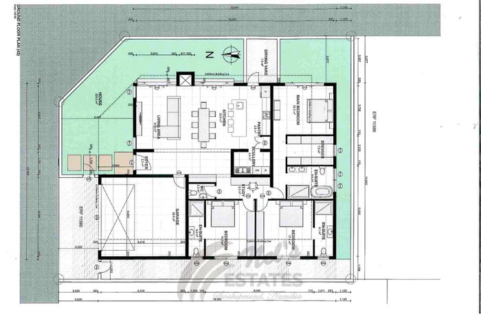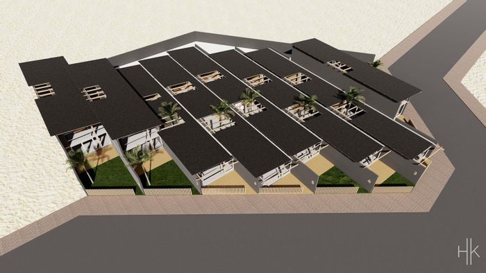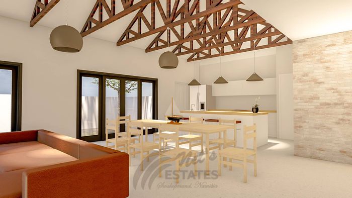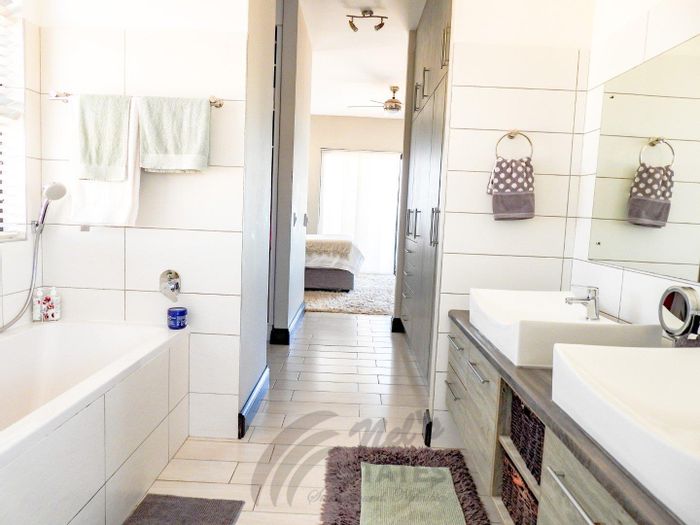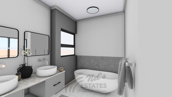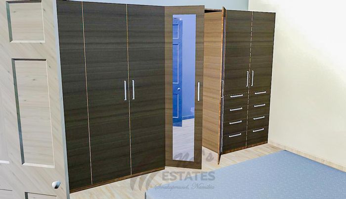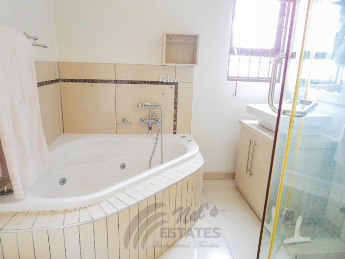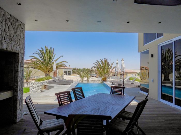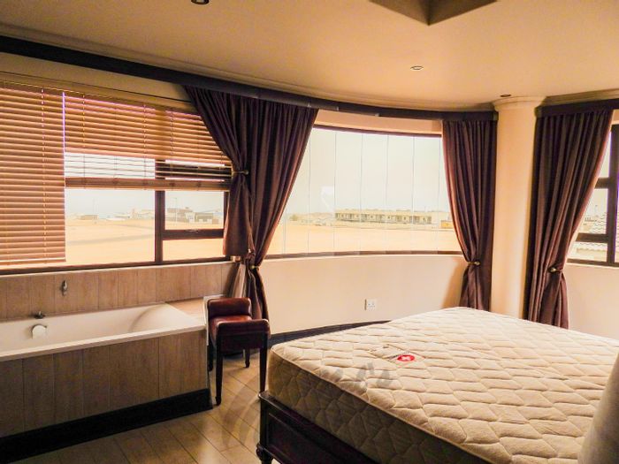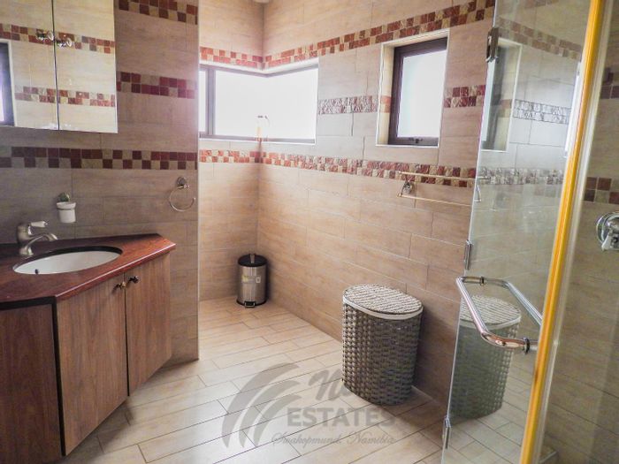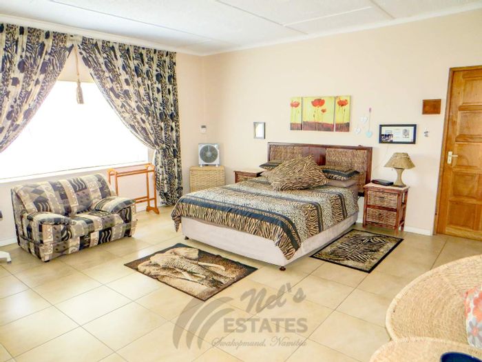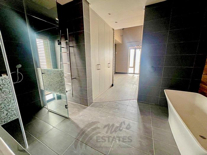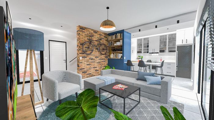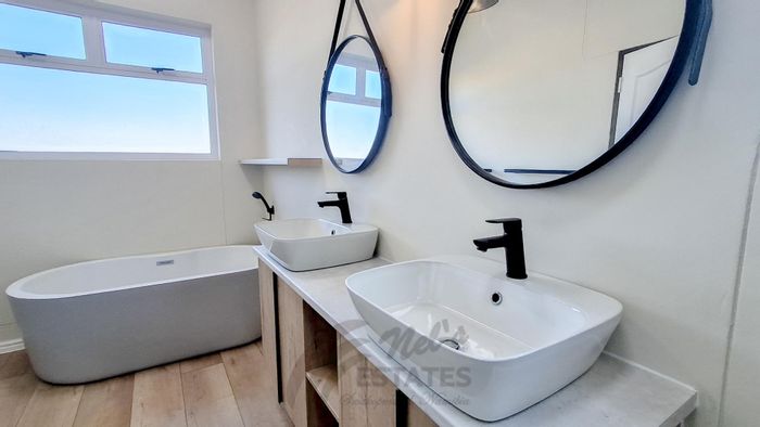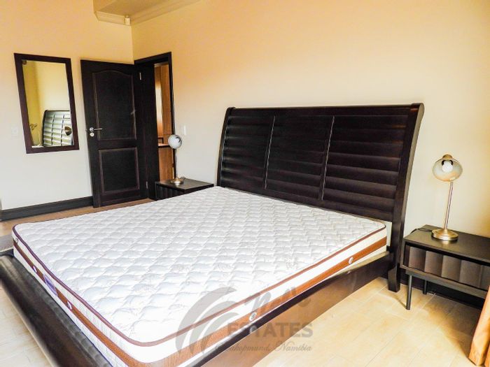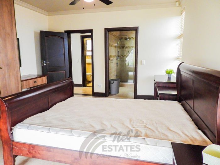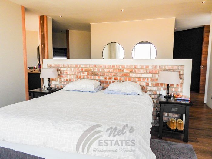 Contemporary townhouse living in Tamariskia, Swakopmund — secure, family-friendly complex with enclosed courtyard for entertaining, modern kitchen with breakfast counter, three bedrooms, two baths and single garage.