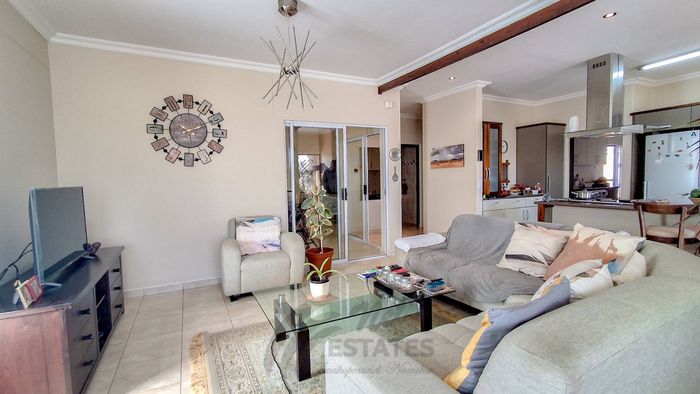 2-bedroom townhouse with open plan kitchen, indoor braai area, yard, and garage, perfect for outdoor activities and relaxation.
