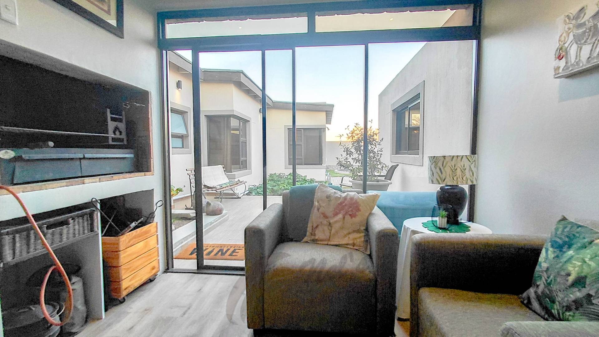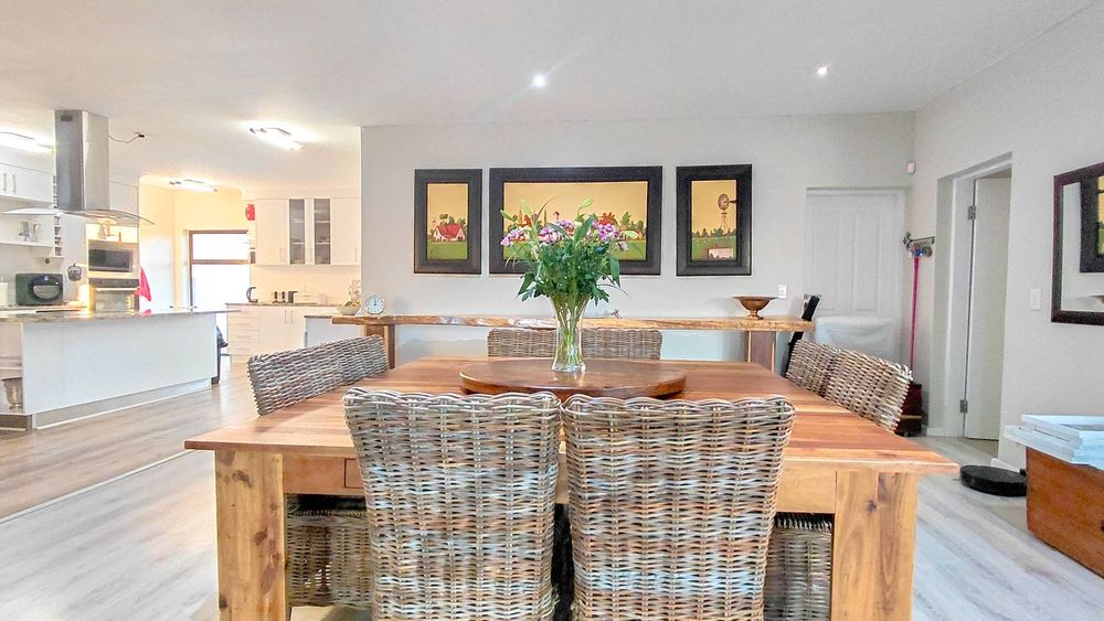 The braai room, complete with a built-in BBQ, opens onto the yard, creating a wonderful setting for year-round entertaining. This level also includes one ensuite bedroom, two additional guest bedrooms, a full bathroom, and a guest WC, offering comfortable accommodation for family and visitors alike.