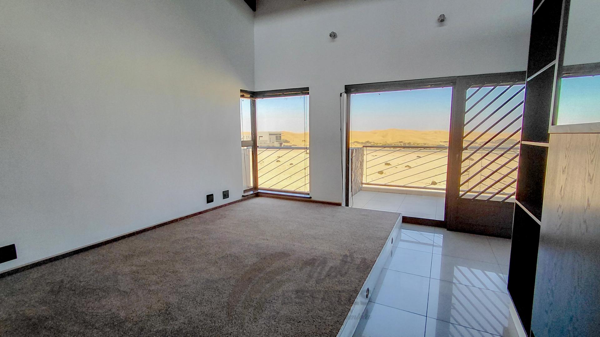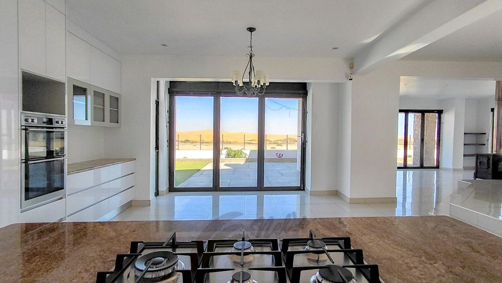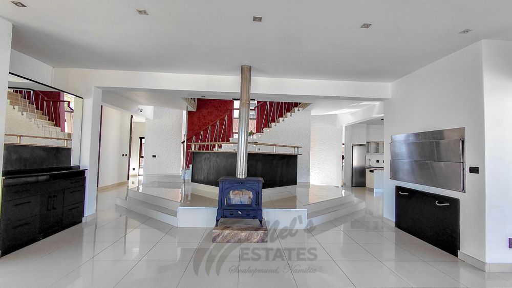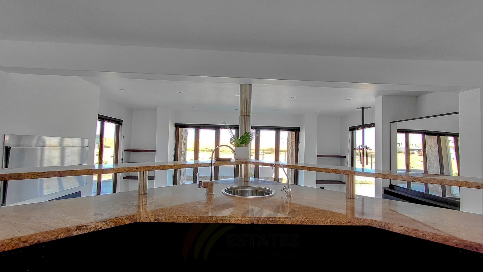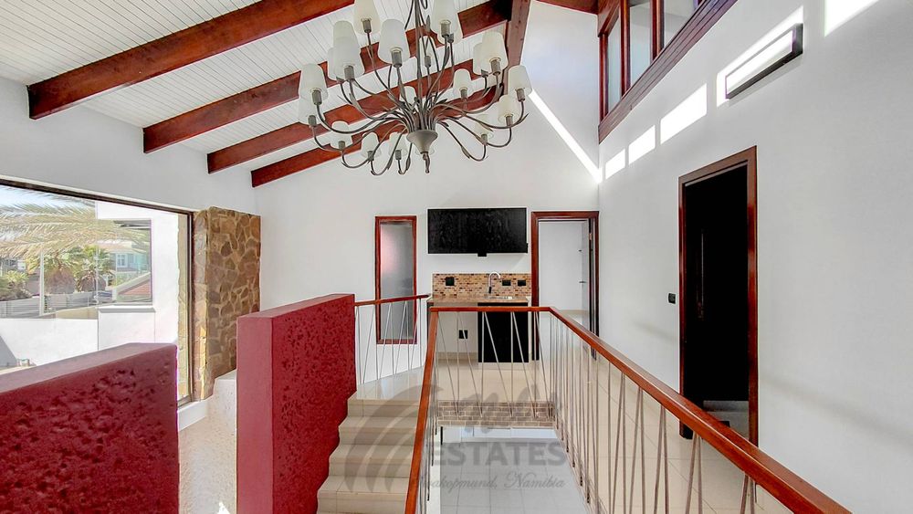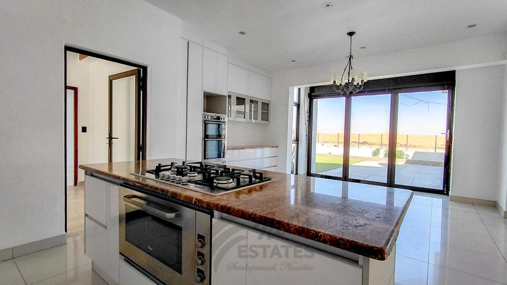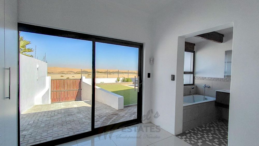 Located in the sought-after coastal area of Riverside, Swakopmund, this architect-designed mansion offers luxury, space, and beautiful dune views, with plenty of natural light throughout.