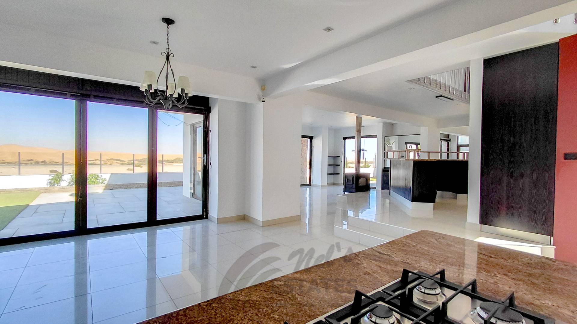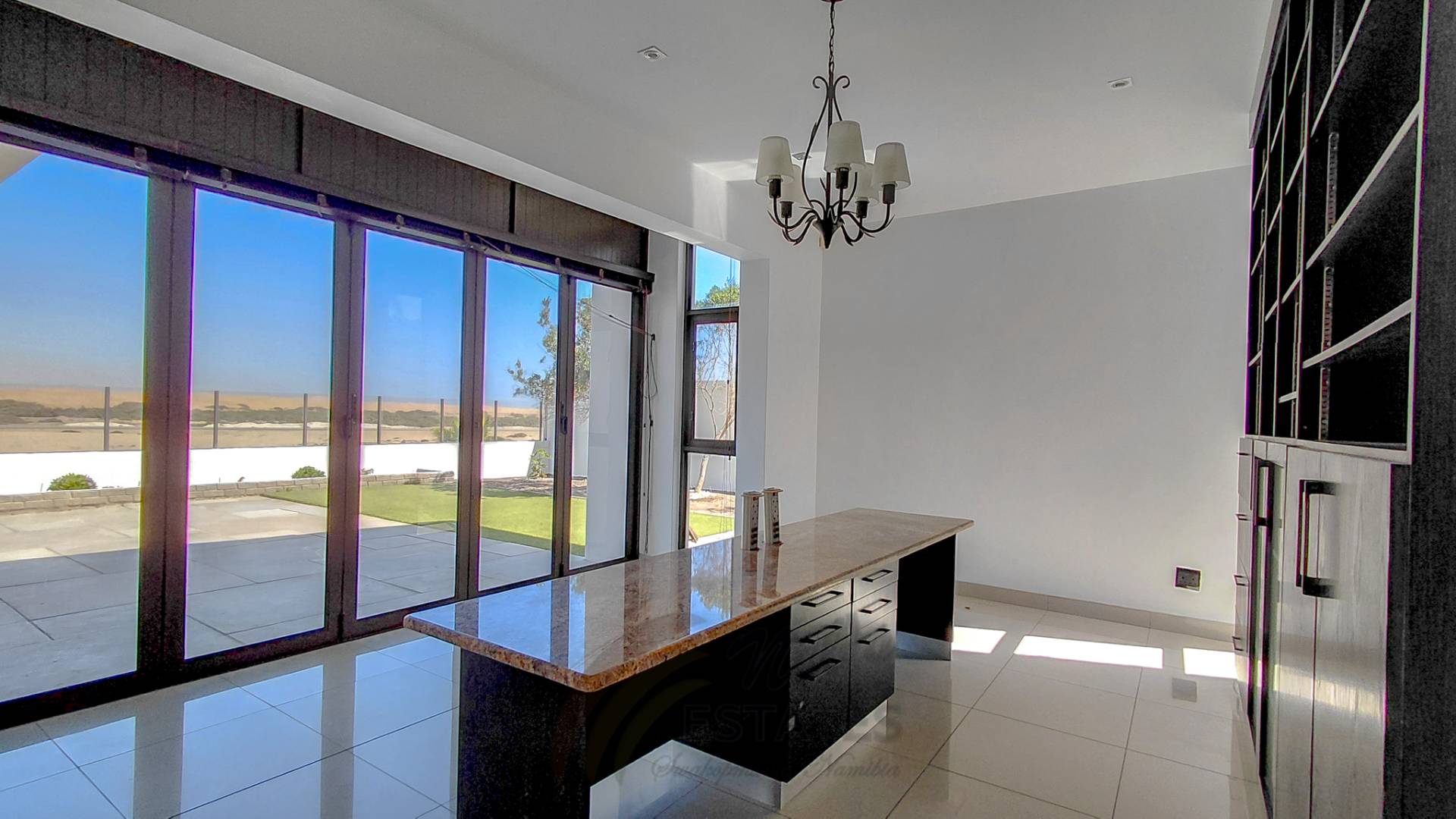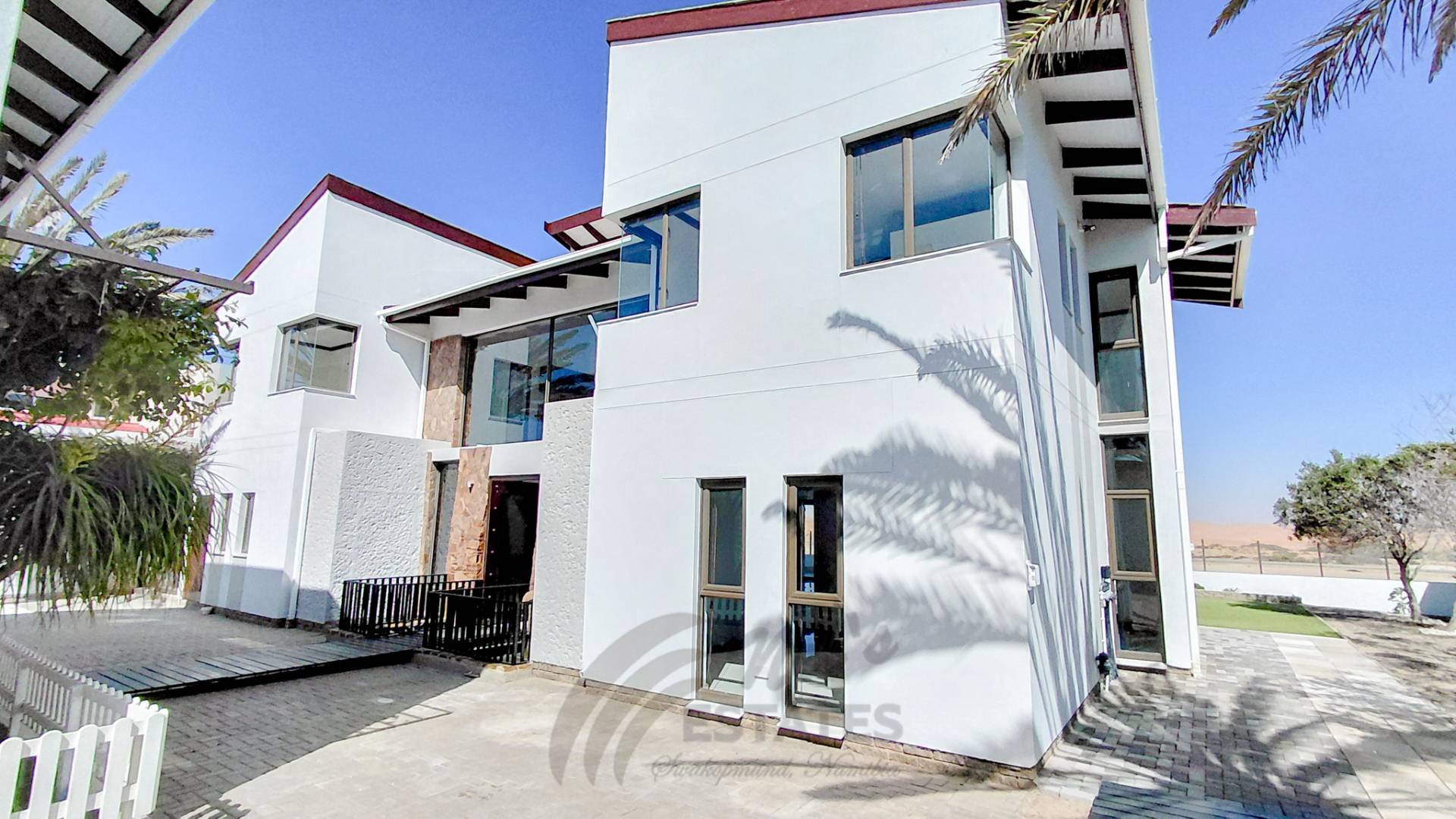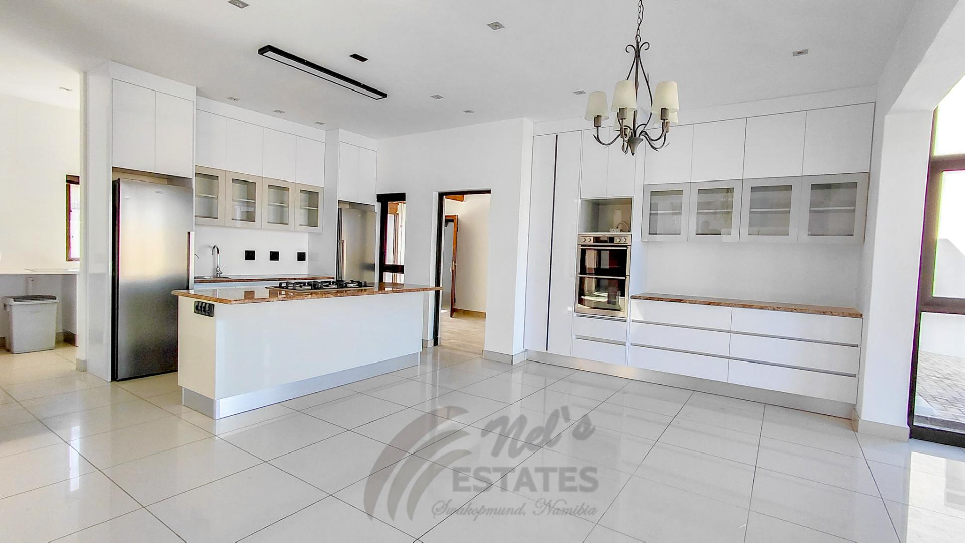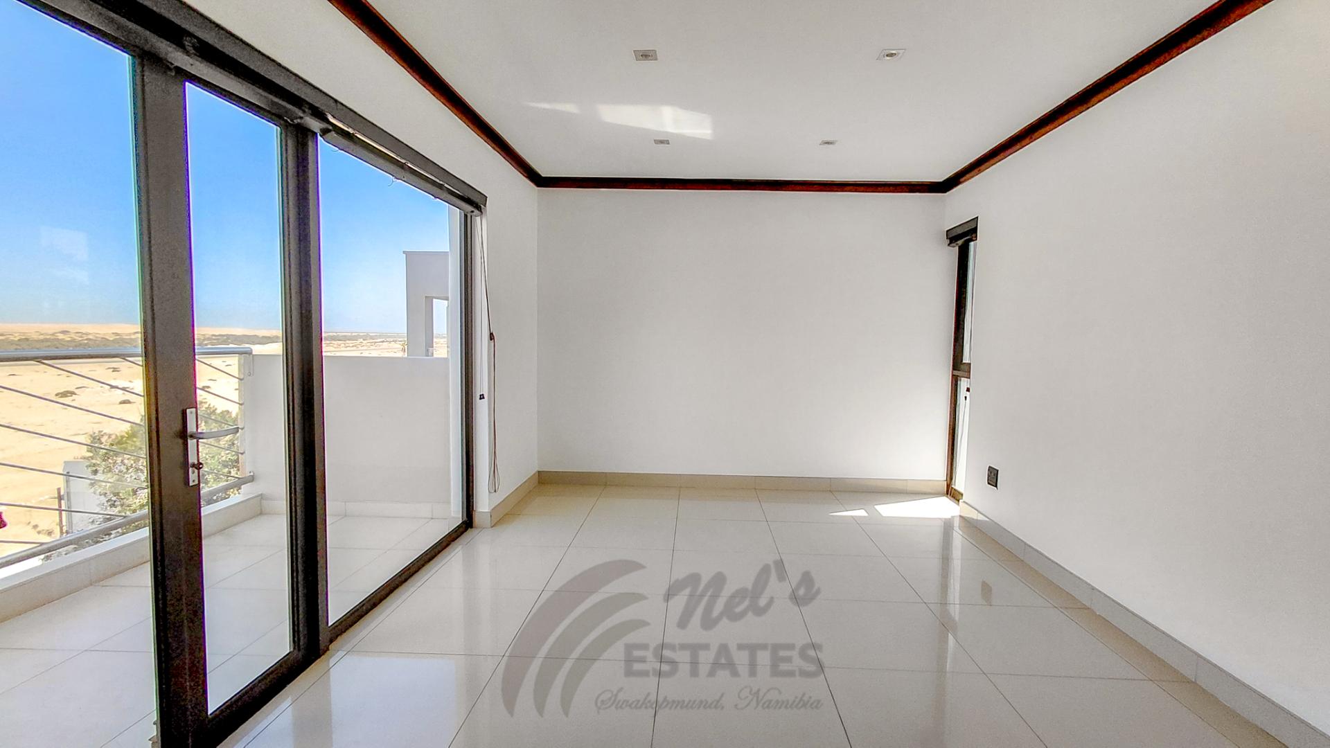 Located in the sought-after coastal area of Riverside, Swakopmund, this architect-designed mansion offers luxury, space, and beautiful dune views, with plenty of natural light throughout.