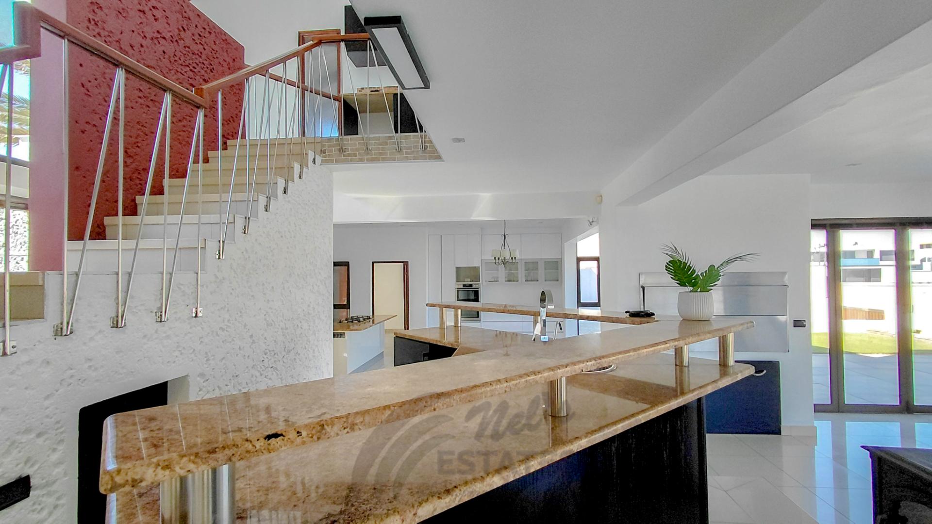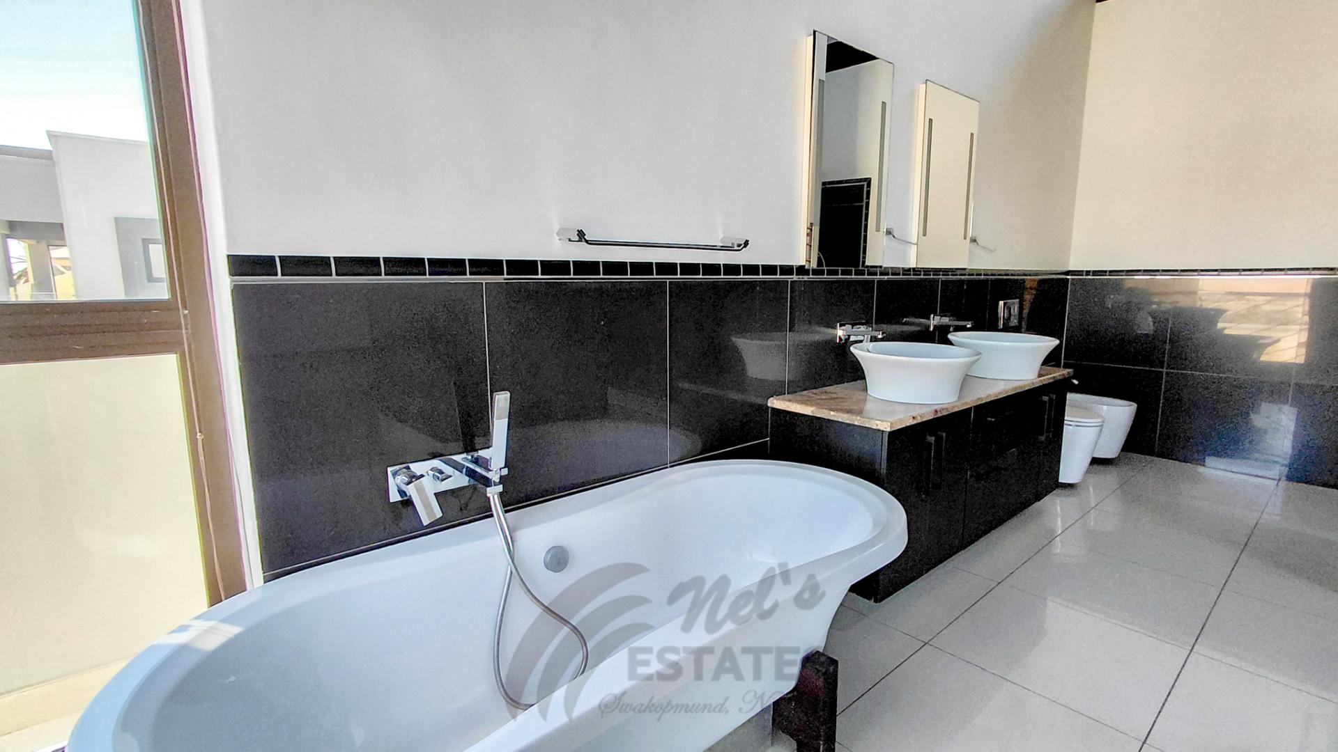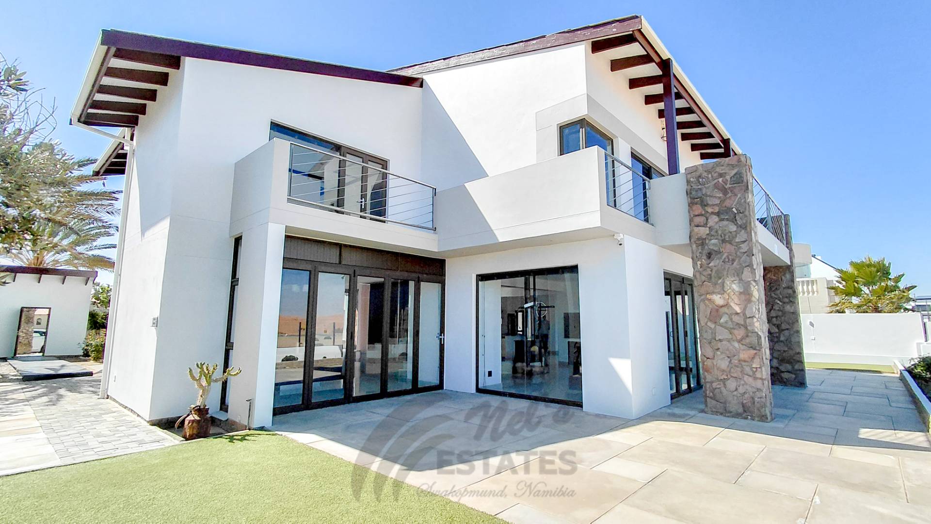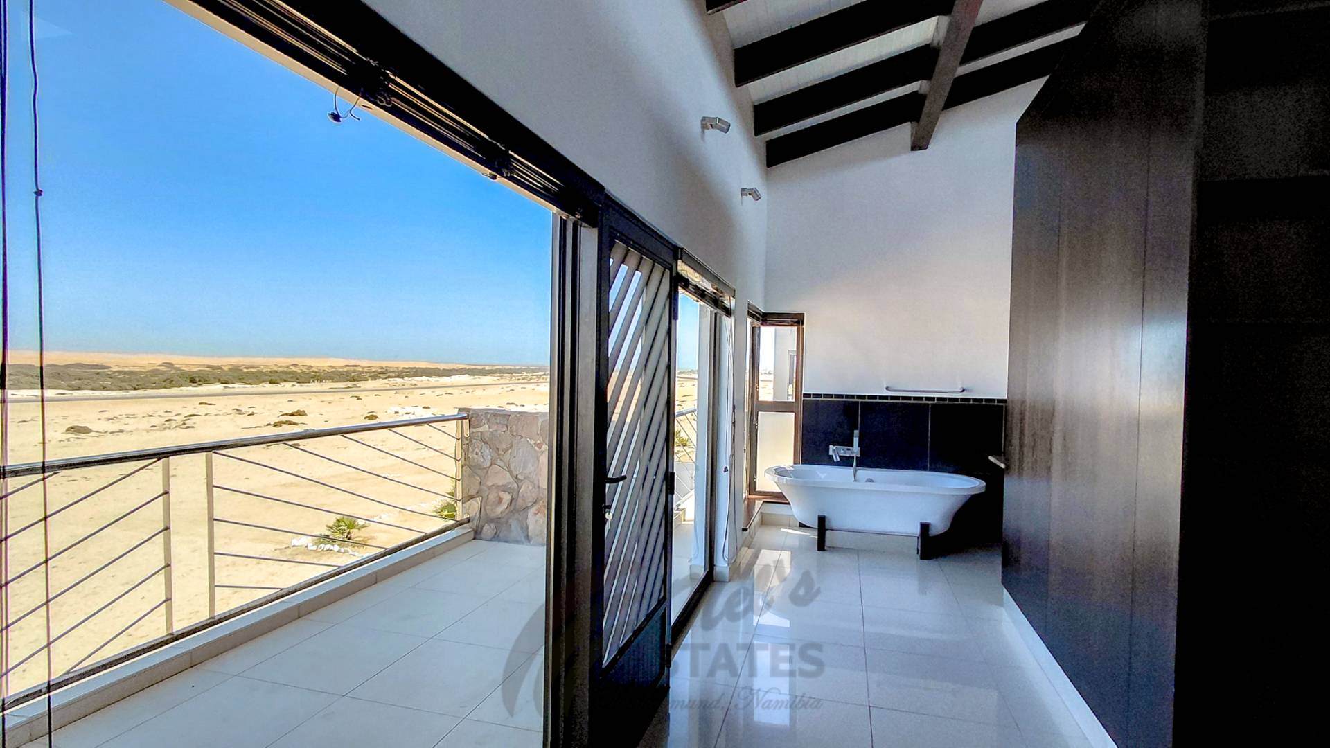 Located in the sought-after coastal area of Riverside, Swakopmund, this architect-designed mansion offers luxury, space, and beautiful dune views, with plenty of natural light throughout.