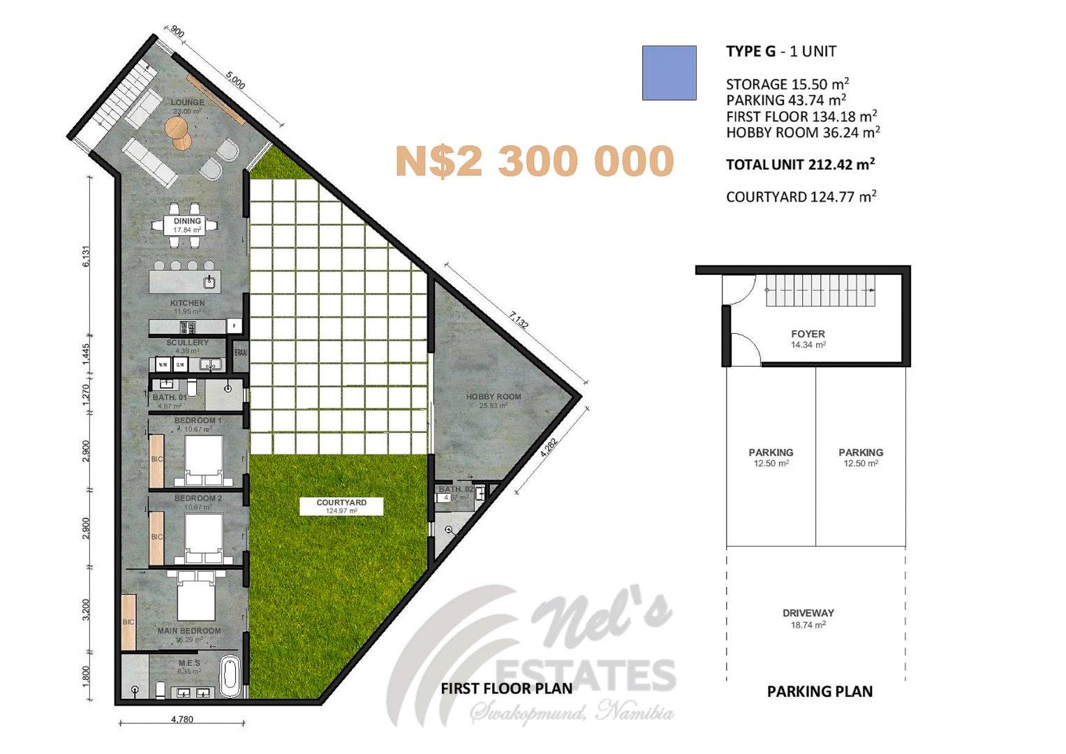 Type G – 4 Bedroom, 3 Bathroom, 2 Parking & Storage, Private Courtyard 124.00m2 – N$ 2 550 000.00 TOTAL 212 m2