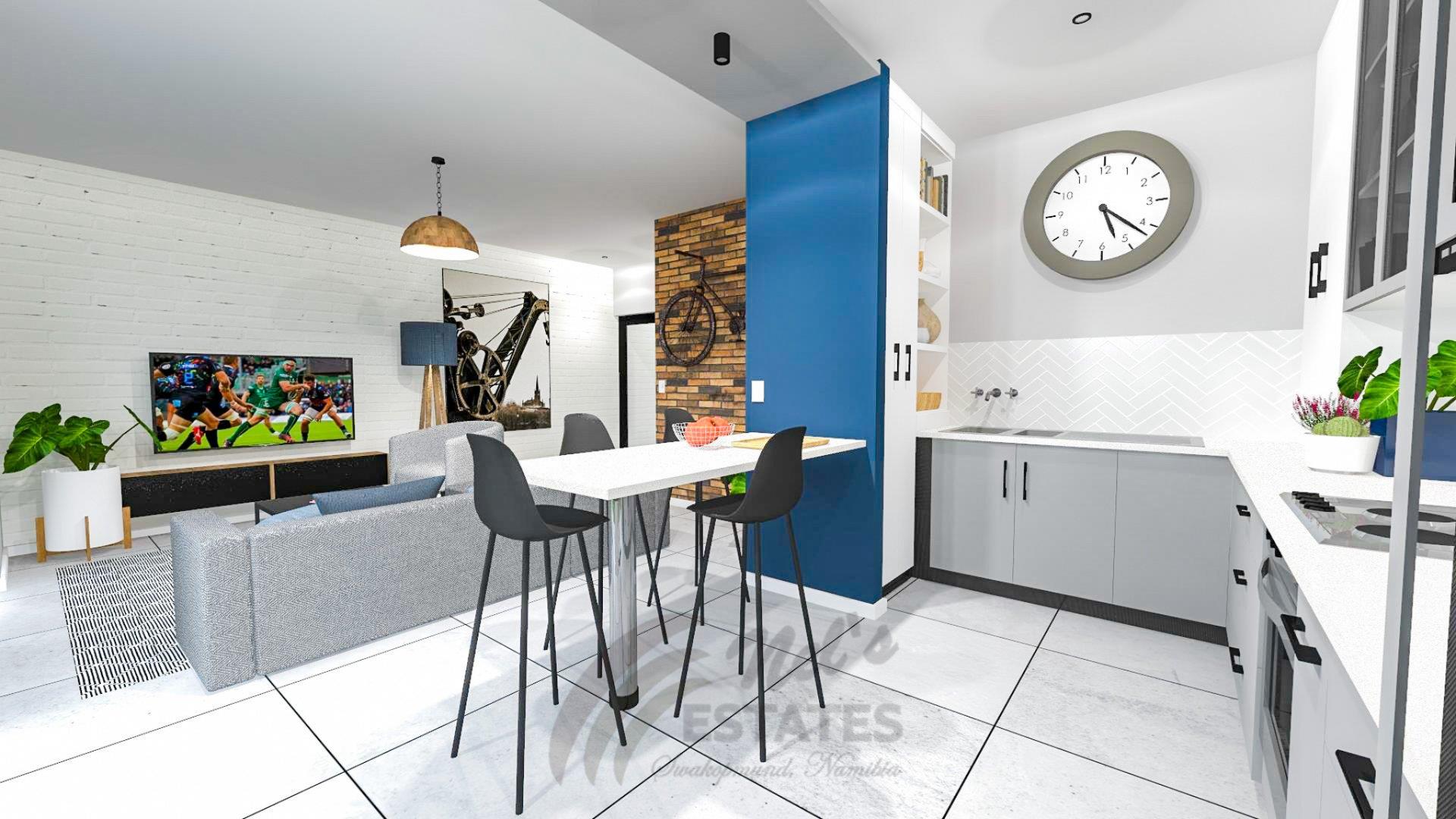 Step into the inviting open-plan living area, creating a spacious environment for relaxation and entertainment. The fully fitted kitchen is a chef's dream, featuring a sleek breakfast counter that is perfect for casual dining or socializing while you cook.