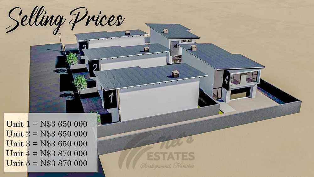 Welcome to an exclusive new development in the desirable suburb of Kramersdorf, Swakopmund. This thoughtfully designed, safe and secure complex offers just 5 architecturally striking units, each with private entrances and direct street access β combining the privacy of freestanding living with the convenience of secure community living.