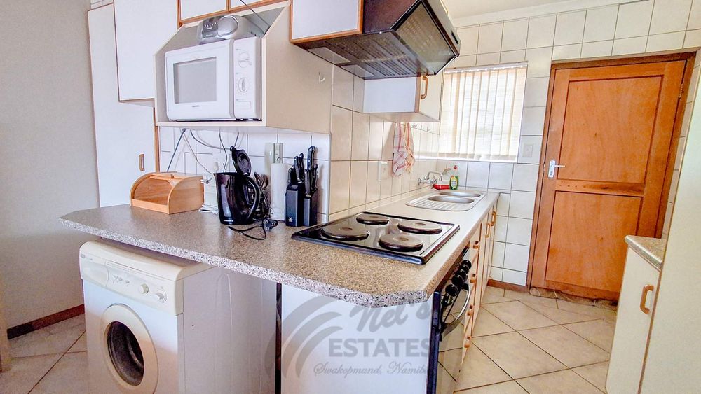The unit features a neatly finished bathroom and a fully fitted kitchen with ample cupboard space, making everyday living effortless.