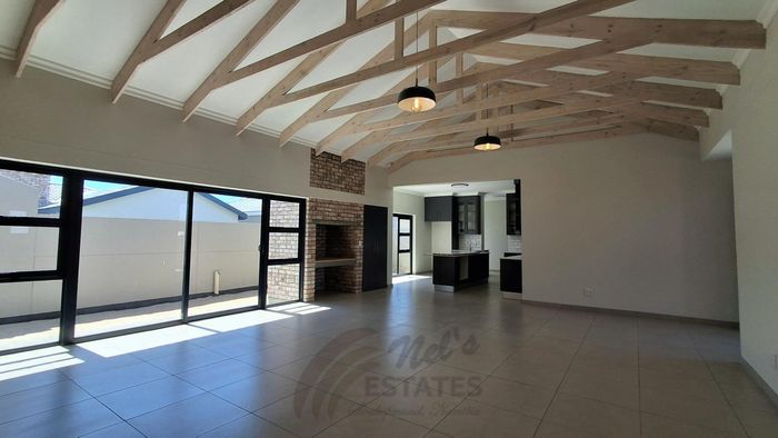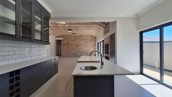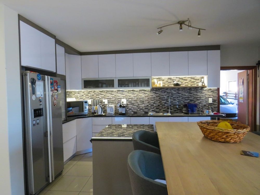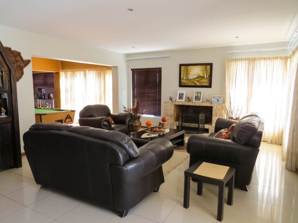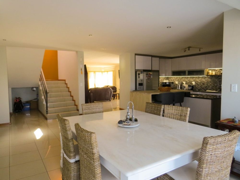 This beautiful spacious double storey house has four bedrooms and four bathrooms , 2 x TV lounges and a kitchen with scullery and laundry . You also have a dining room , living room and a built in BBQ . Furthermore you have an outside entertainment area with outside BBQ and three garages .