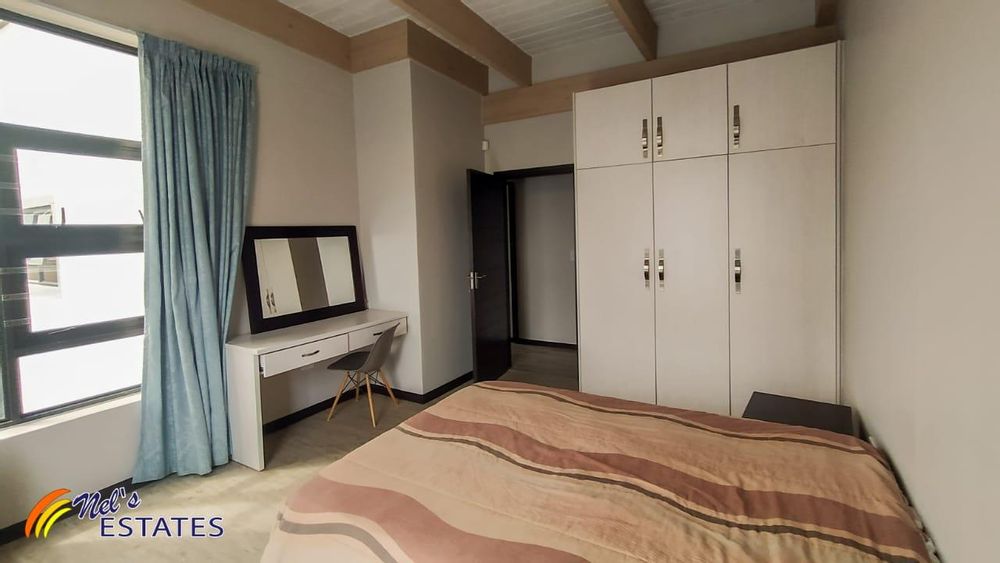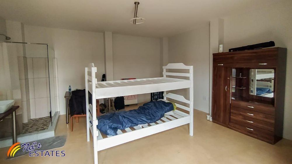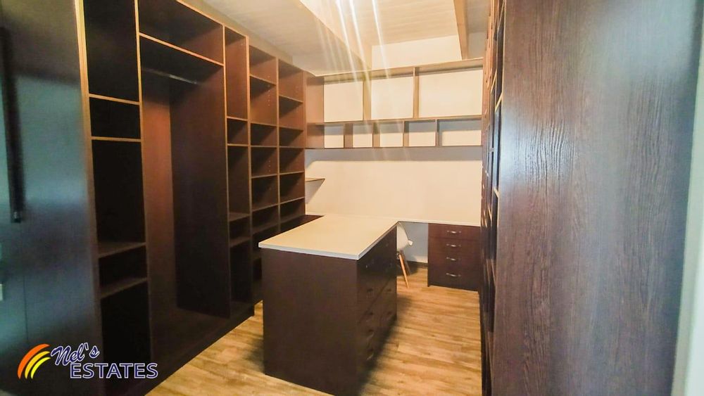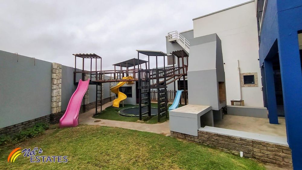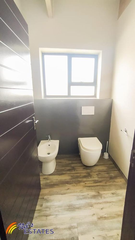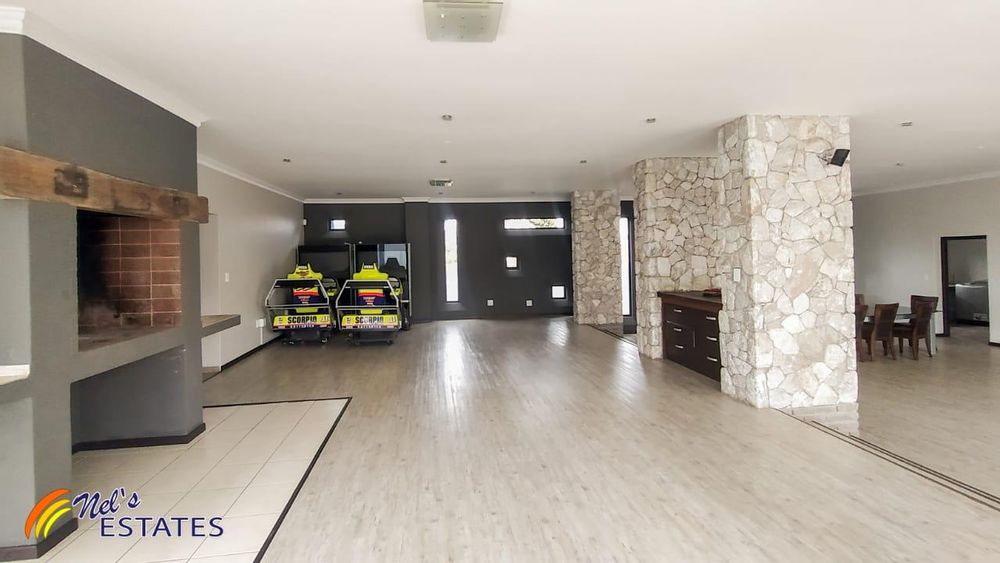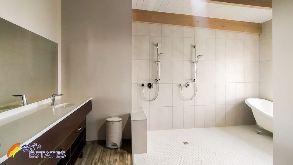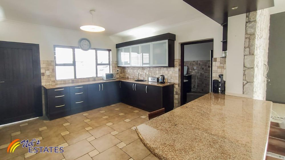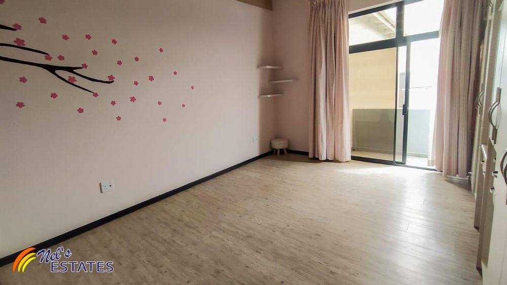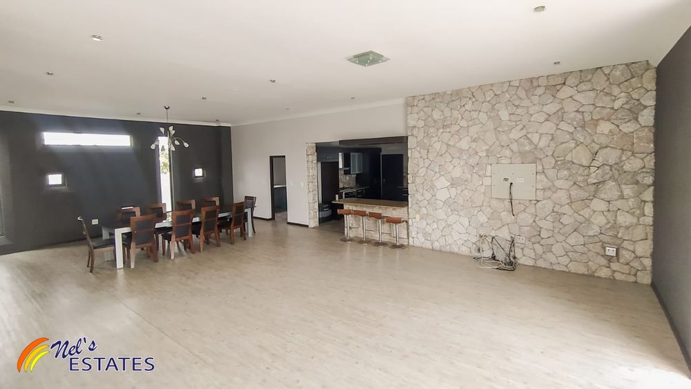 This exquisite family home offers luxury and ample space with quality finishes throughout. The downstairs area features a fully fitted kitchen and separate scullery and laundry, a spacious dining area, and a lounge that leads to the elevated entertainment area with indoor BBQ facilities and a guest toilet. Large sliding doors open to the undercover patio with built-in outdoor BBQ facilities and a vibrant garden, surrounded by a high boundary wall - perfect for year-round entertainment. Connected to the main house is a bachelor flat with its own entrance and single garage, providing accommodation for extra family members or guests.