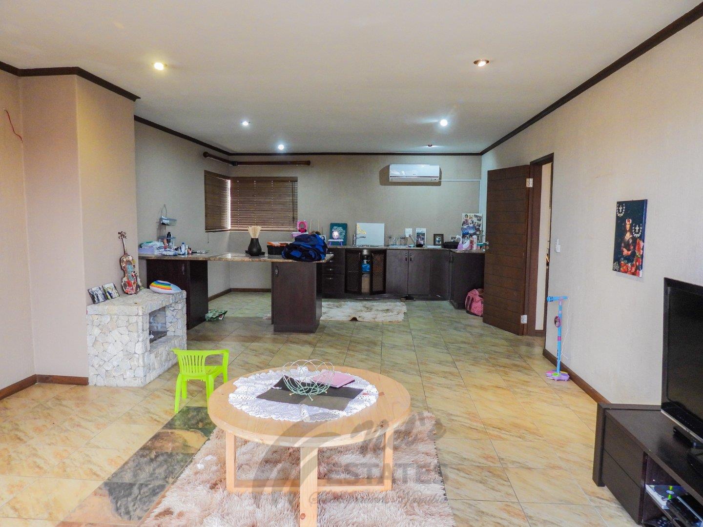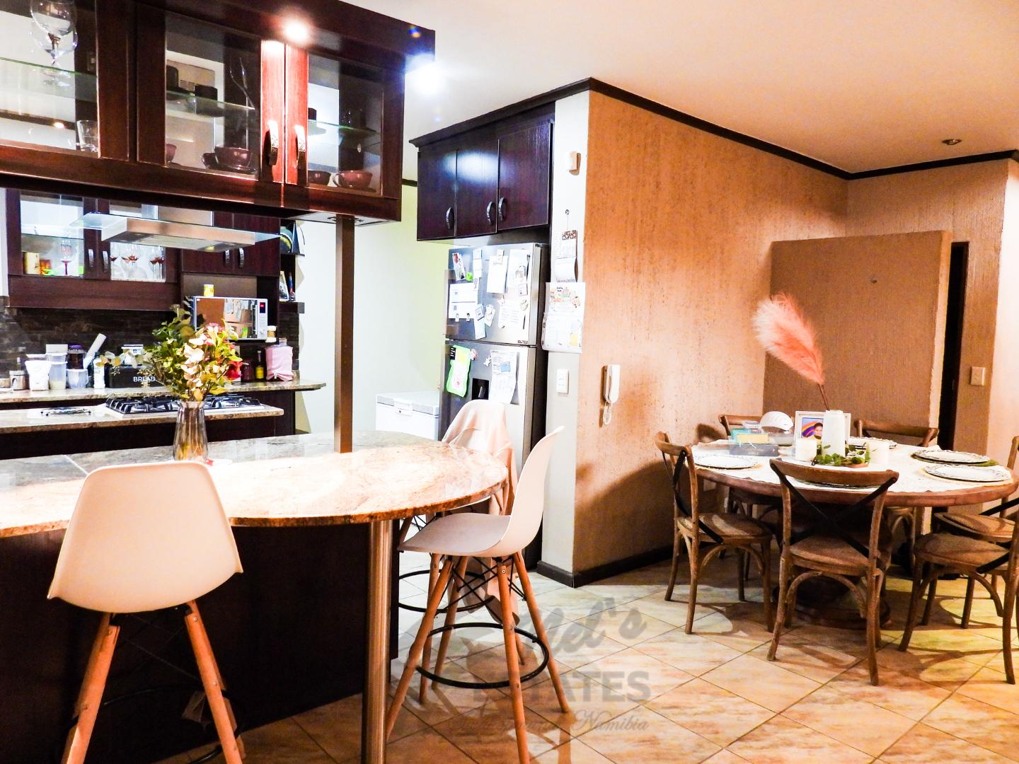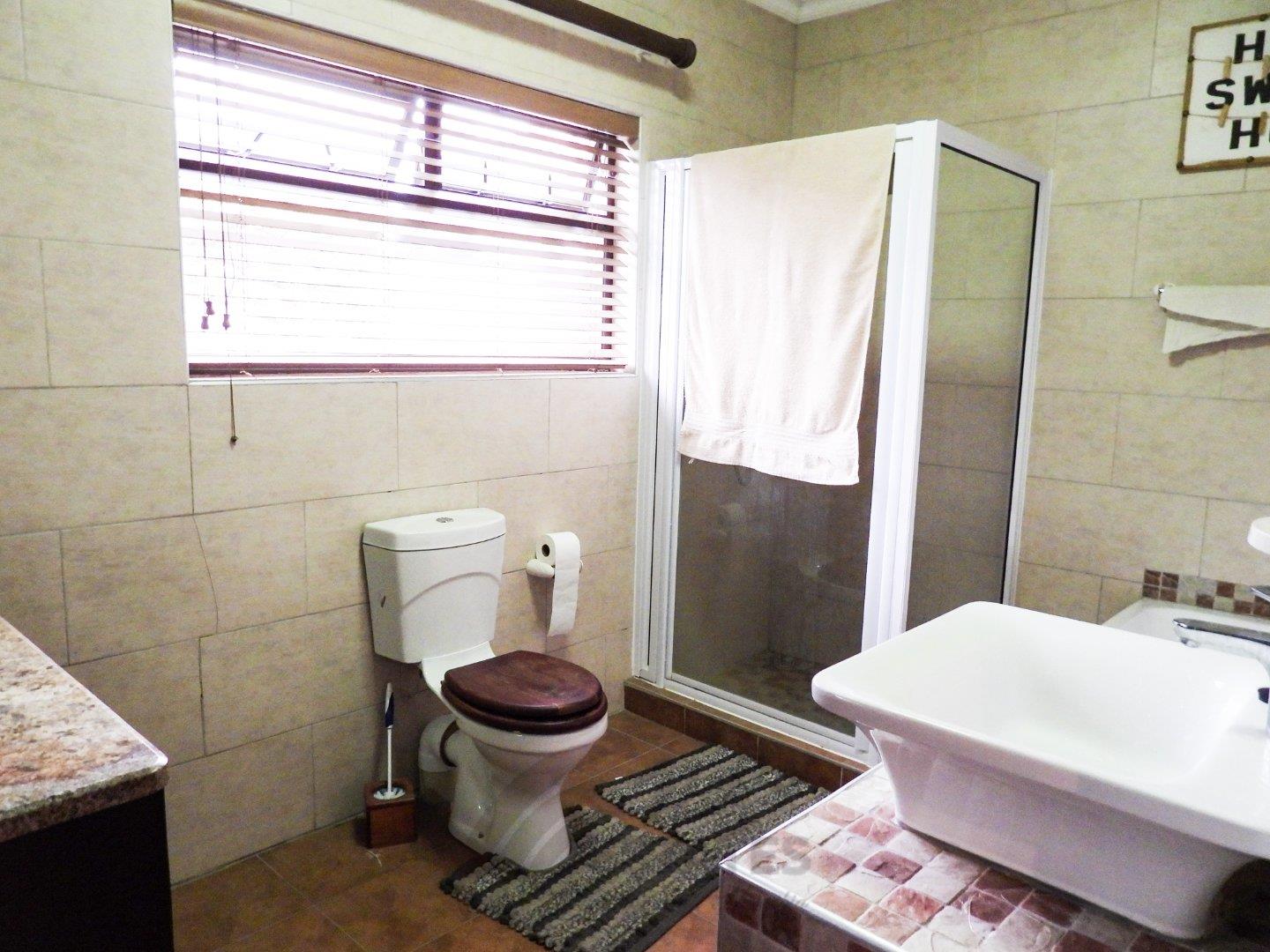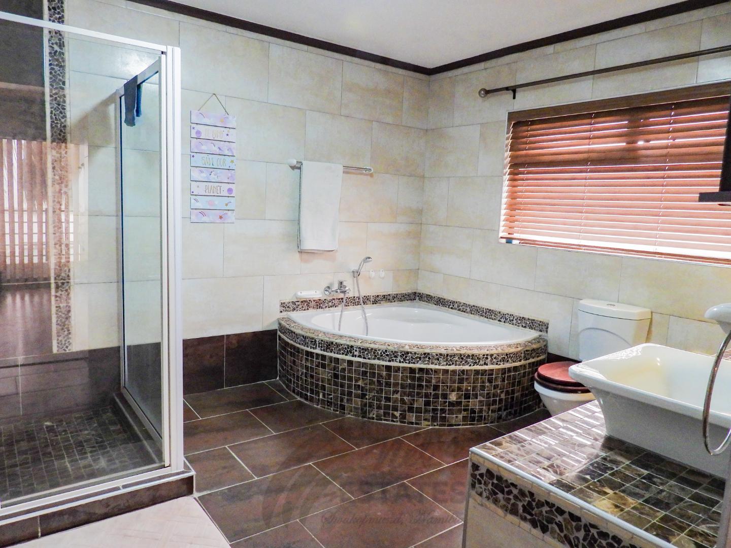 The property also includes a flat that features an open plan living/dining area, a kitchen with a breakfast counter, and a spacious scullery. With 2 bedrooms, a full bathroom, and a single automated garage, this flat provides a comfortable living space for guests or extended family members.