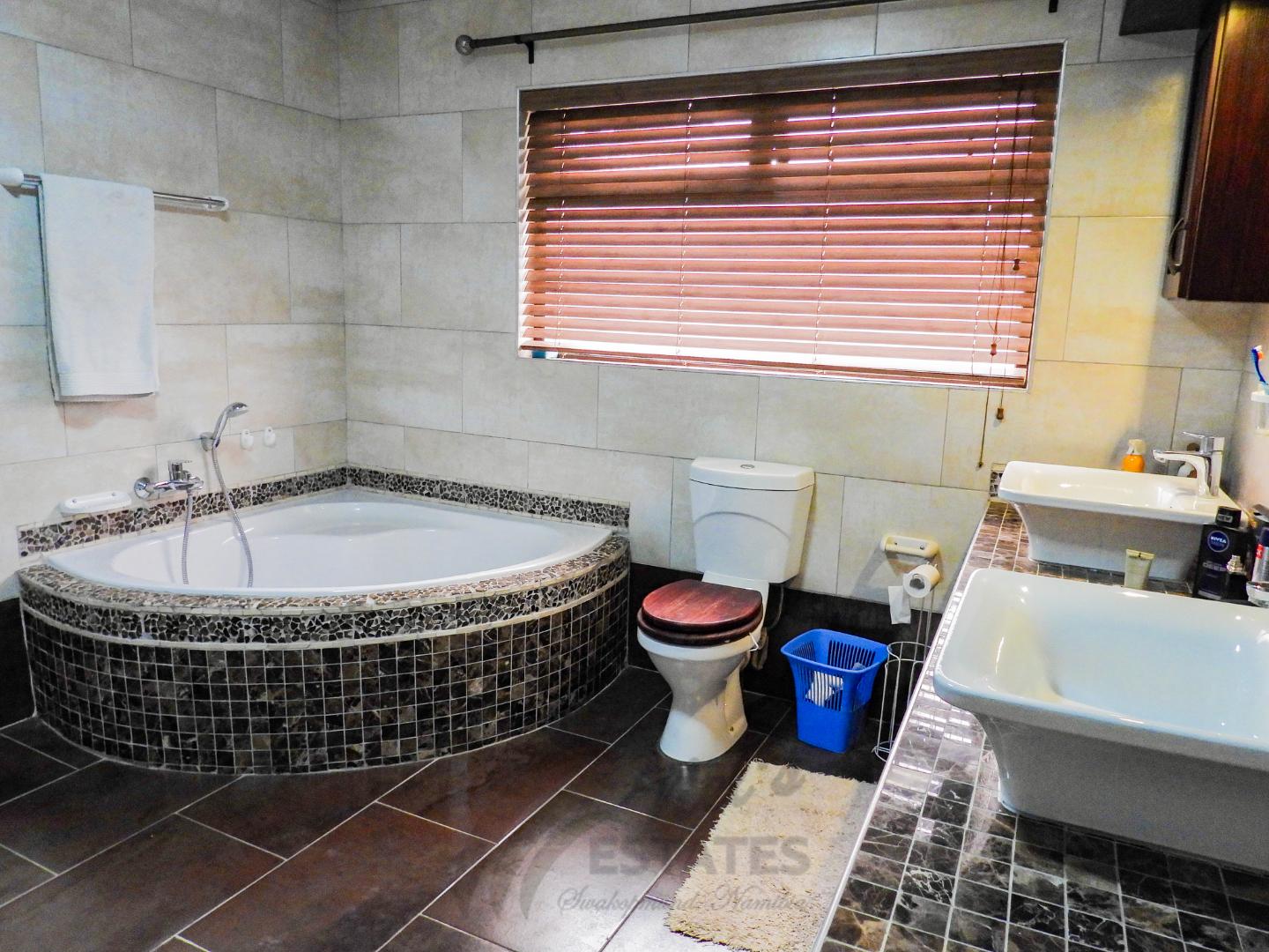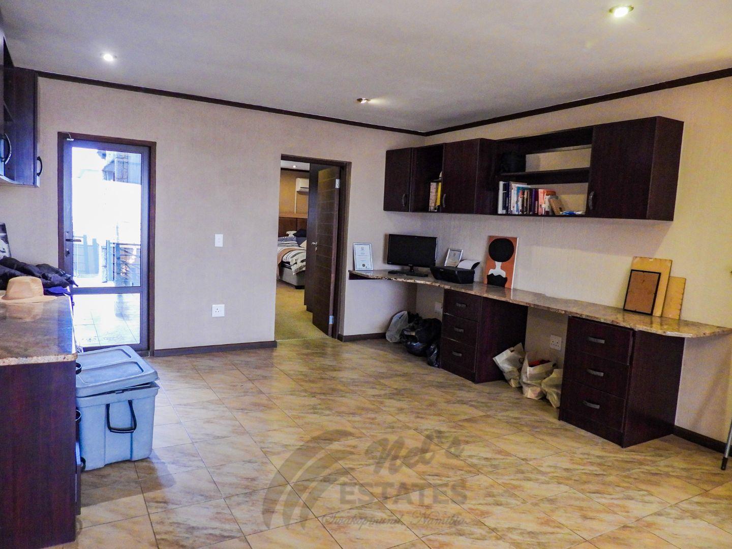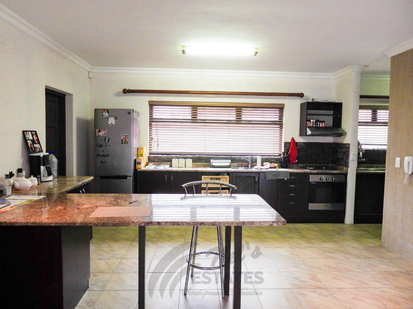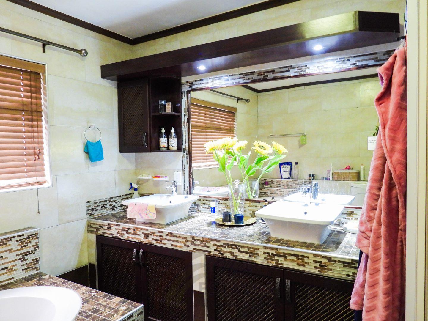 The property also includes a flat that features an open plan living/dining area, a kitchen with a breakfast counter, and a spacious scullery. With 2 bedrooms, a full bathroom, and a single automated garage, this flat provides a comfortable living space for guests or extended family members.