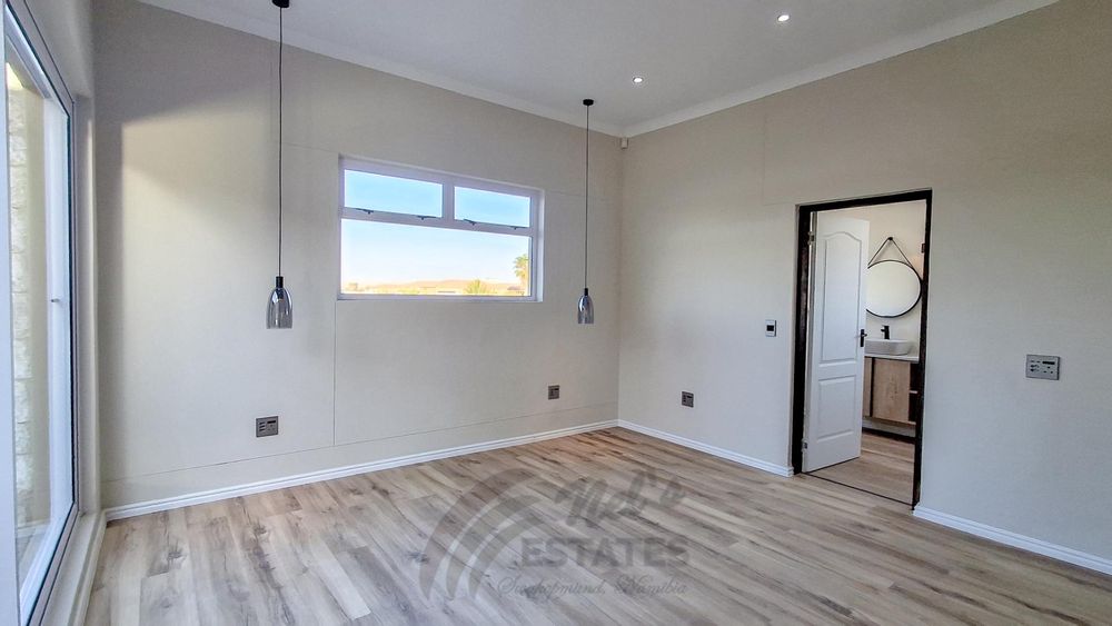 Step into luxury with this stunning, newly built home in the highly sought-after Rossmund Golf Estate – one of Swakopmund’s premier residential addresses. Currently nearing completion, this elegant residence offers the rare chance to be the very first owner of a home crafted for comfort, style, and modern living.