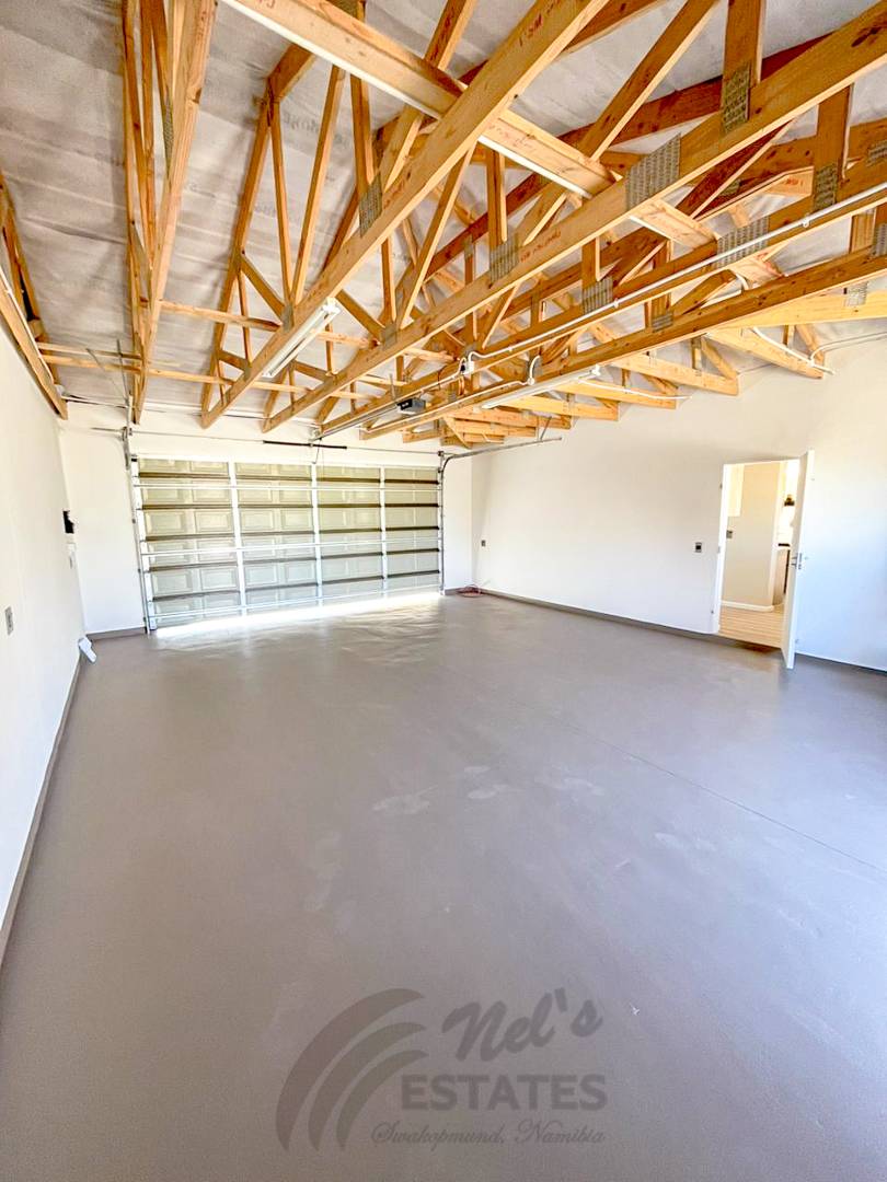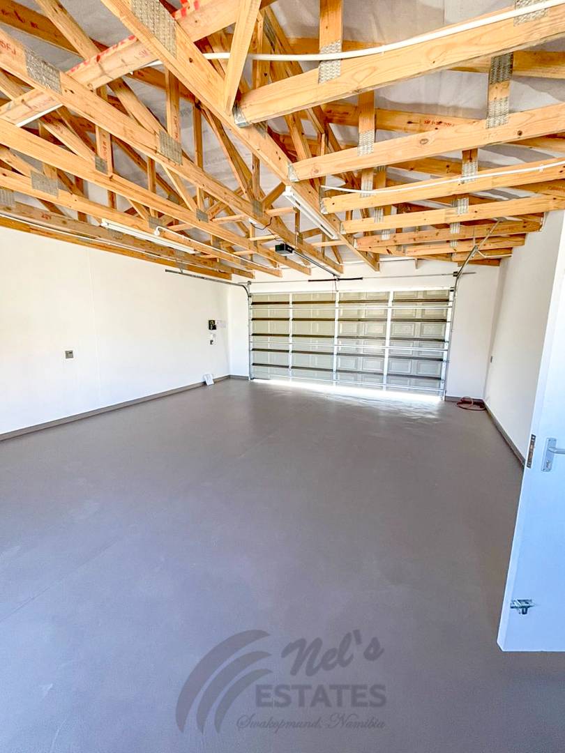 Extended double garage with extra storage space.