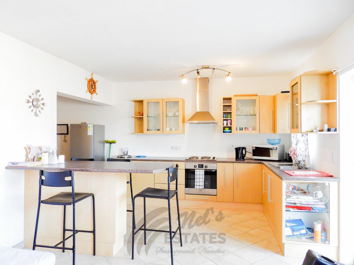 The fully fitted kitchen includes a breakfast counter, making meal preparation and casual dining a breeze. Step out onto the balcony to enjoy your morning coffee or evening refreshments while taking in the surrounding views.