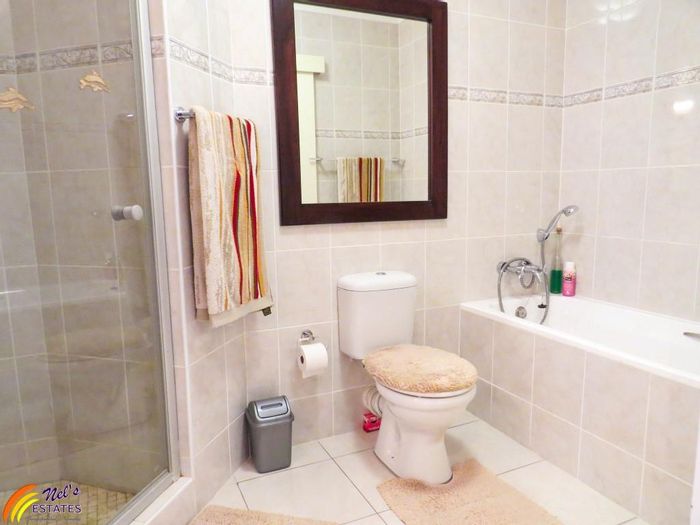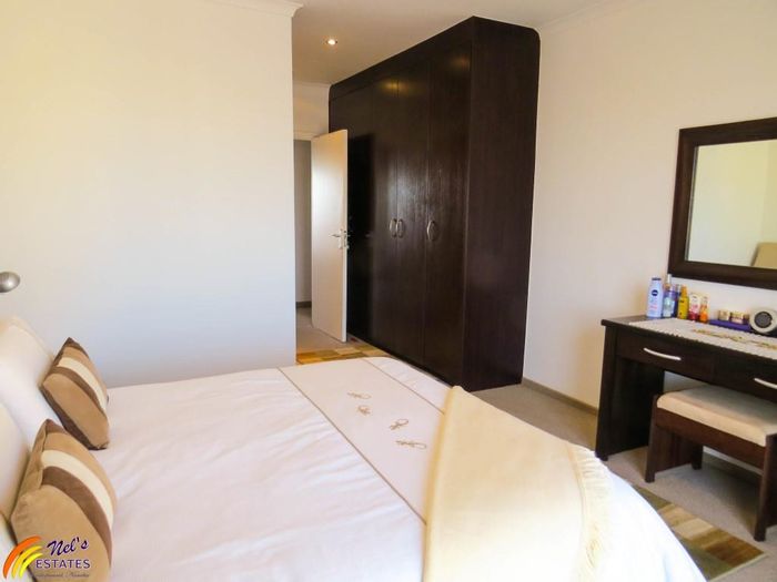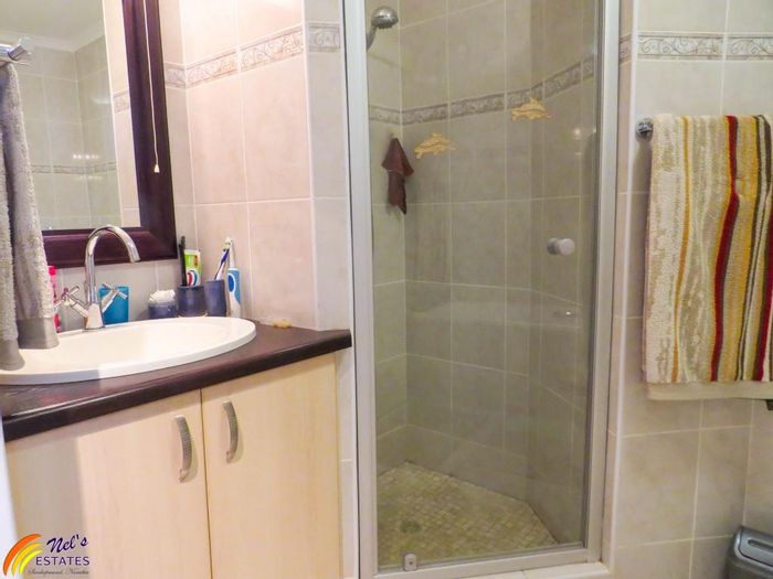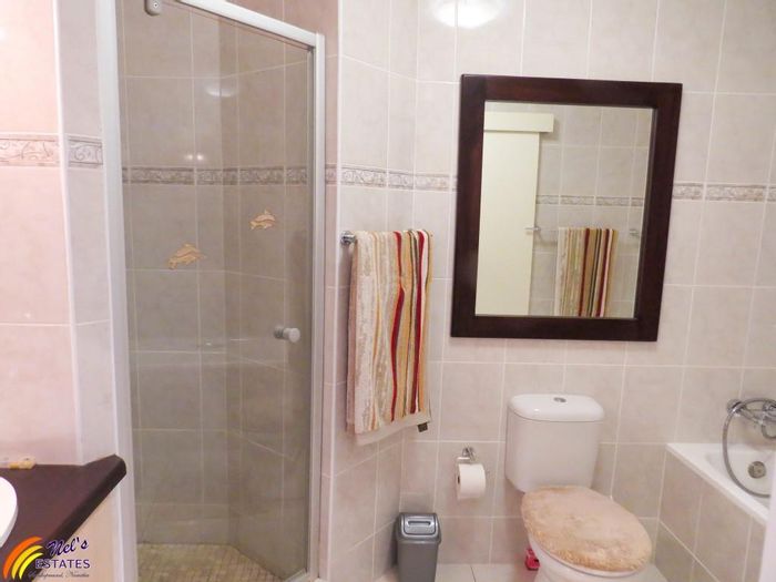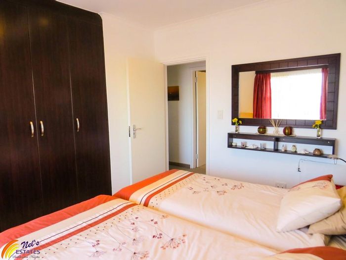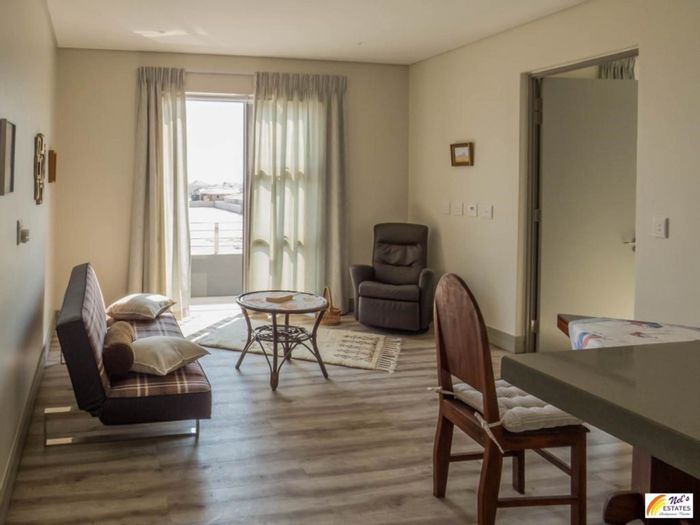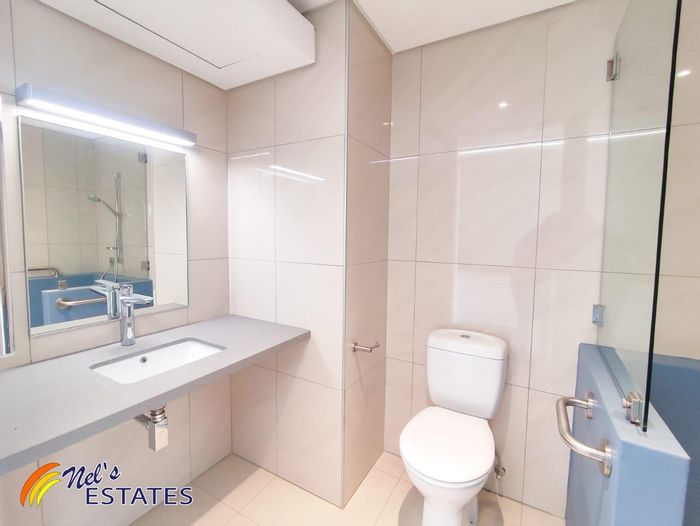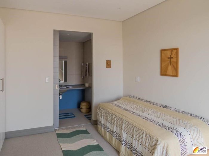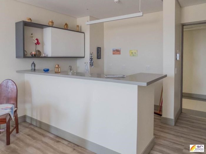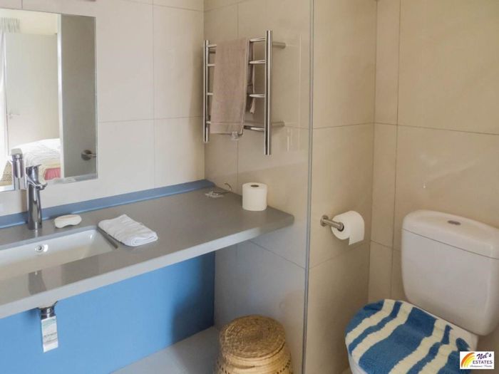The unit features two bedrooms, offering comfort and privacy. The bathroom includes a contemporary shower, complemented by a convenient guest w/c for visitors. One of the property's standout features is the big balcony, which is perfect for alfresco dining or enjoying sundowners while taking in the serene surroundings.