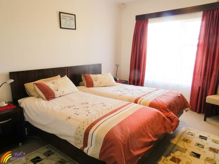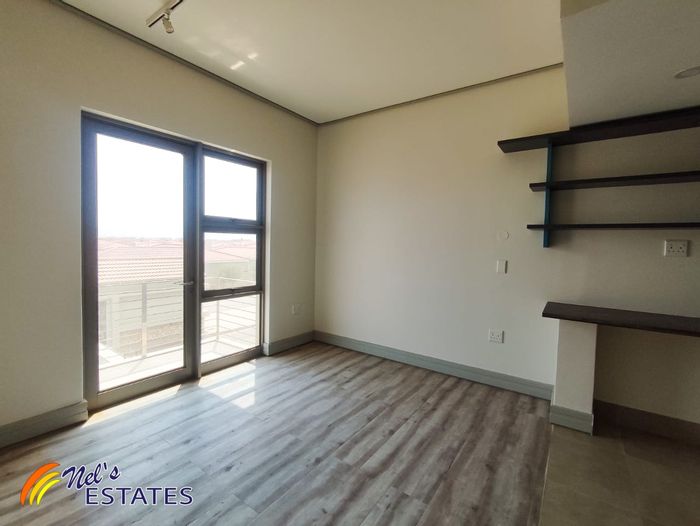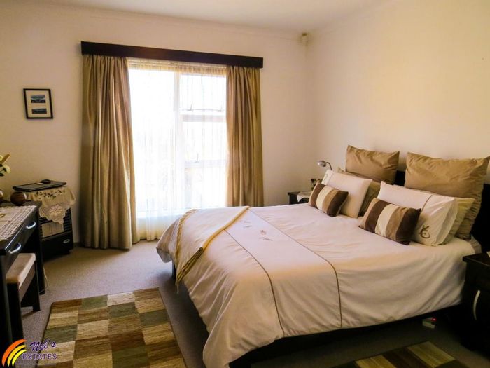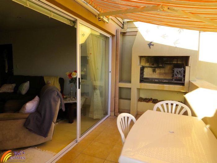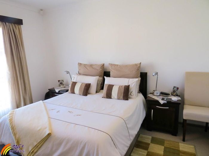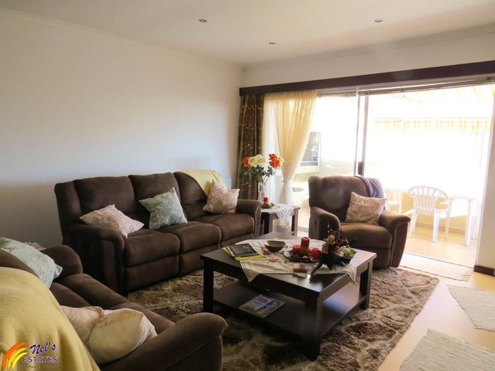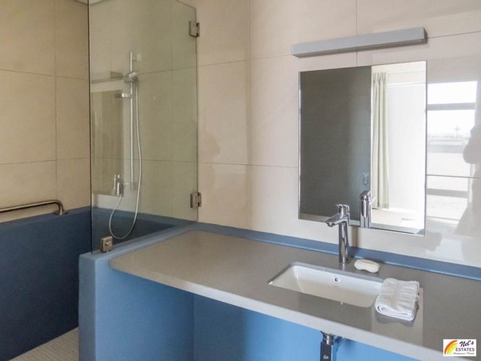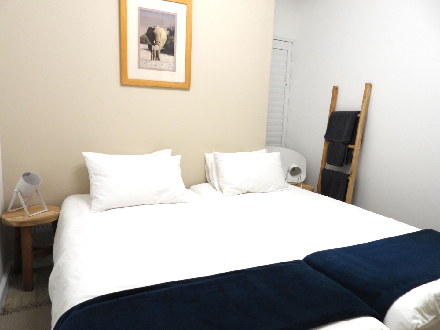 The unit features two bedrooms, offering comfort and privacy. The bathroom includes a contemporary shower, complemented by a convenient guest w/c for visitors. One of the property's standout features is the big balcony, which is perfect for alfresco dining or enjoying sundowners while taking in the serene surroundings.
