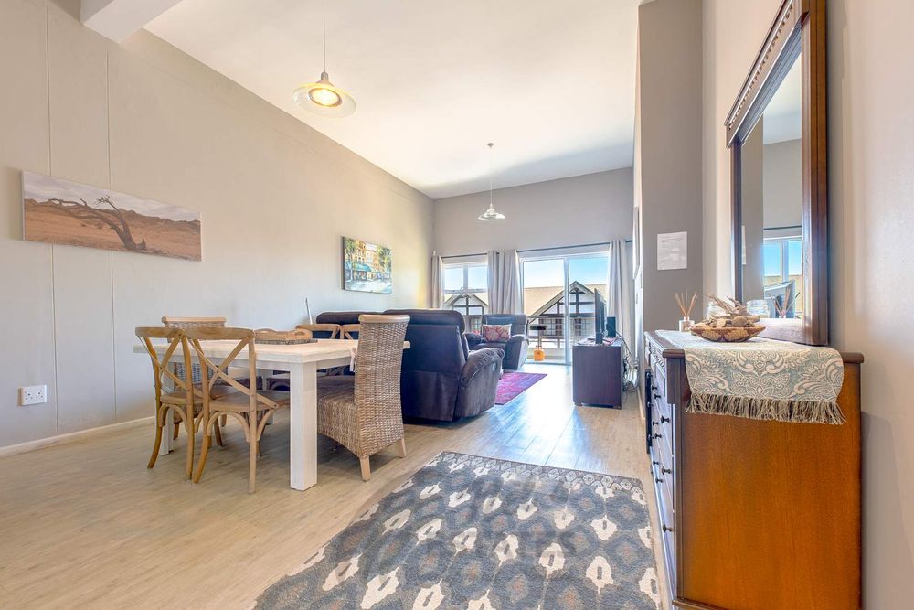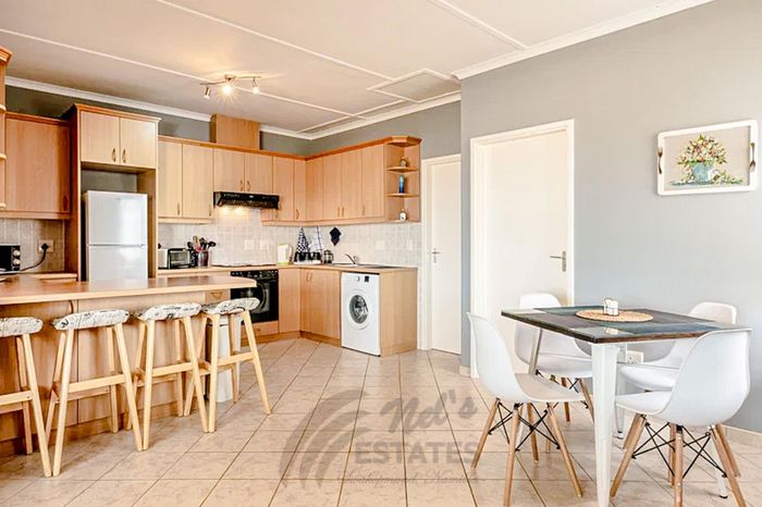 The apartment features a bright open-plan living and dining area that flows onto a private balcony, creating a welcoming space to relax or entertain. The fully fitted kitchen is complemented by a convenient breakfast counter.