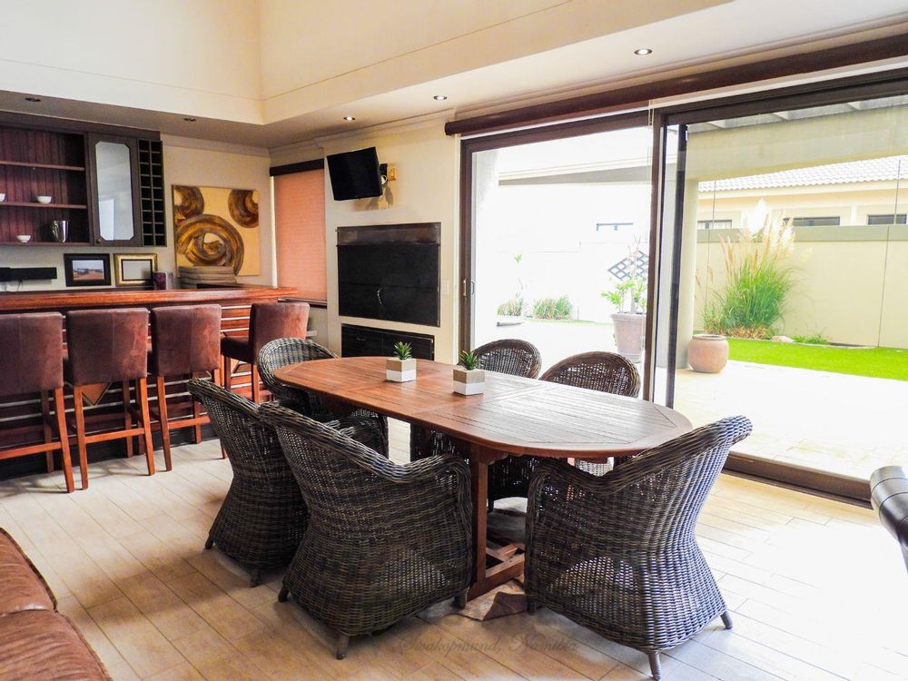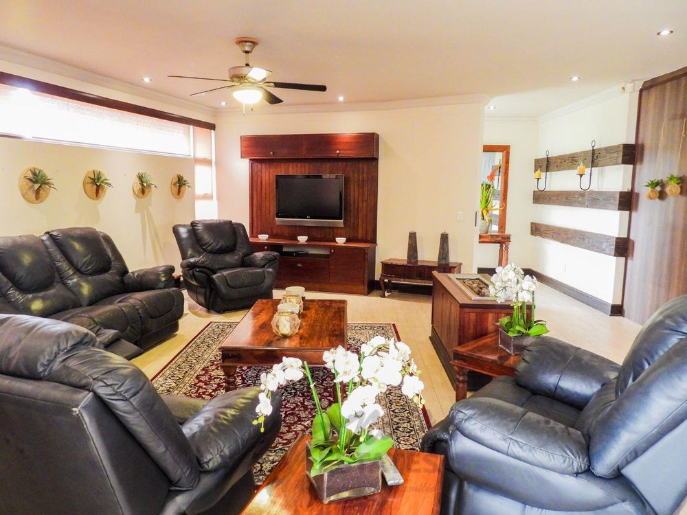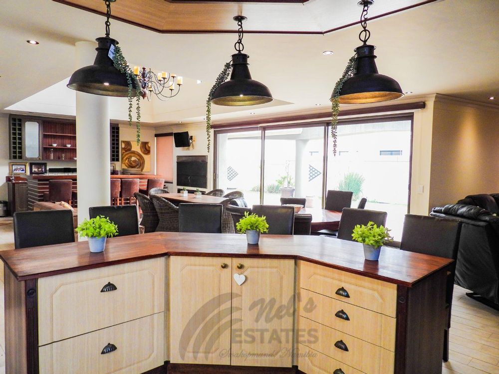 The heart of the home lies in the beautiful fitted kitchen, complete with a breakfast counter, gas hob, pantry, and separate scullery. Adjacent to the kitchen is the dining area, perfect for family meals and gatherings.