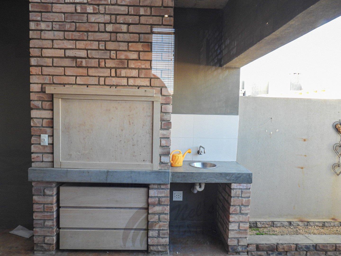 Introducing a contemporary and spacious property that offers the best of both worlds. This modern style house features 3 bedrooms, 2 bathrooms, a study that can double as an extra bedroom, and a convenient guest toilet. The open plan living and kitchen area is perfect for entertaining, with a scullery for added convenience. Enjoy gatherings in the dining area with an indoor BBQ, or step outside to the outdoor BBQ area and garden. Parking is a breeze with a tandem garage.