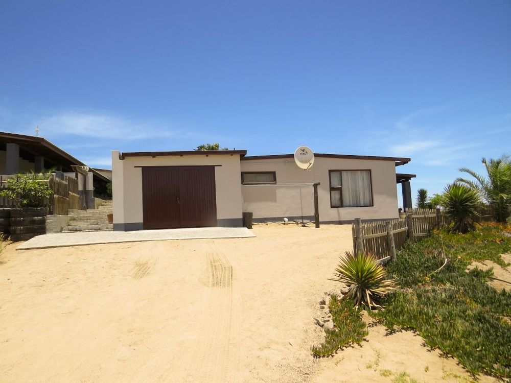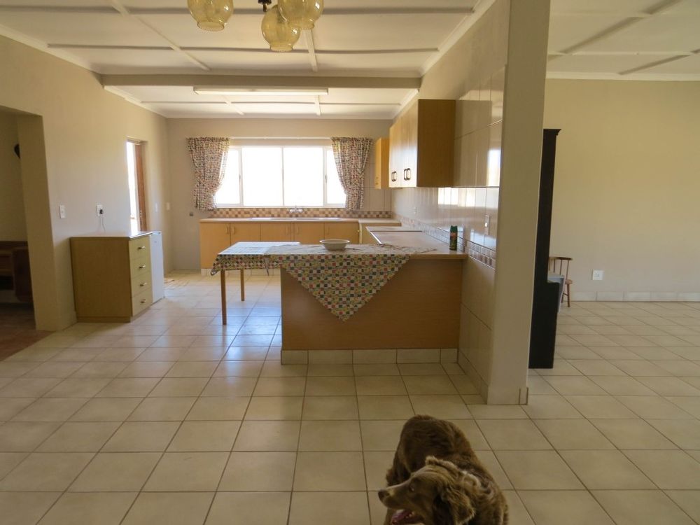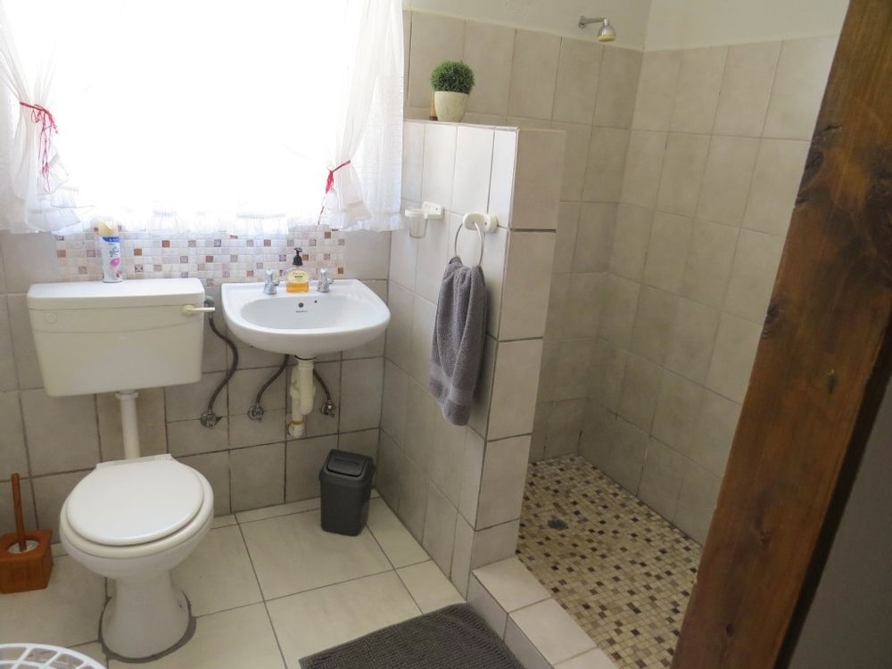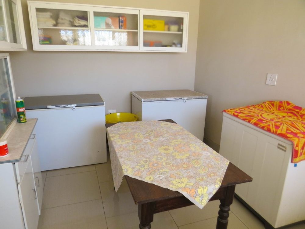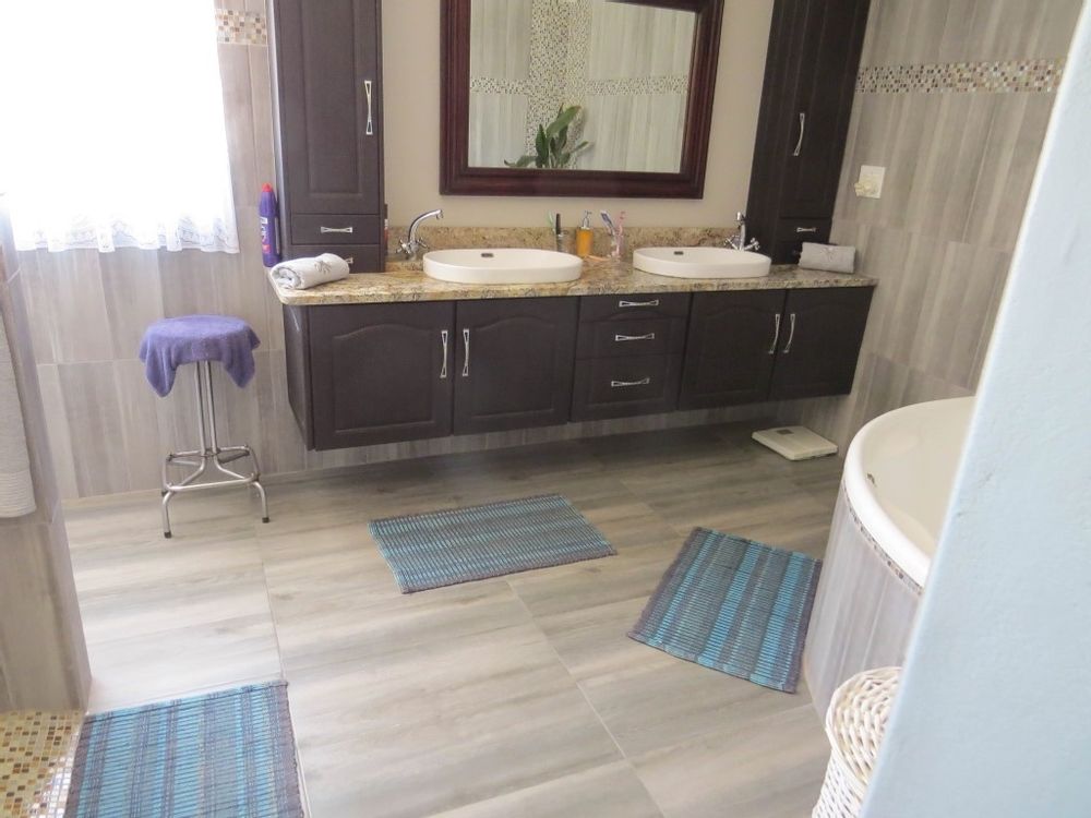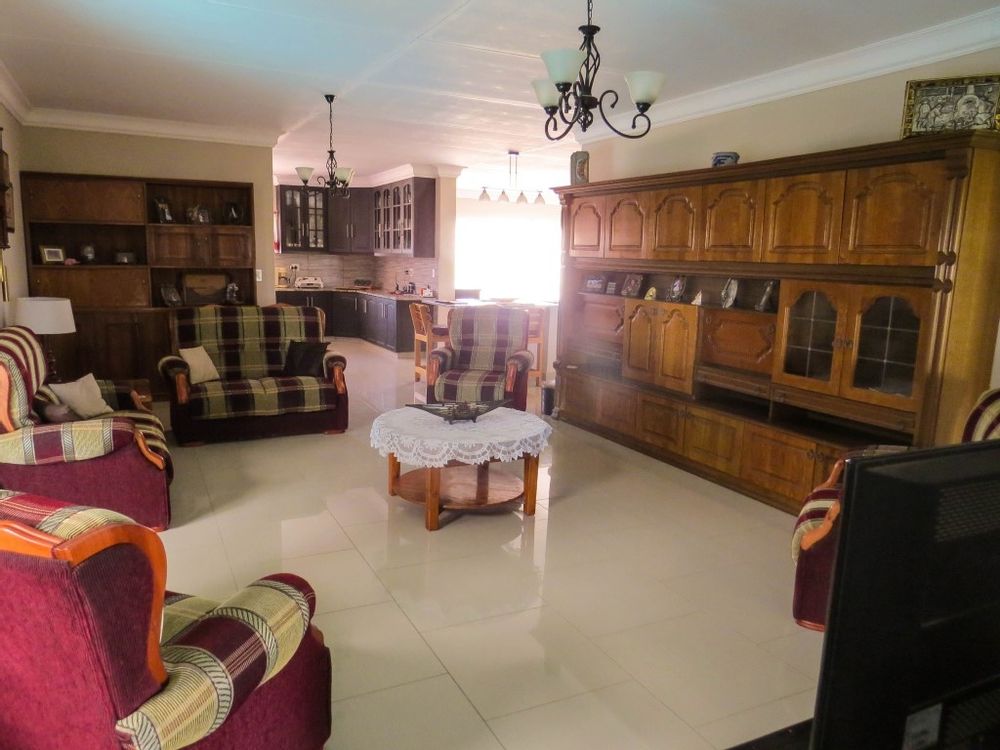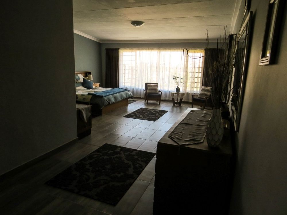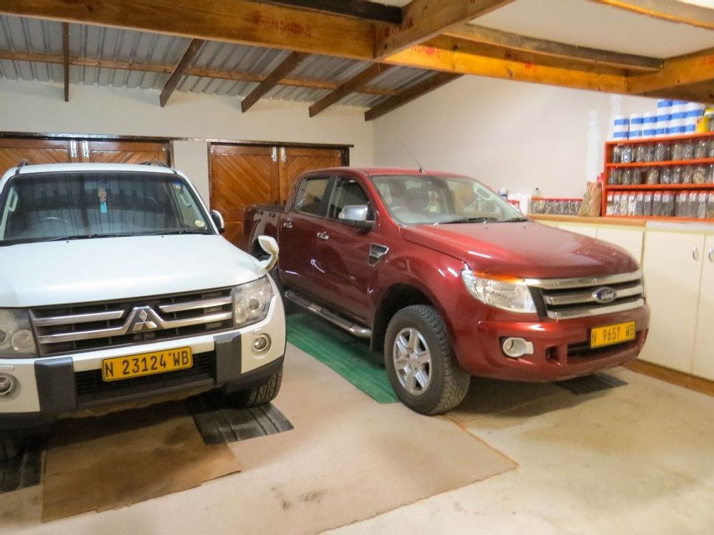 The main house is a five bedroom house with 4 bathrooms, beautiful kitchen, with scullery, pantry / washing area , dining area and living area ,TV room, lovely enclosed entertainment area with a swimmping pool, indoor BBQ, enough space for extra table and chairs to serve meal to guests ,4 garages, swimming pool , study and a very big lovely outside veranda , with a great view over the Swakop River. The house size is 1 225 m2.