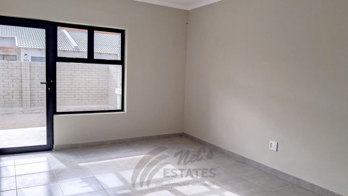 Relaxed, secure living in Mondesa Palms, nestled in a calm neighbourhood; modern single-storey townhouses with open-plan layouts, covered carports, and 2- or 3-bedroom options.