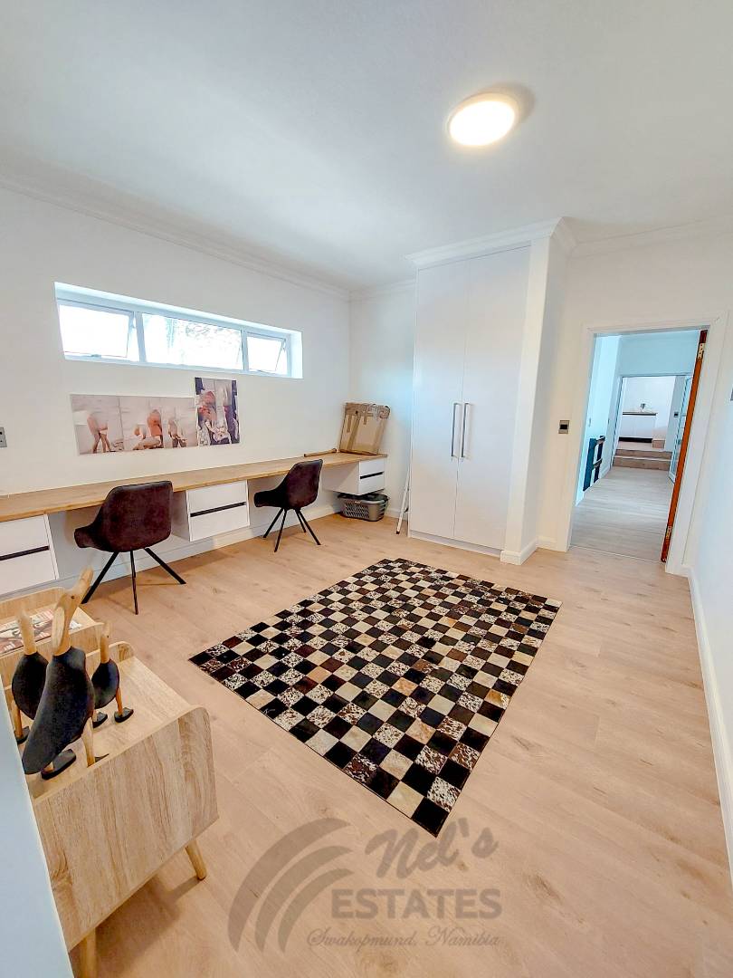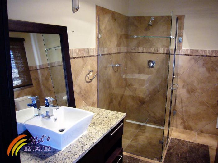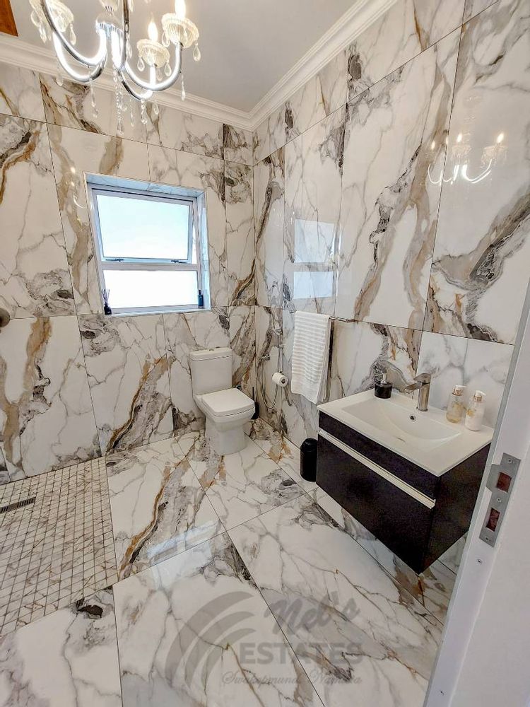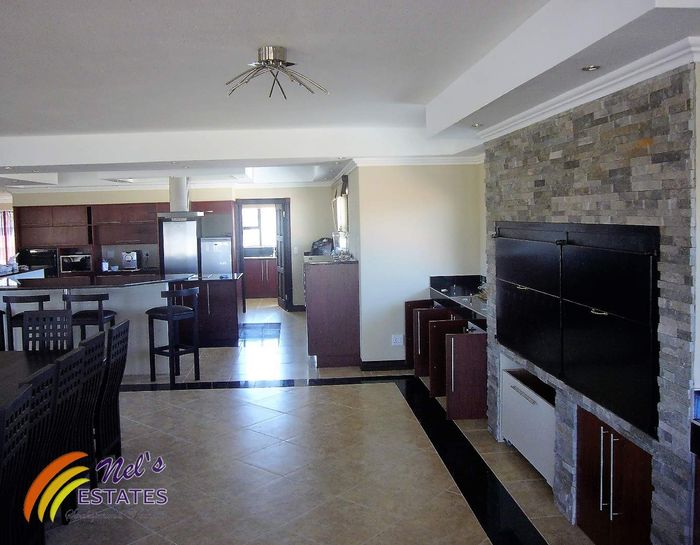 Upon entering, you'll be captivated by the expansive open-plan living and dining area, designed for both relaxation and entertaining. The space seamlessly flows into a fully fitted kitchen, complete with a stylish breakfast counter and a generous pantry. For added convenience, a separate scullery ensures that your culinary space remains immaculate.