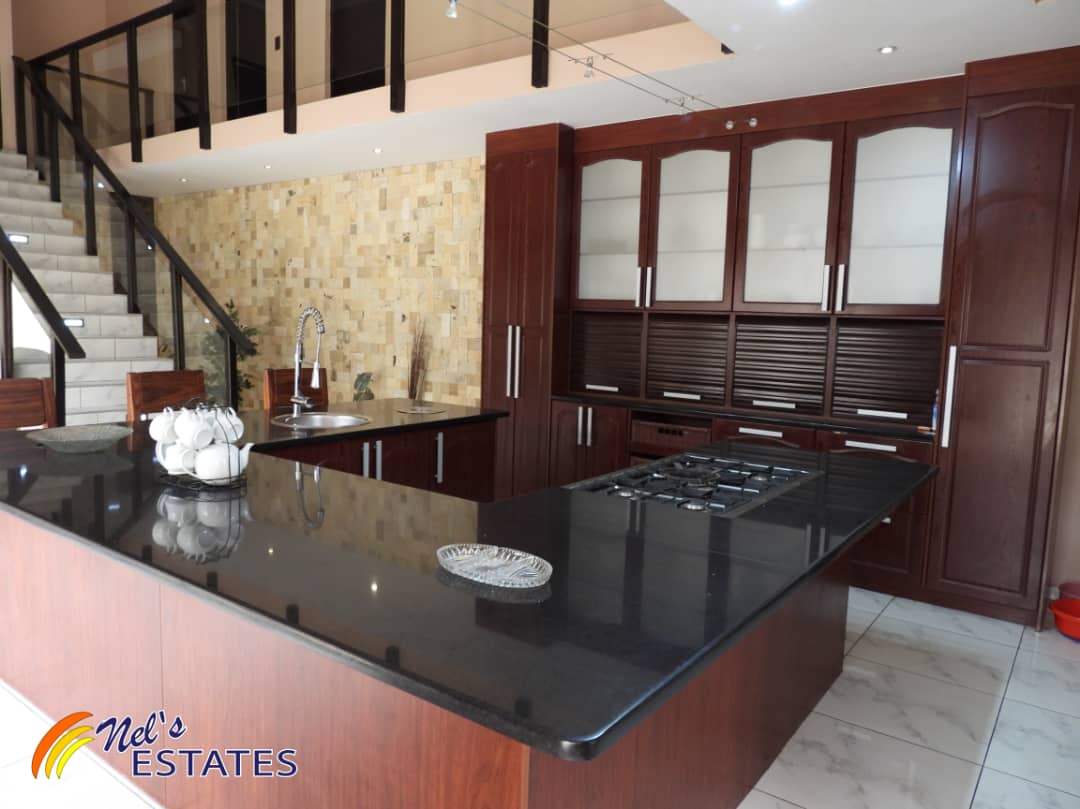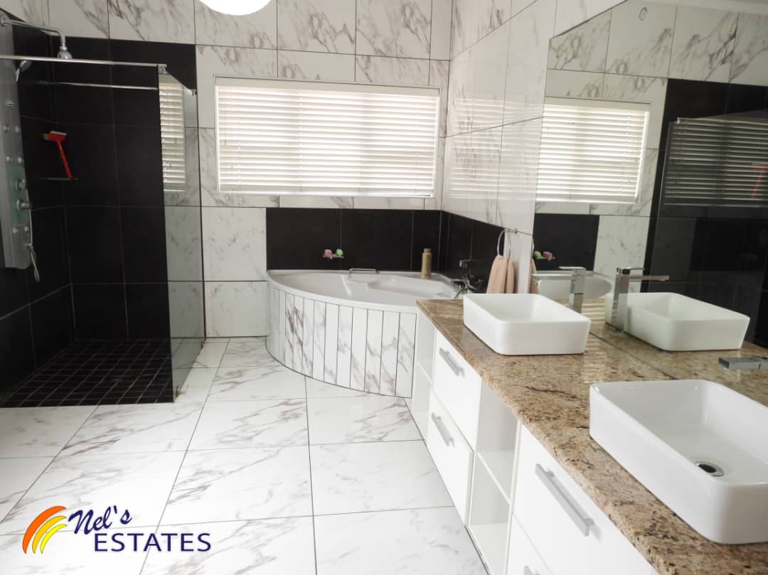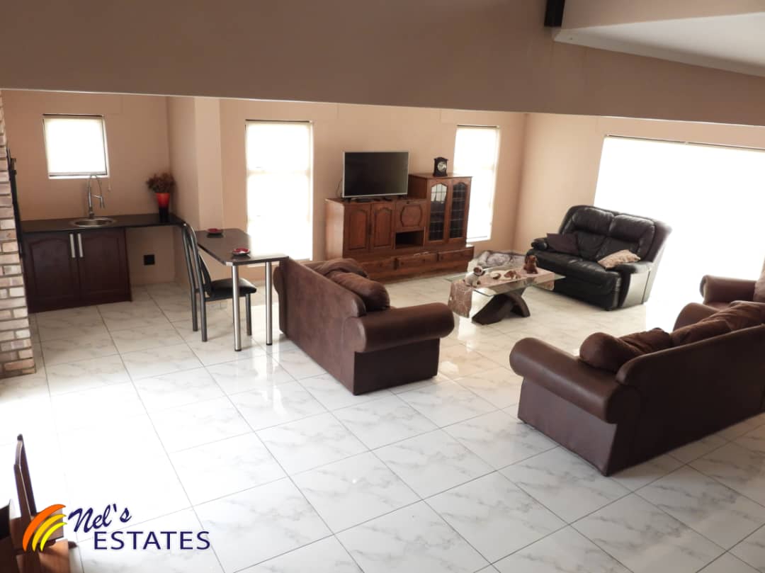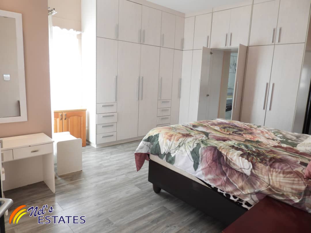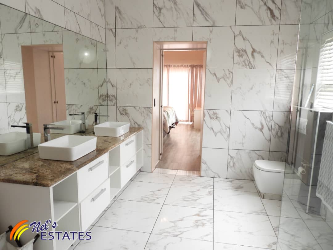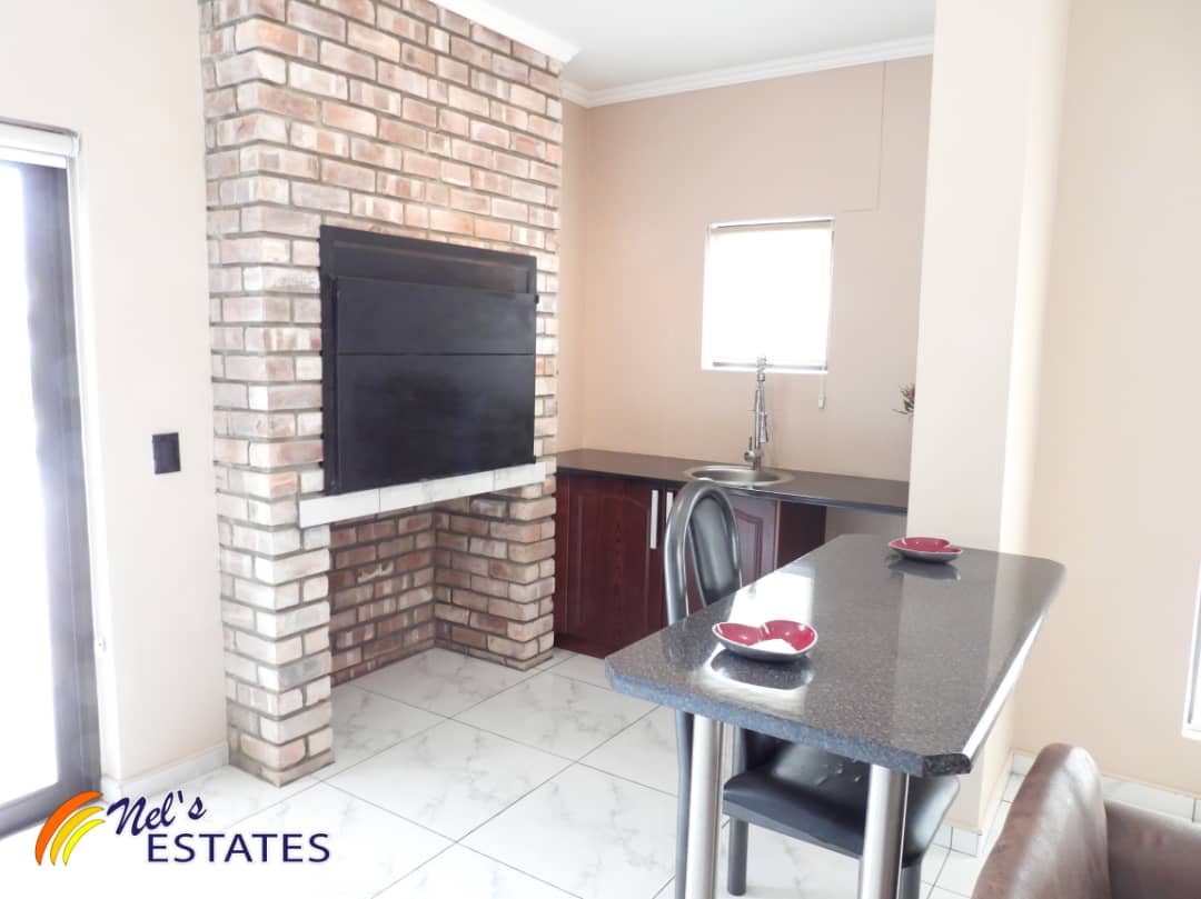The main house boasts an array of desirable features. As you step inside, you'll find a study with built-in cupboards, perfect for those who work from home. The open plan kitchen is a chef's dream, complete with an island and plenty of built-in cupboards with elegant granite tops. Additionally, there is a separate scullery for added convenience.