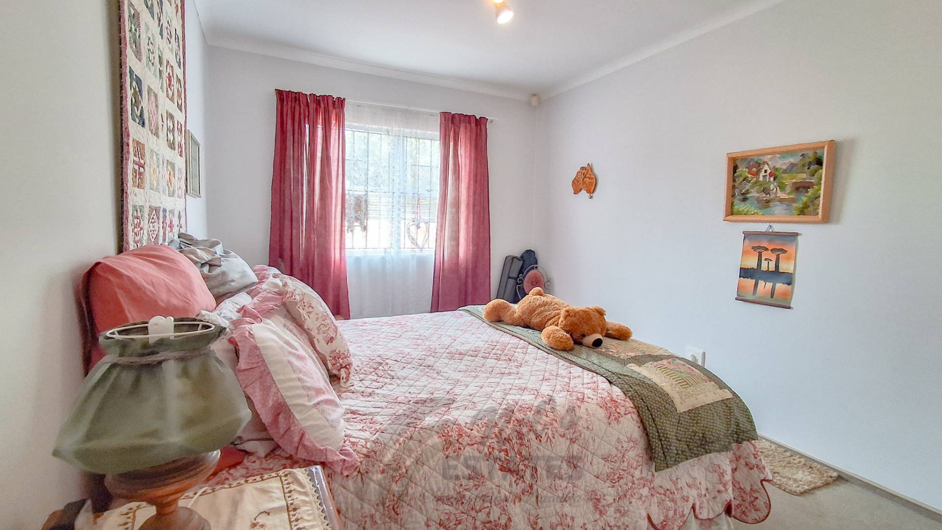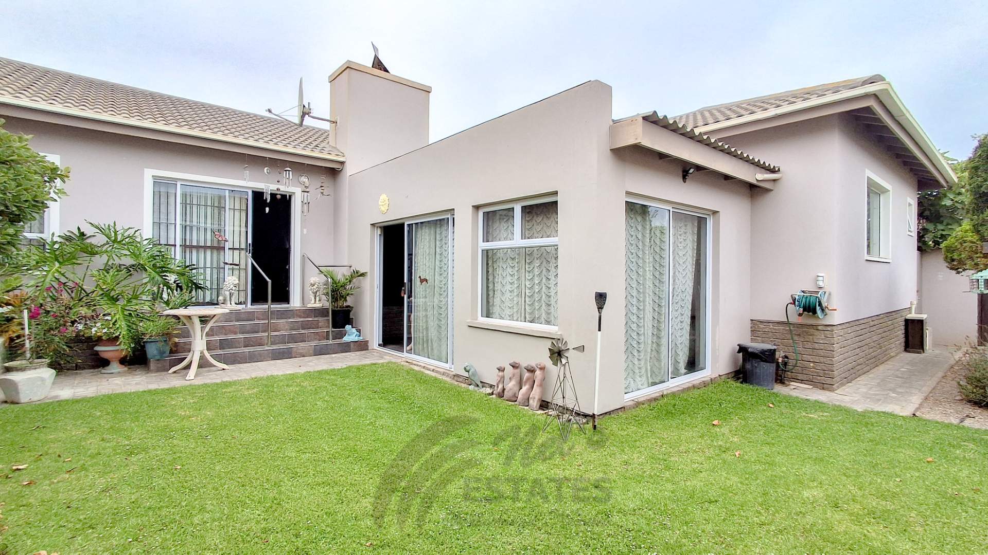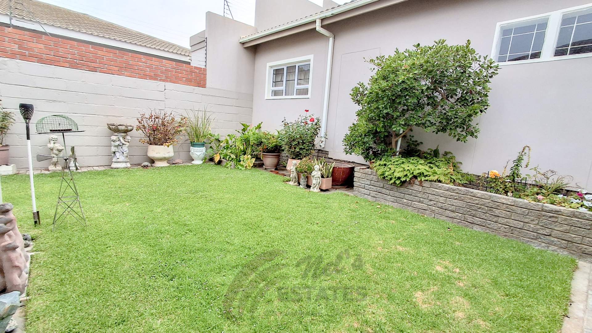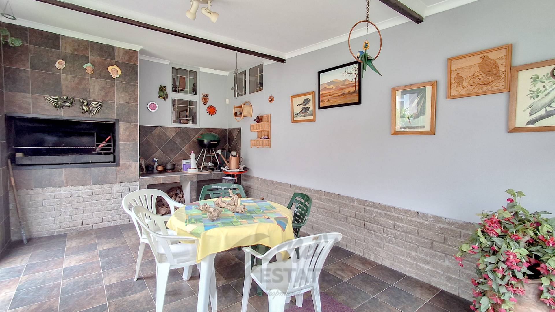 Additional highlights include a double garage with an extra versatile room suitable for a home office, gym, or hobby space. Outdoor living is enhanced by a spacious braai room opening onto a well-kept garden with lawns, fruit trees, and flowering plants.