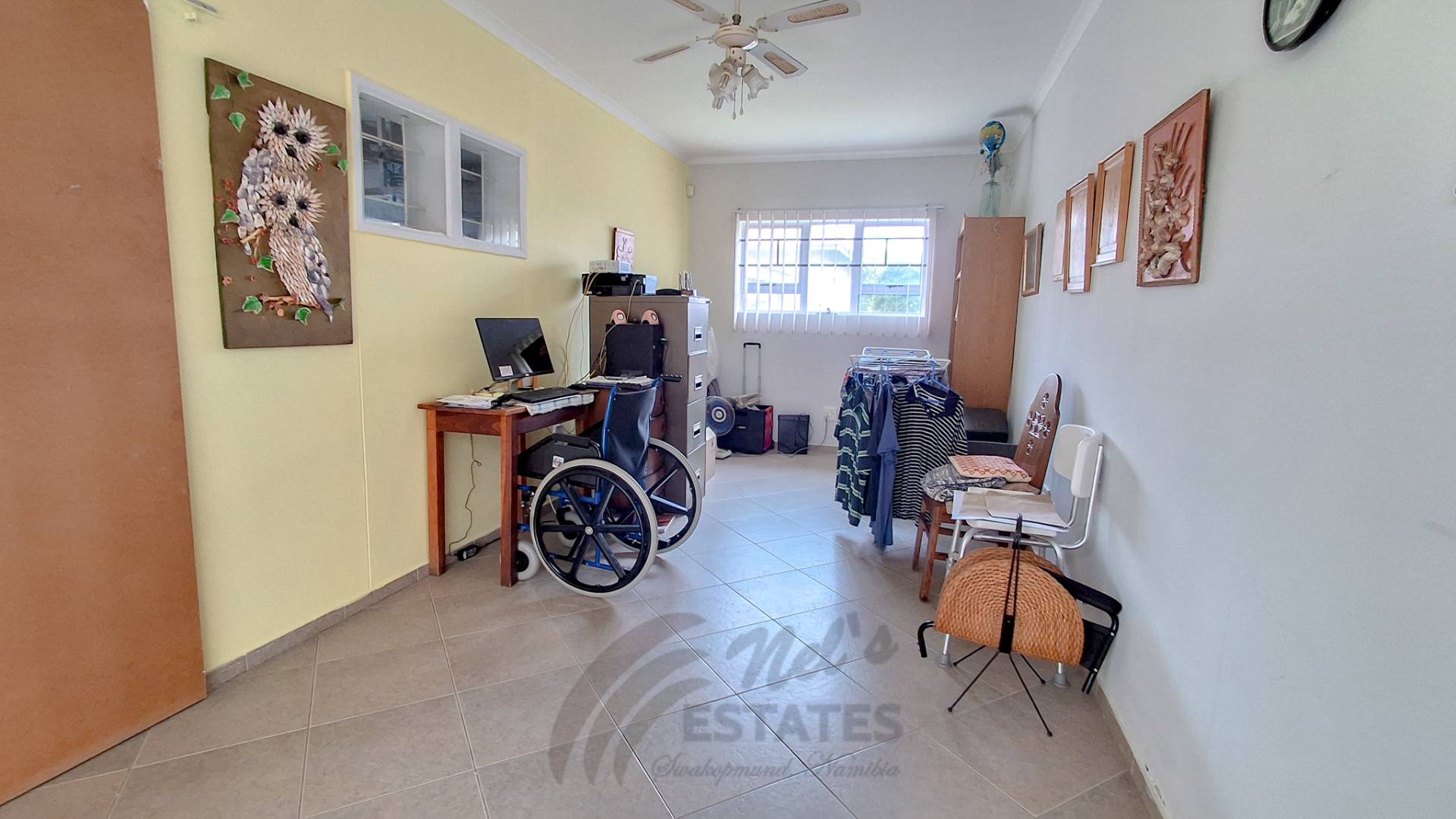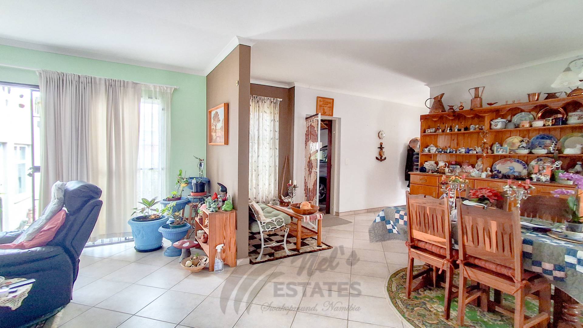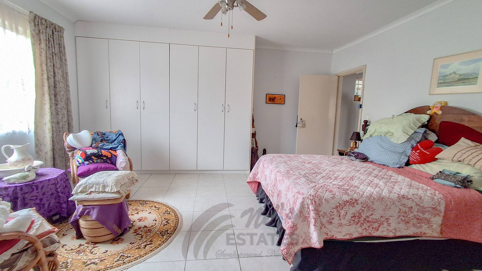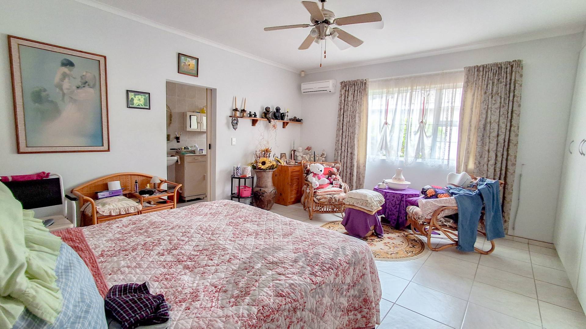 Additional highlights include a double garage with an extra versatile room suitable for a home office, gym, or hobby space. Outdoor living is enhanced by a spacious braai room opening onto a well-kept garden with lawns, fruit trees, and flowering plants.