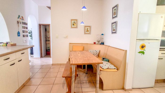 Well-equipped kitchen with breakfast nook and gas stove.