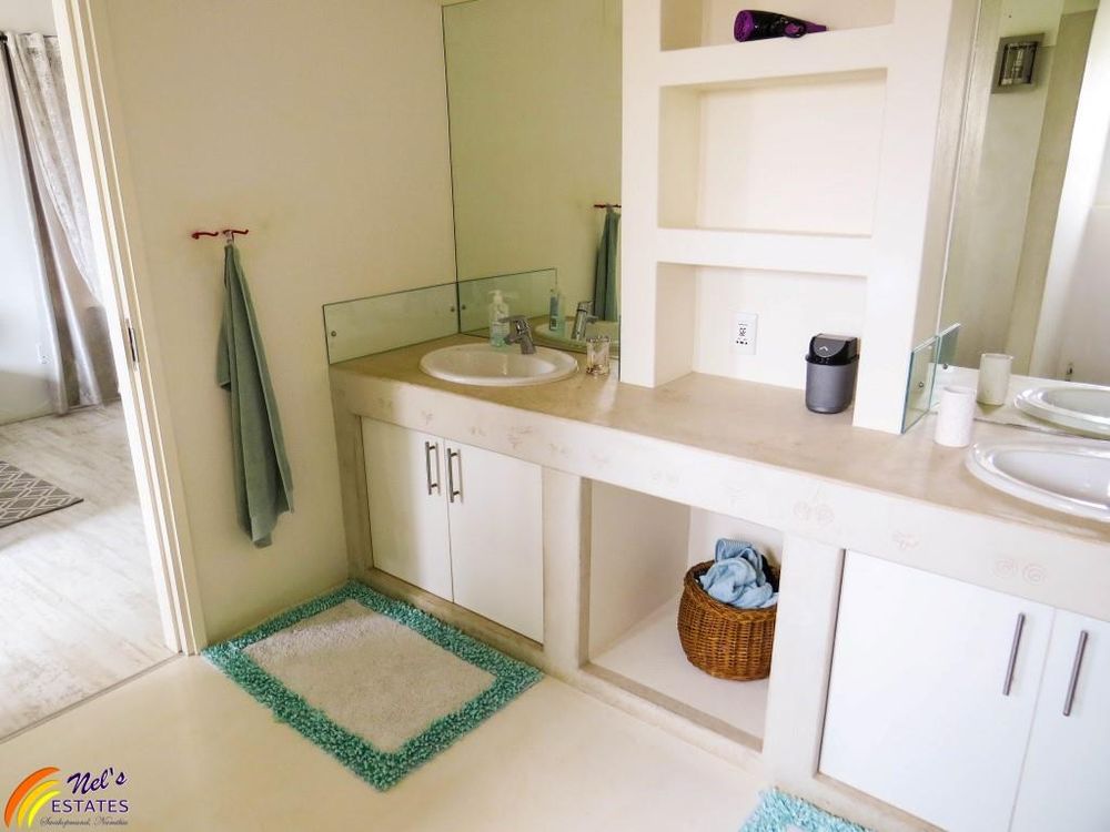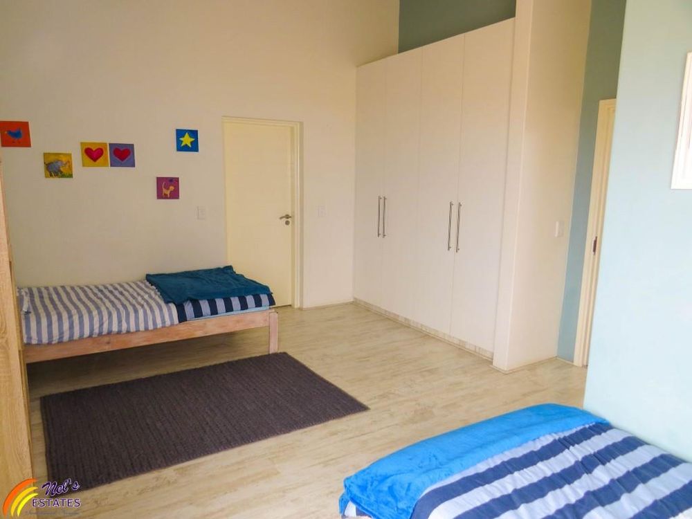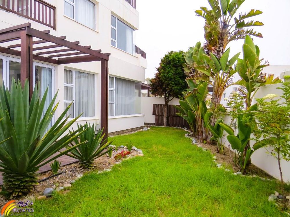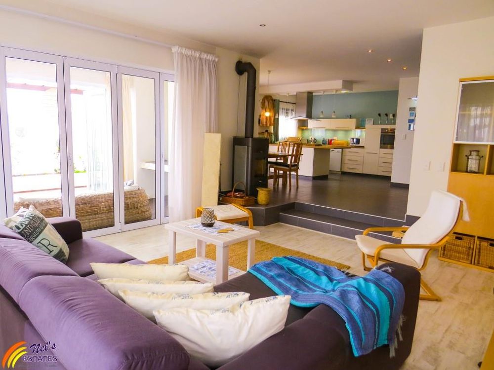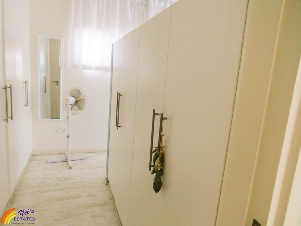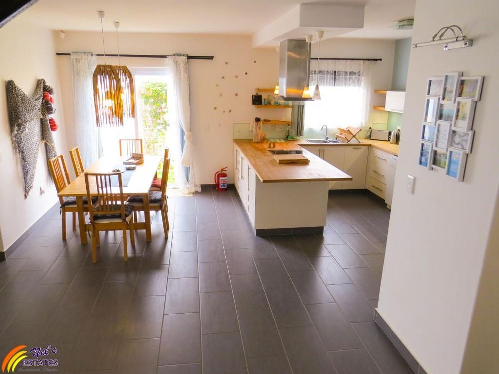 This townhouse has 3 bedrooms with 2 bathrooms. It has a guest toilet, an open-plan kitchen and living room with a sun room to the side and an indoor BBQ. There is a sauna room, outside deck, and a double garage. The unit also has a neat garden and an outside deck. There is a door on the second floor that leads to the flat roof that has amazing sea views. The main bedroom also has its own balcony with sea view.