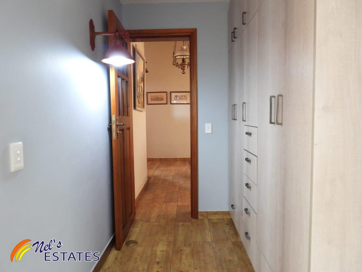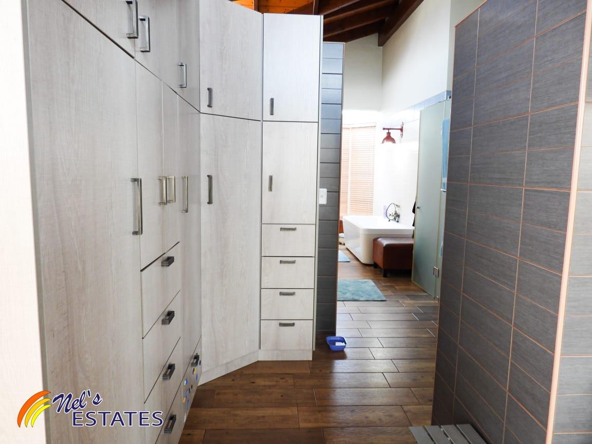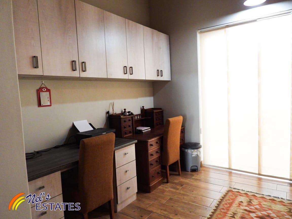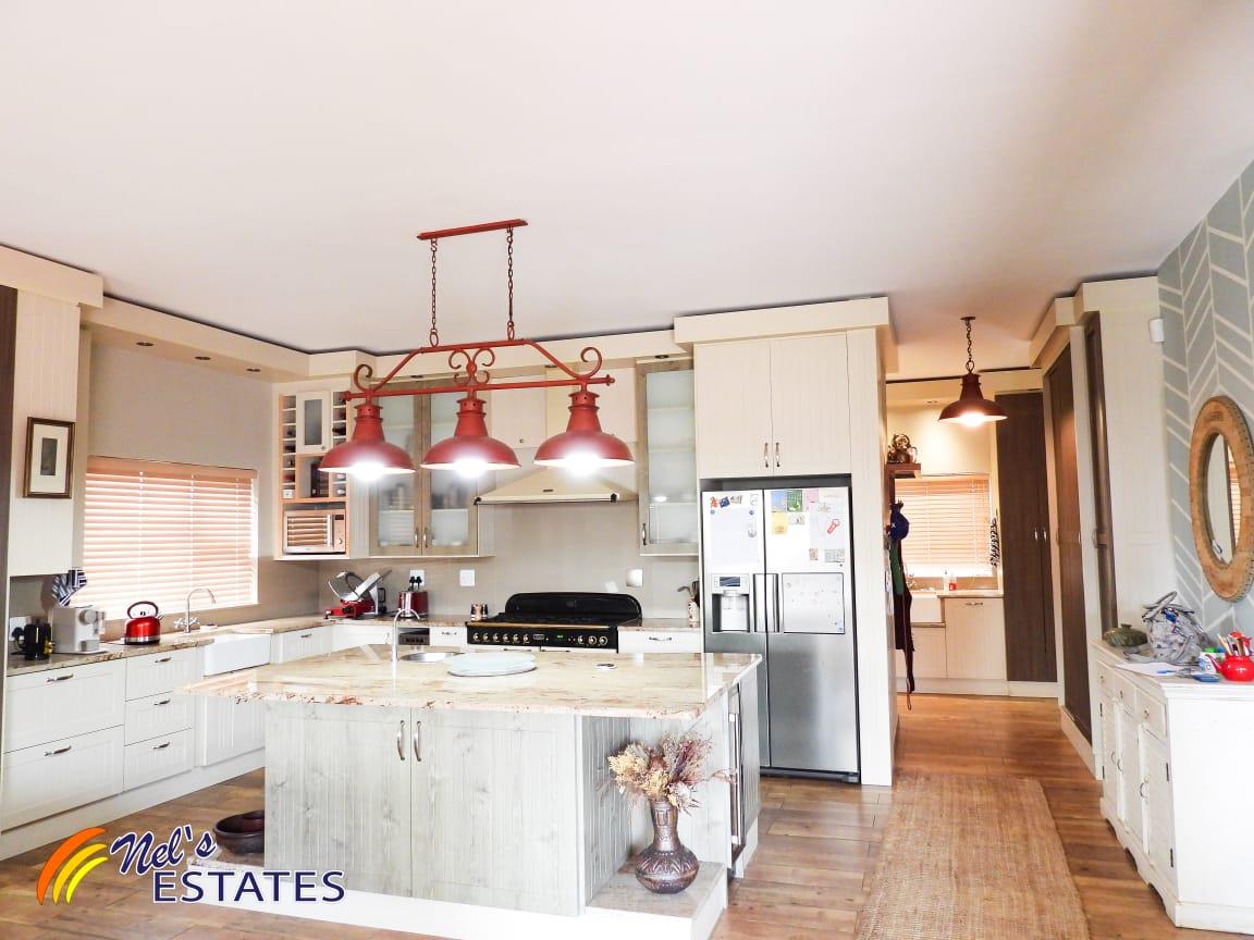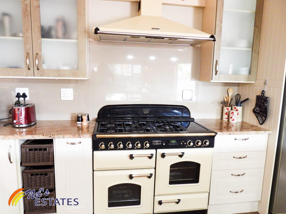 Spread across three levels, this home offers a well-designed layout. The ground floor features a reception patio deck, a spacious living area divided by a Camino, creating separate dining and lounge areas. The kitchen is beautifully appointed with granite tops, soft close cupboards, and a breakfast nook. A large scullery/laundry room and under stair storage provide additional convenience. There is also a guest loo and three garages outside, along with a storage room.